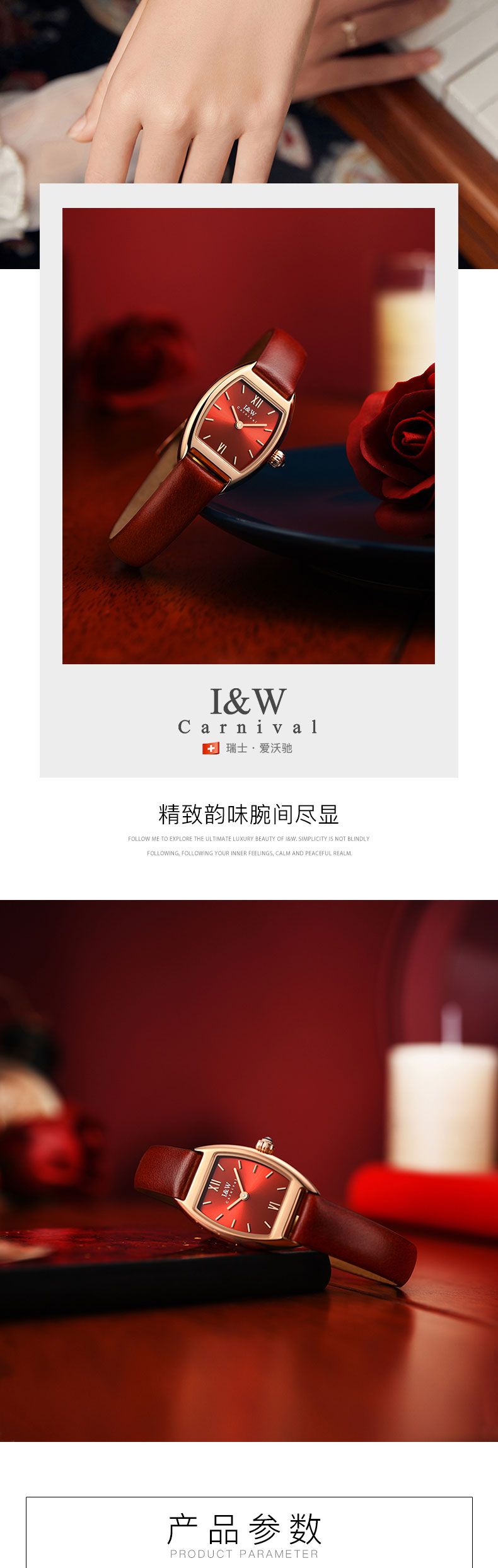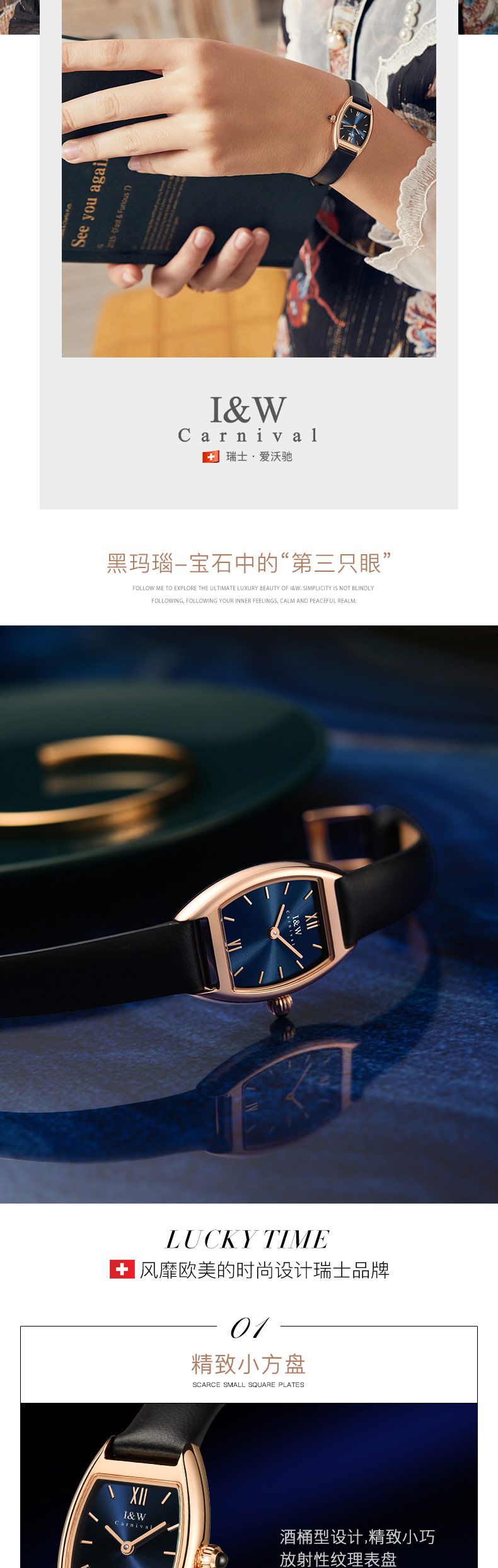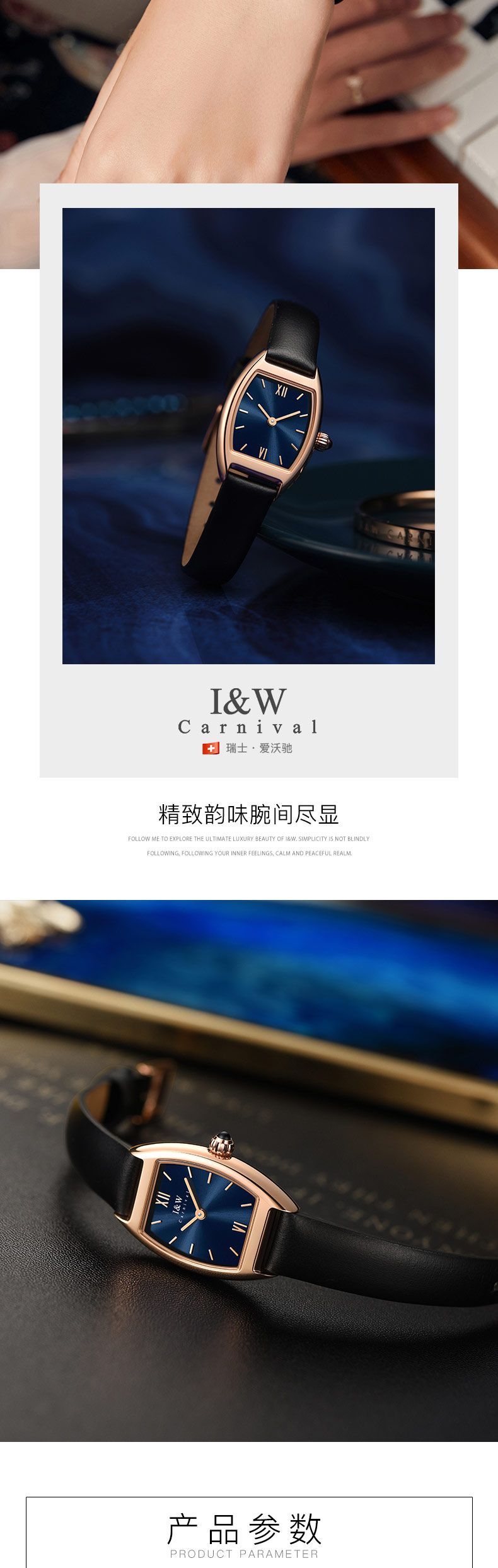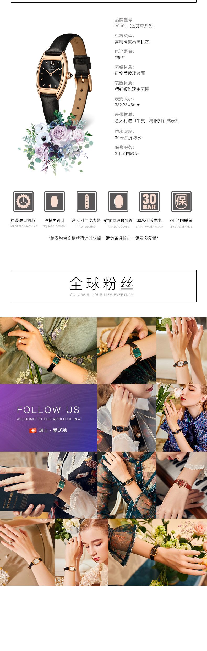 IW手表女简约复古文艺石英表小绿表女表品牌正品防水3006L