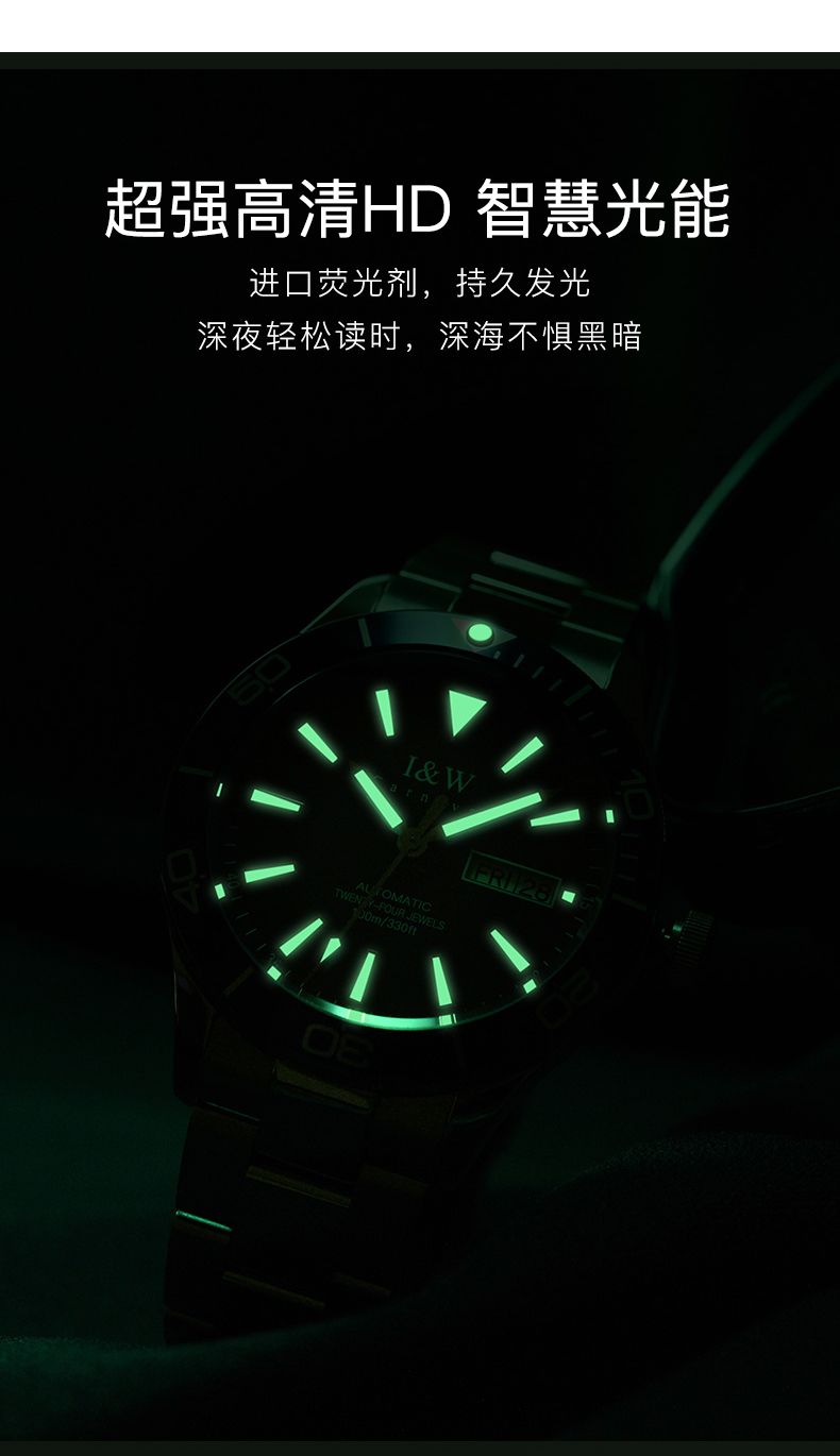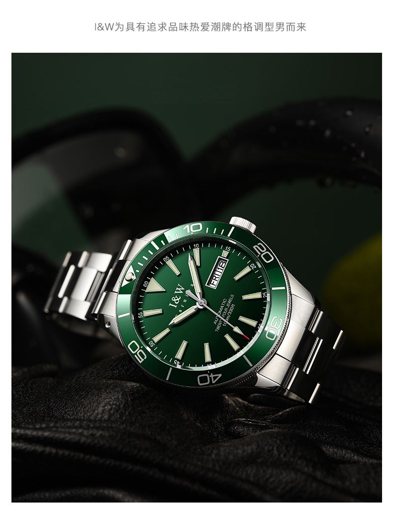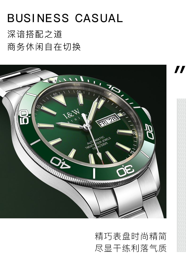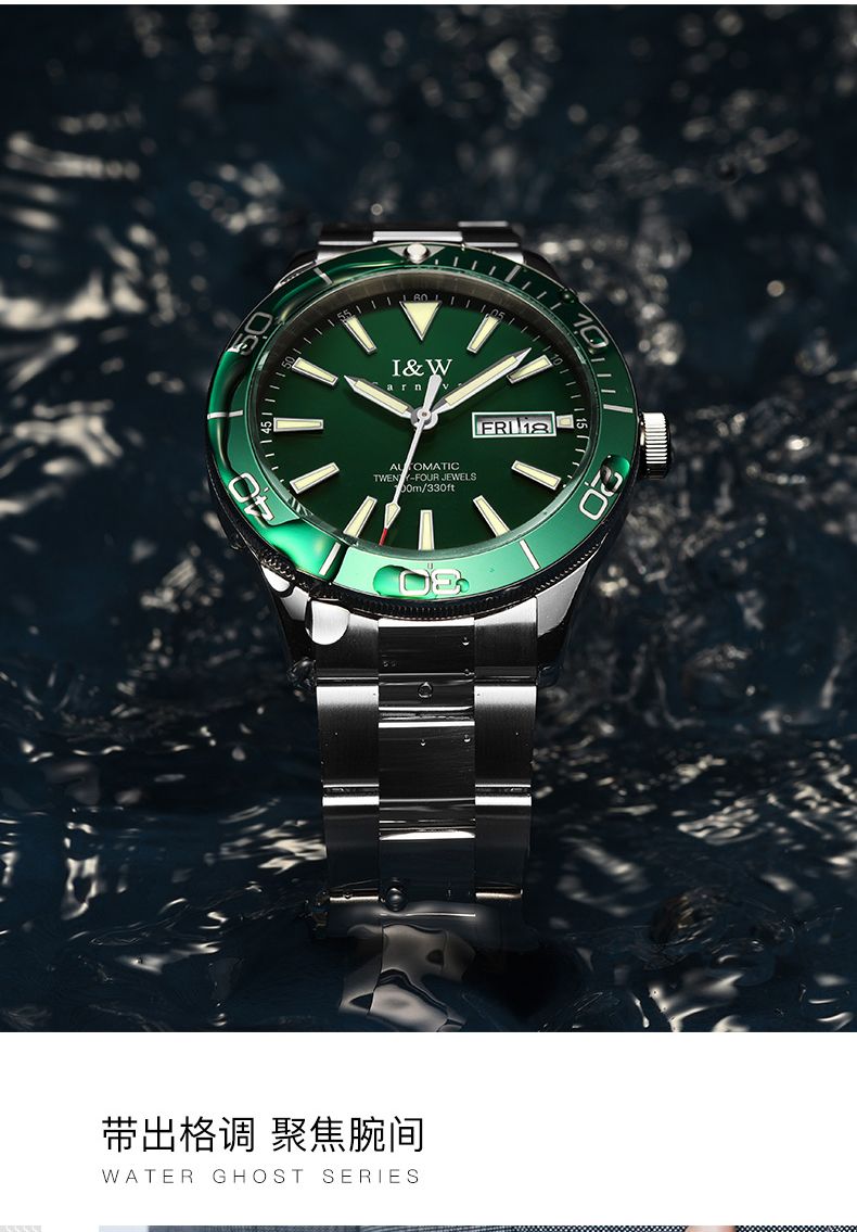 【防水100米】IW正品绿水鬼自动机械表品牌男士手表时尚潮流十大533G
