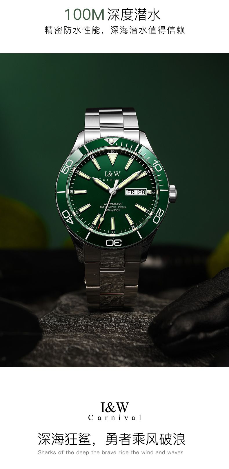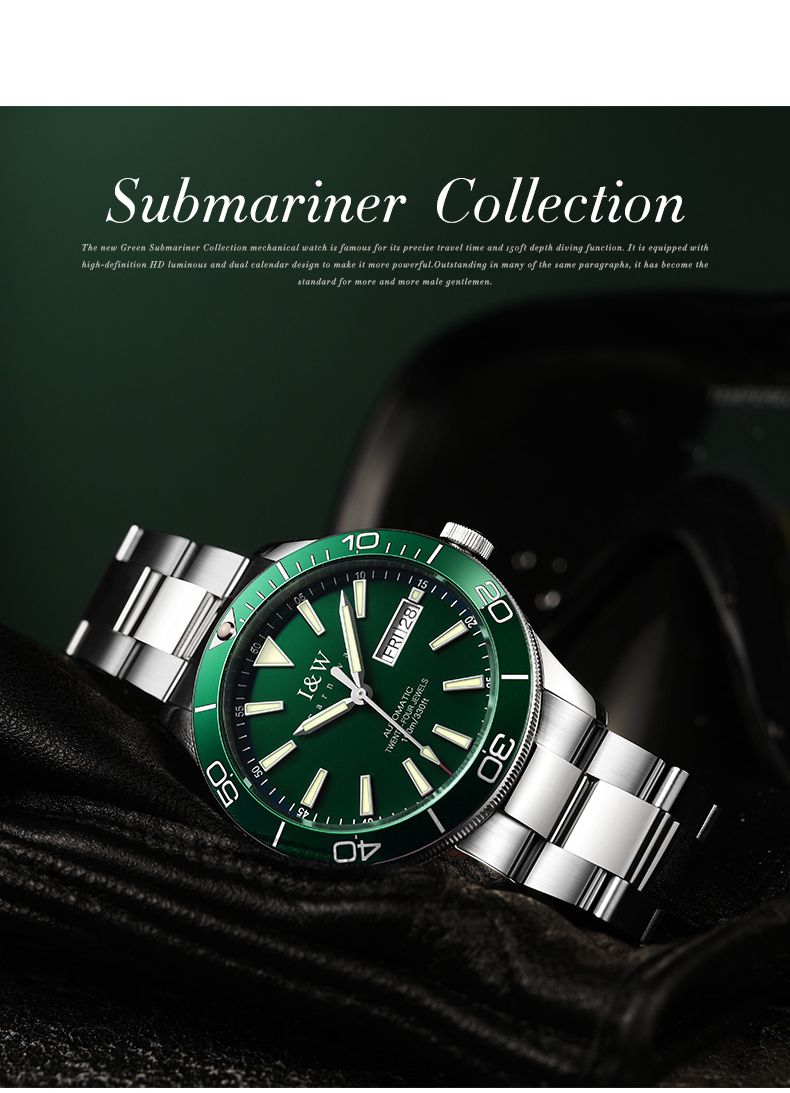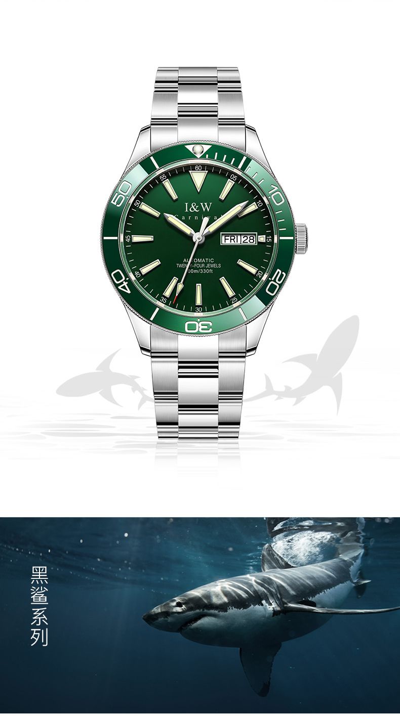 【防水100米】IW正品绿水鬼自动机械表品牌男士手表时尚潮流十大533G