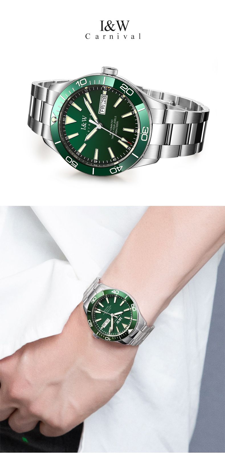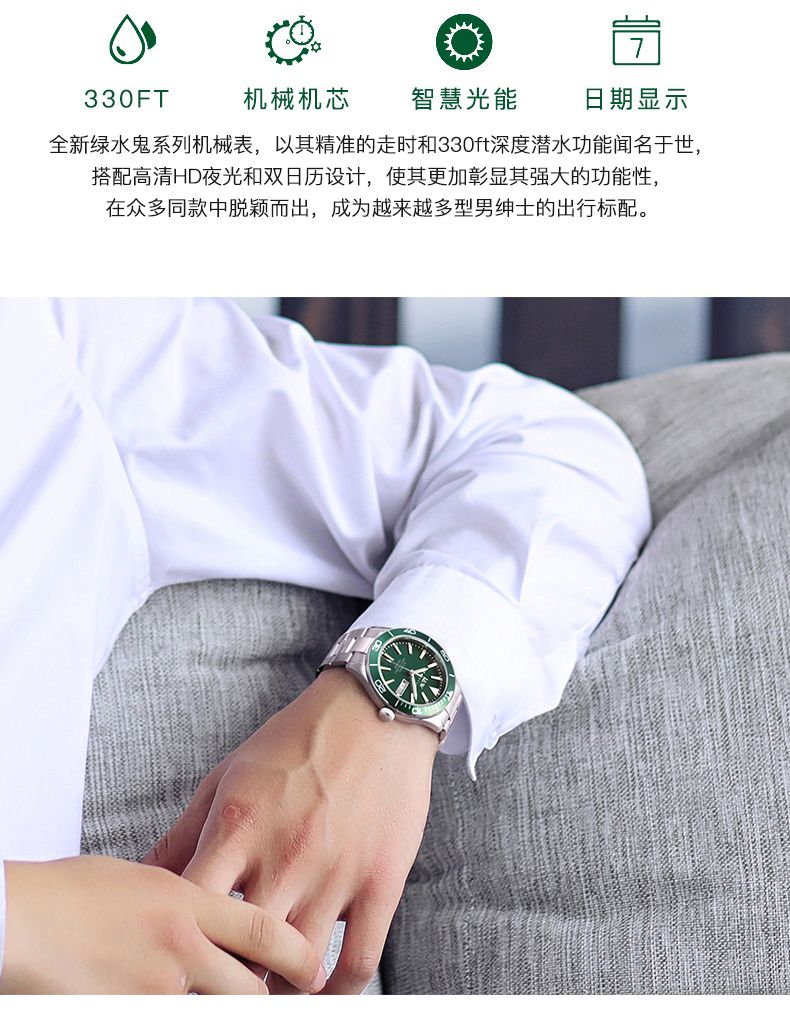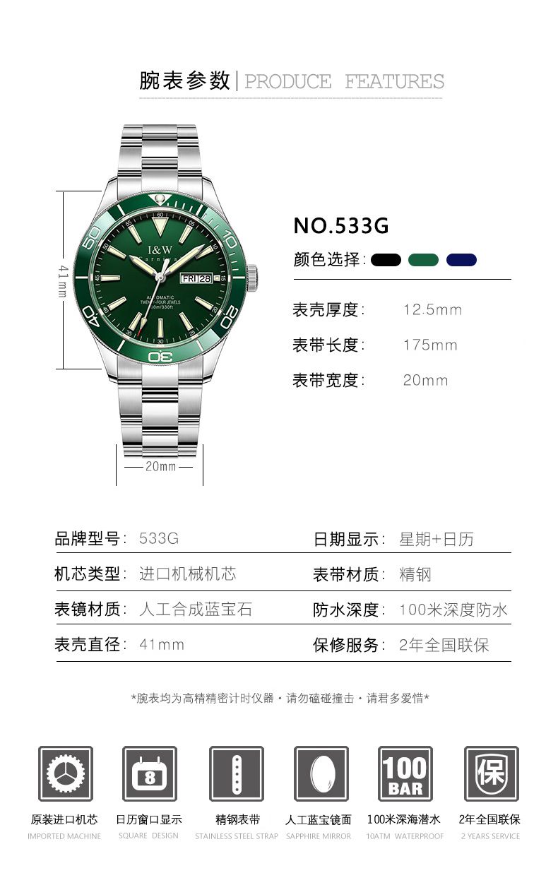 商品名称:【防水100米】IW正品绿水鬼自动机械表品牌男士手表时尚潮流十大533G