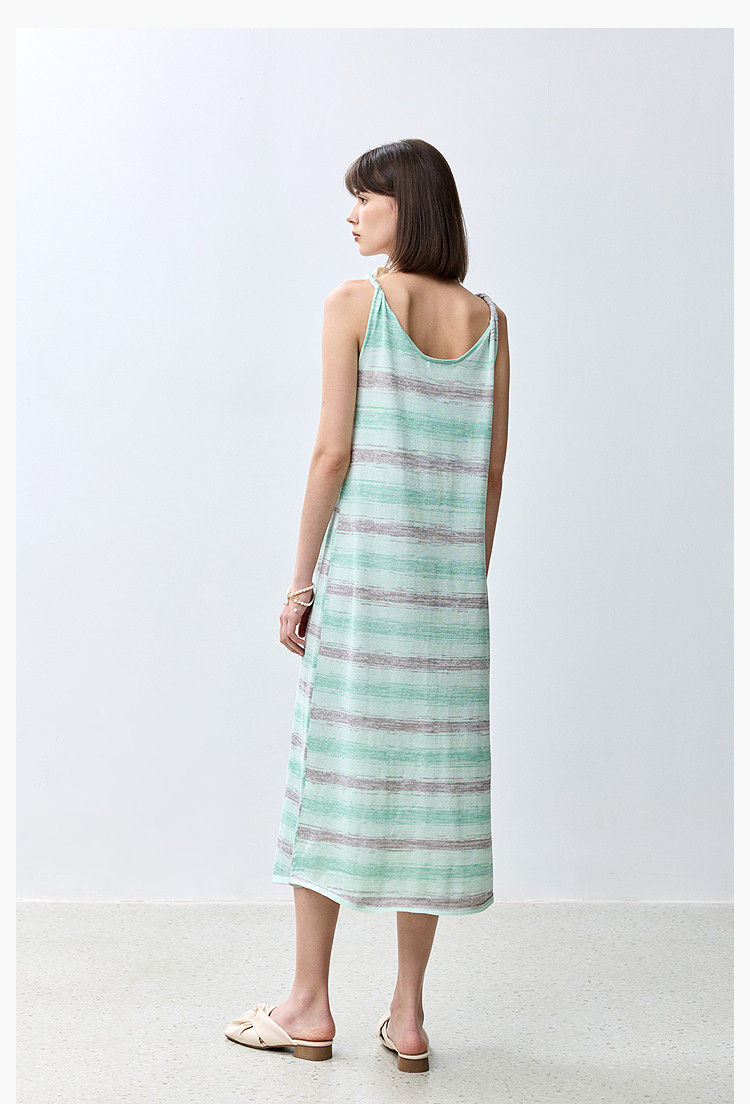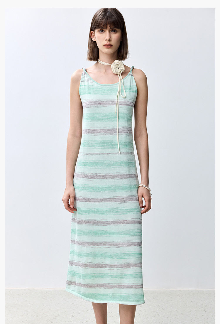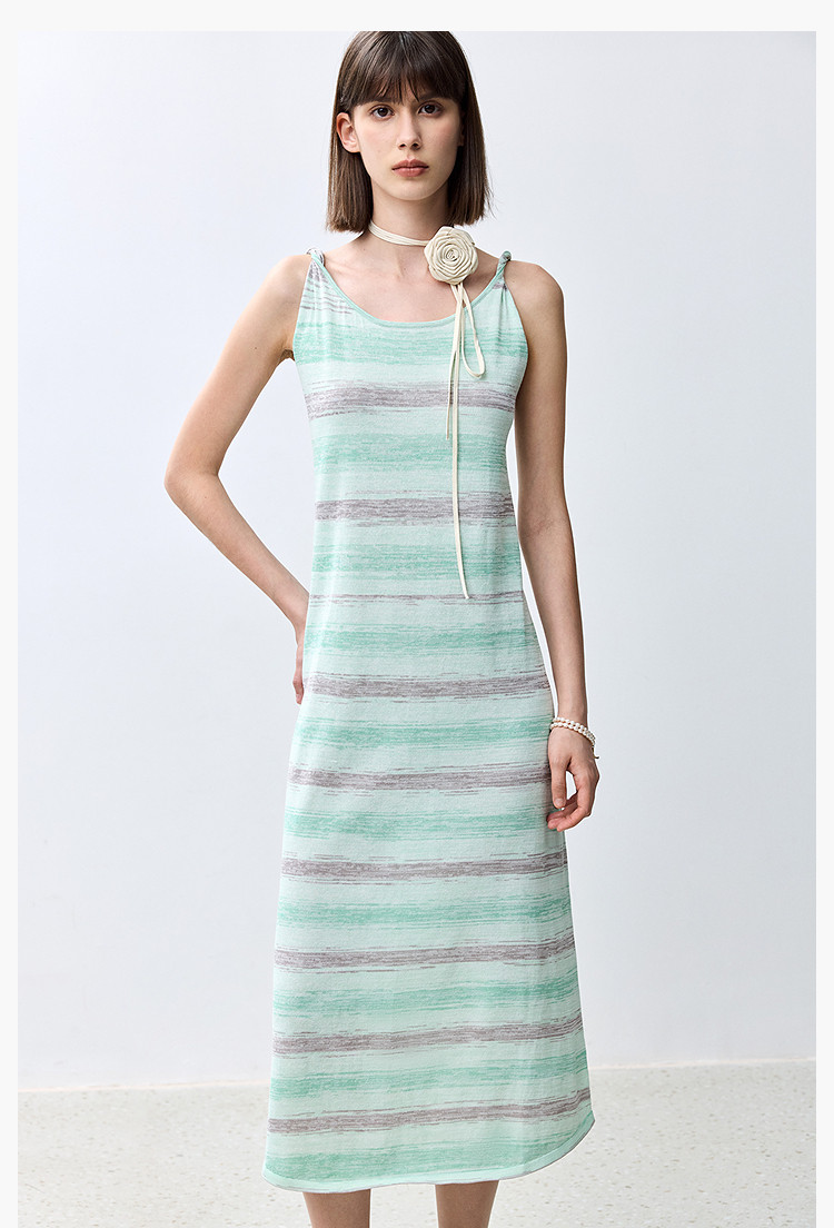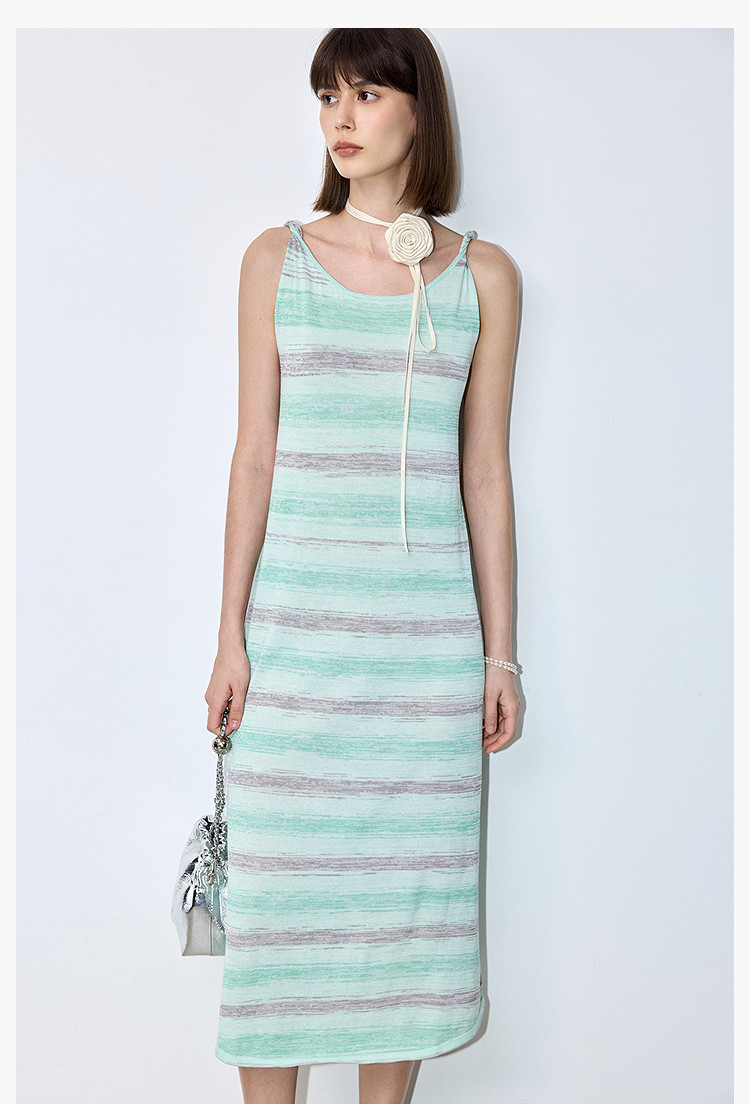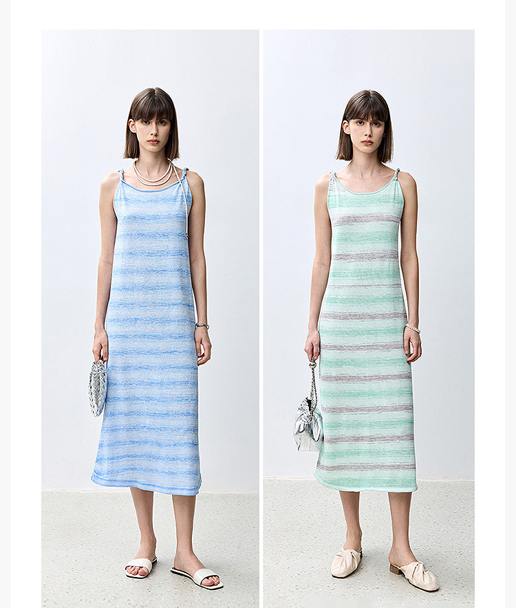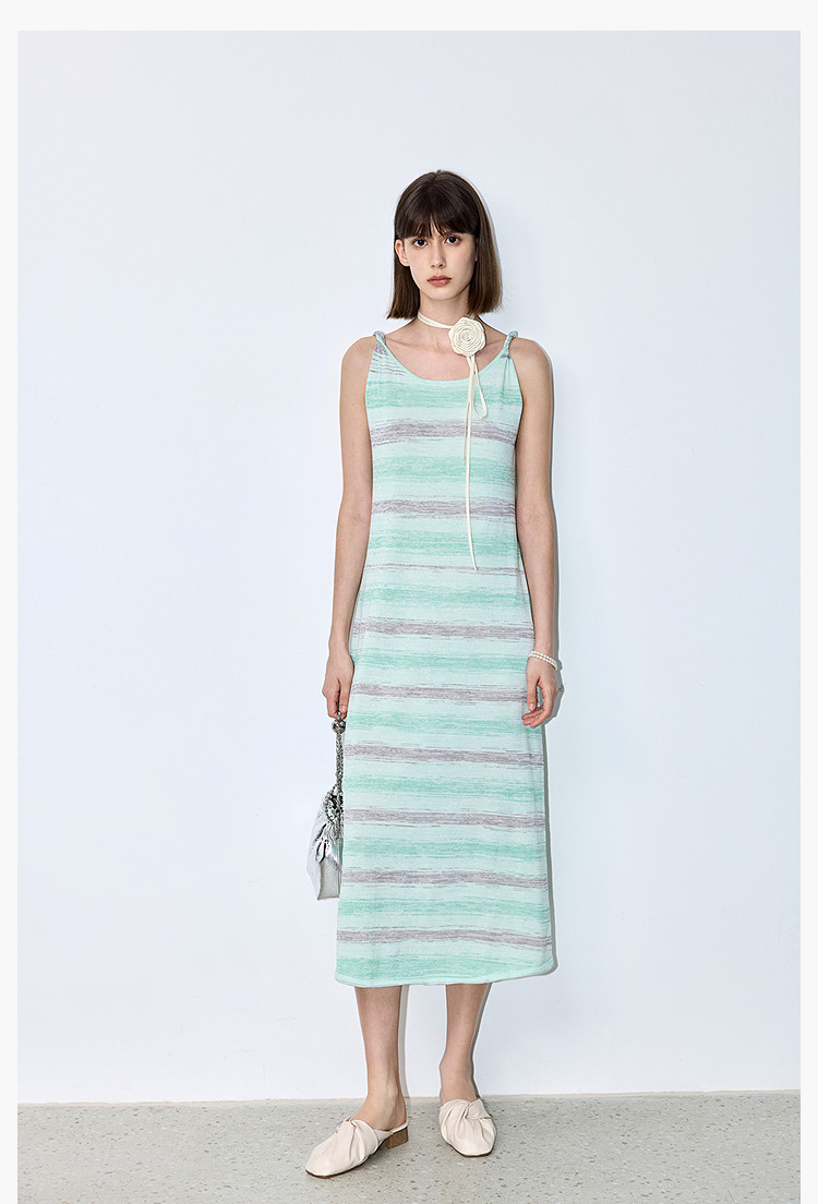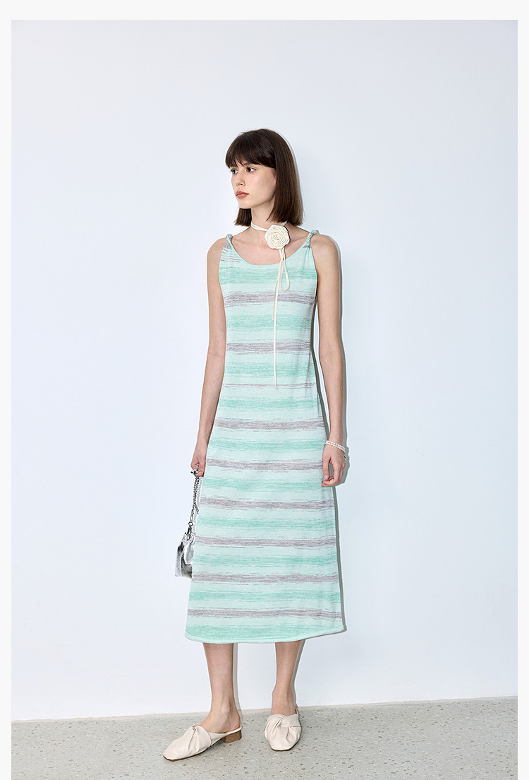 夏季裙子女薄荷曼波气质显瘦度假风条纹吊带连衣裙女 230235