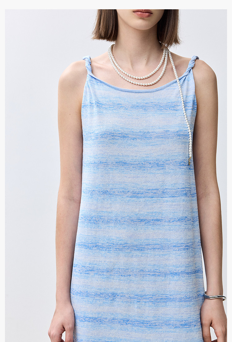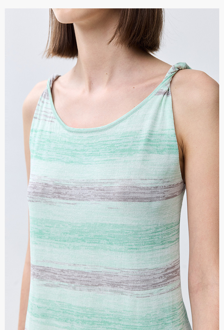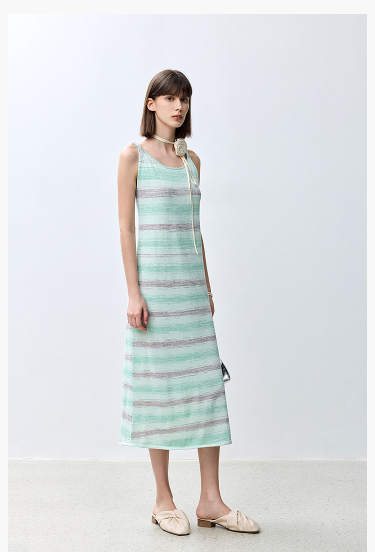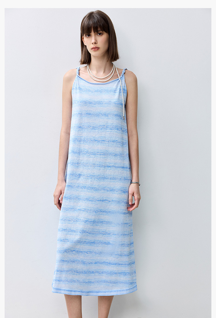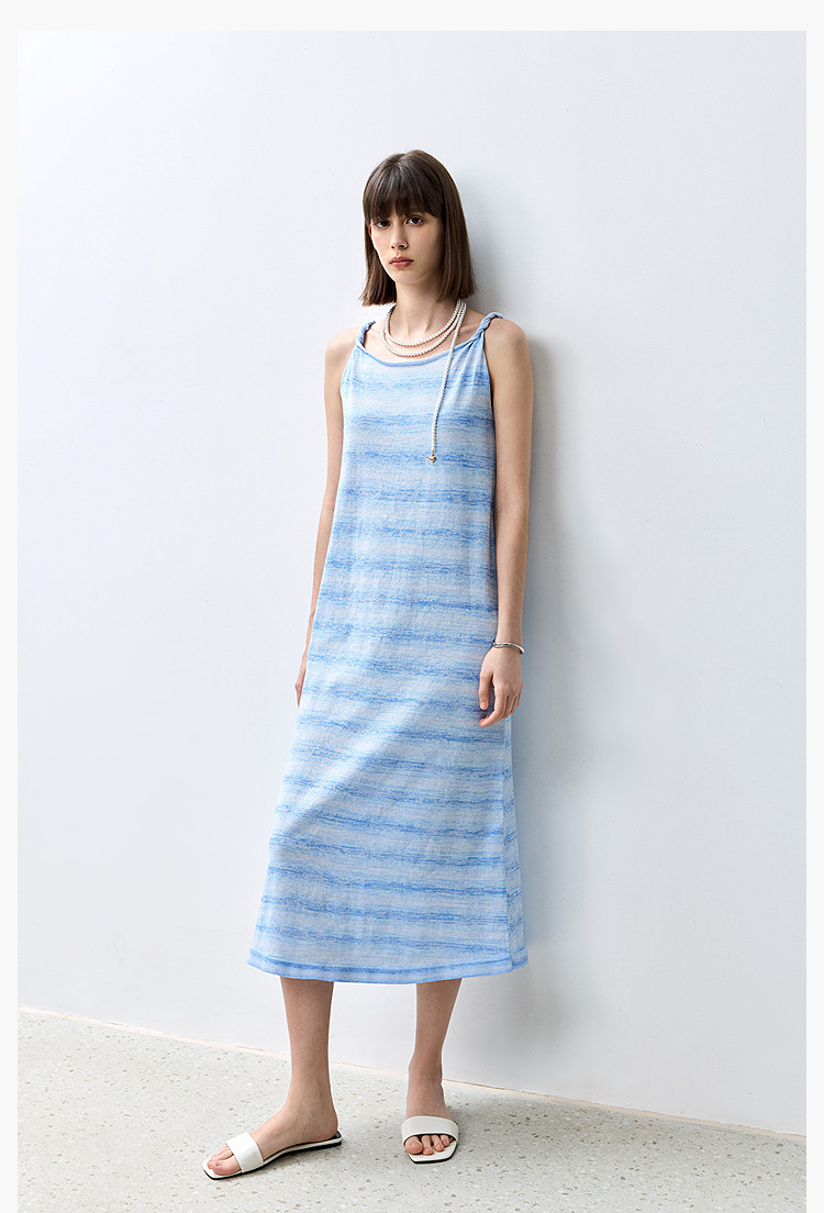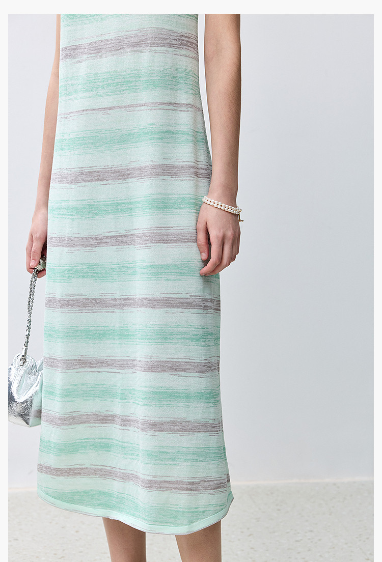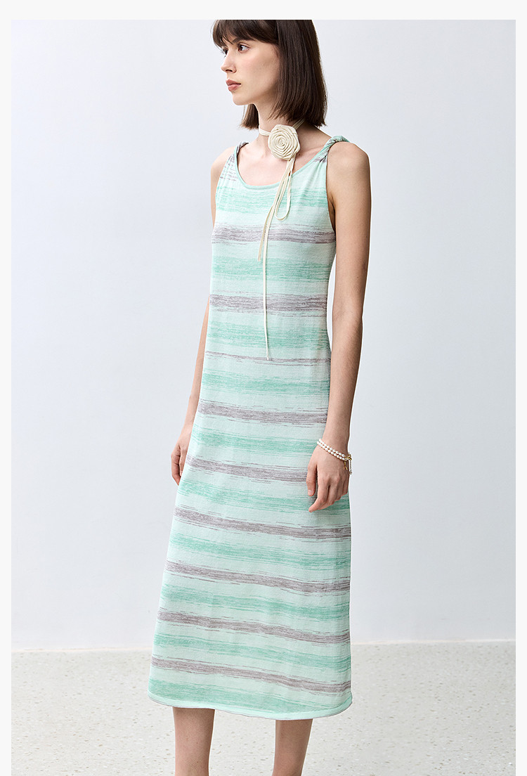 夏季裙子女薄荷曼波气质显瘦度假风条纹吊带连衣裙女 230235