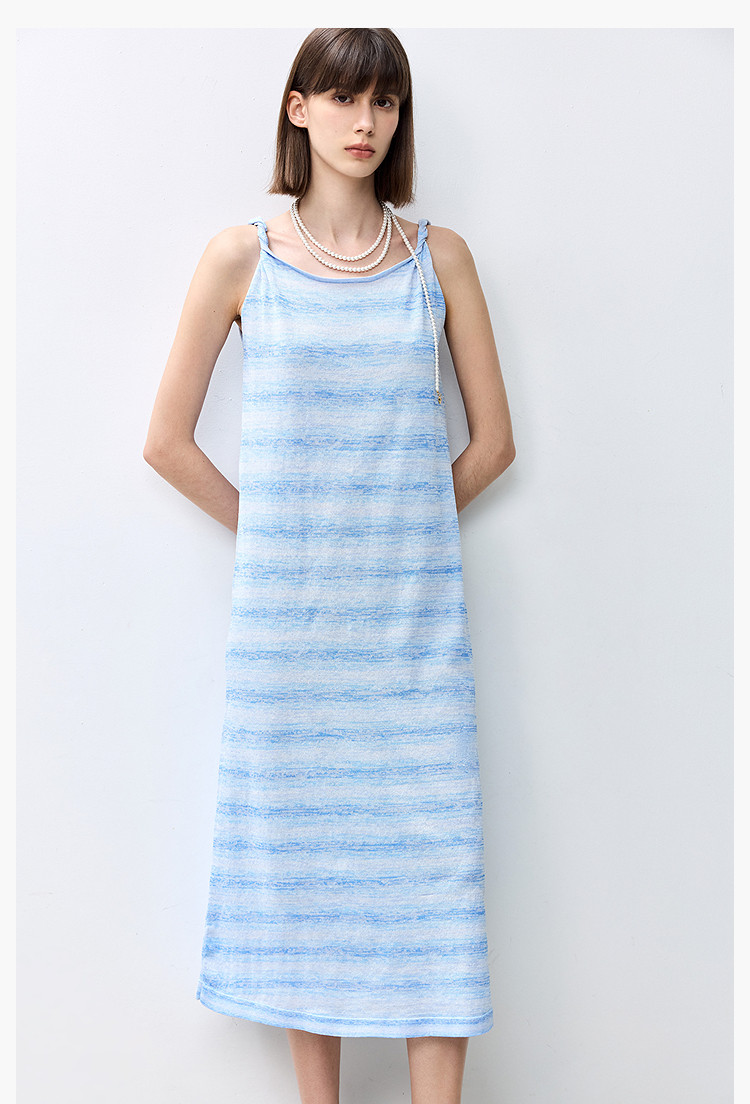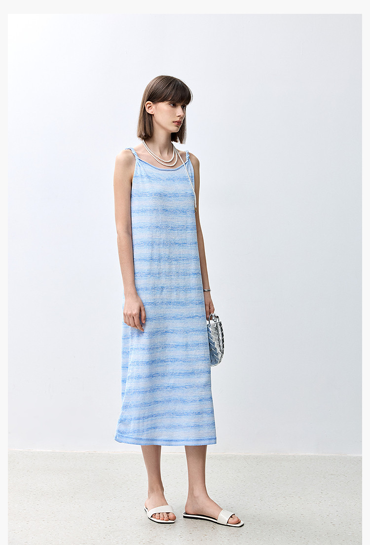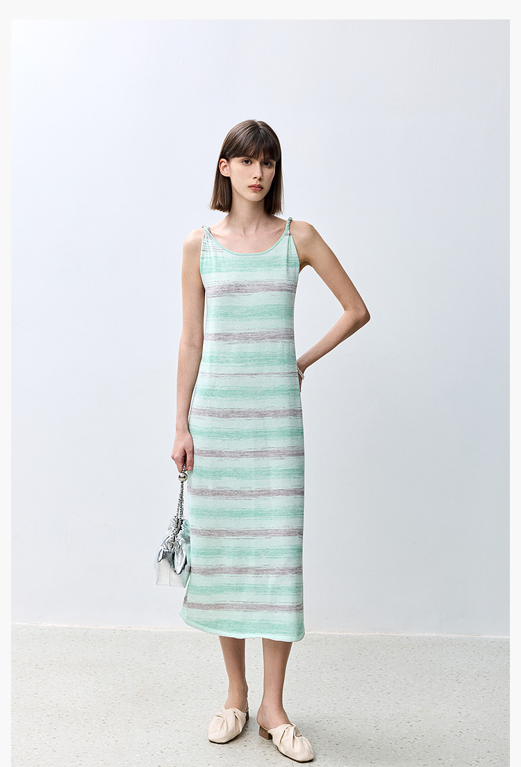 商品名称:夏季裙子女薄荷曼波气质显瘦度假风条纹吊带连衣裙女 230235