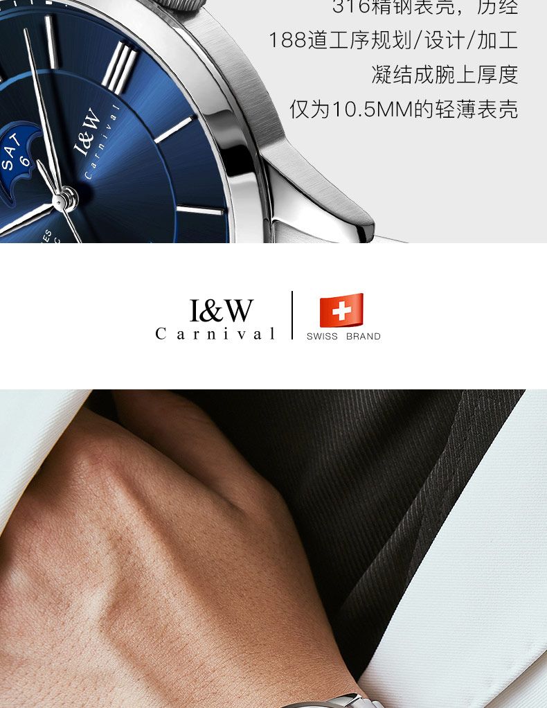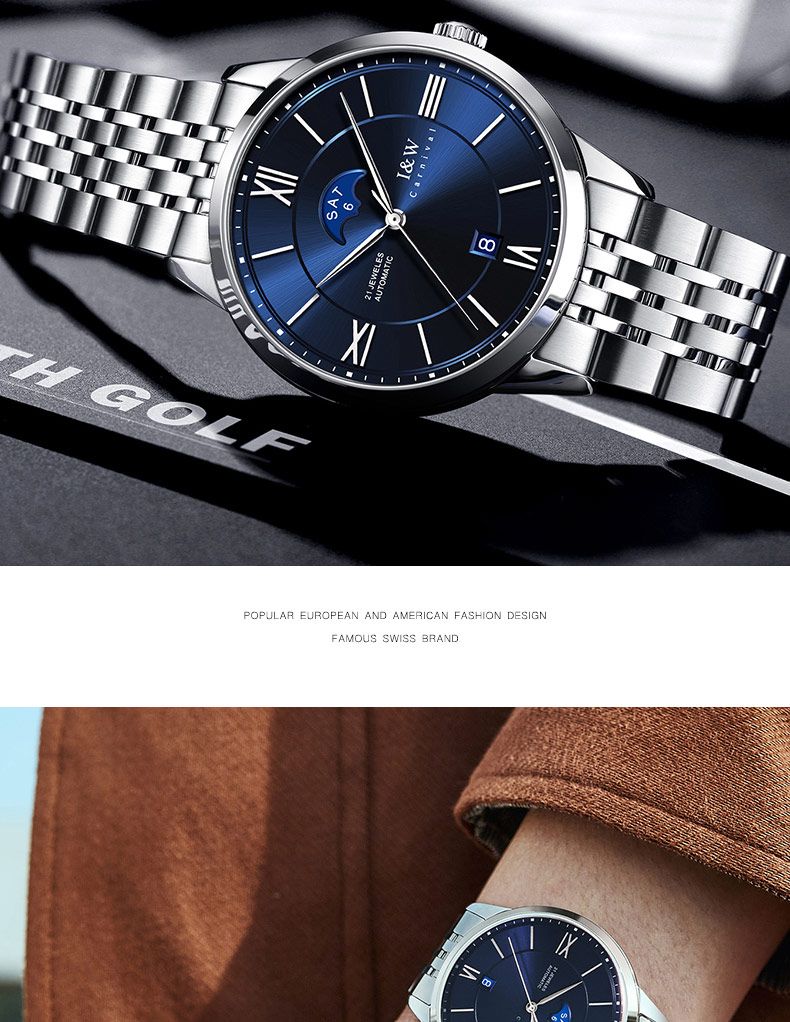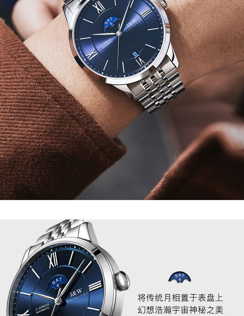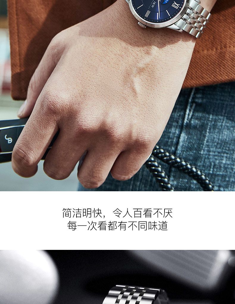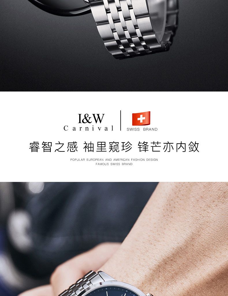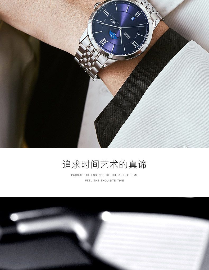 商品名称:I&W品牌手表男机械表休闲时尚钢带男表间金防水机械表男士528G