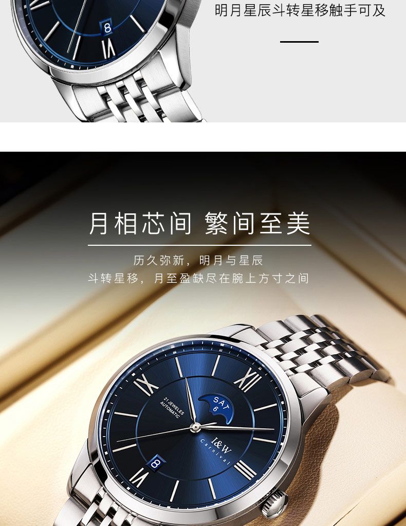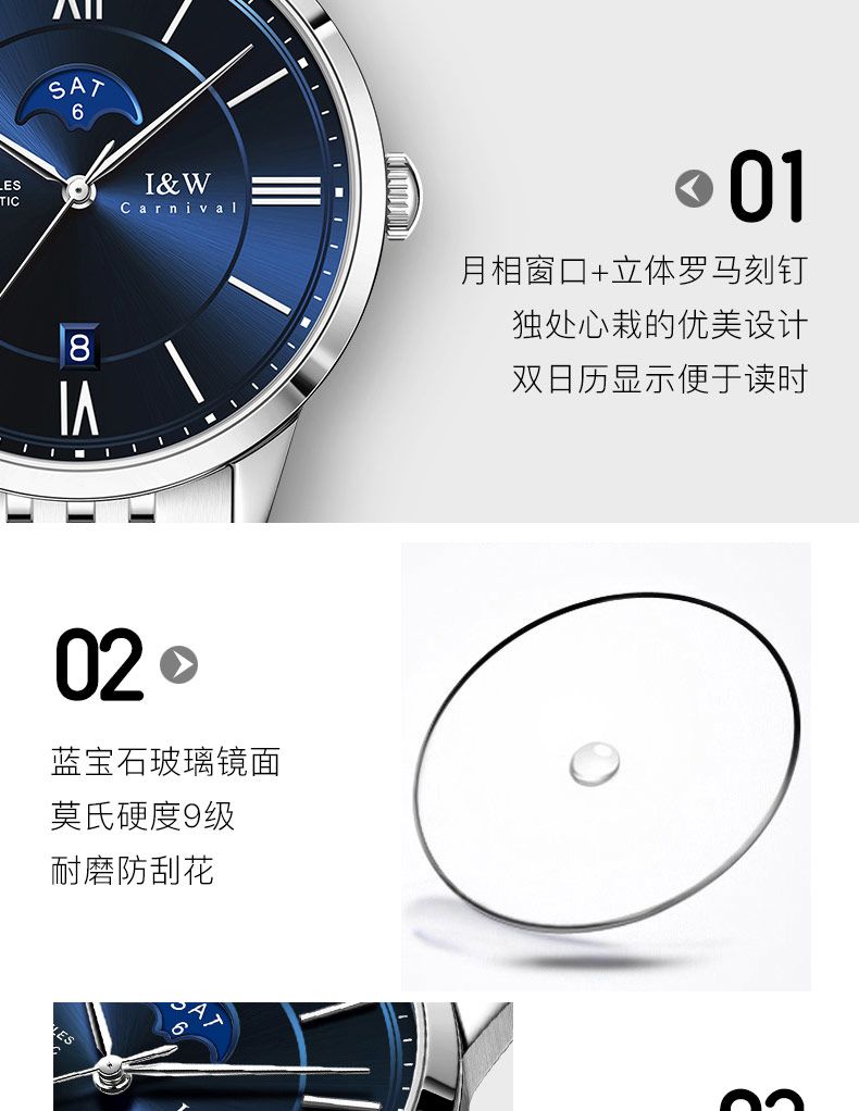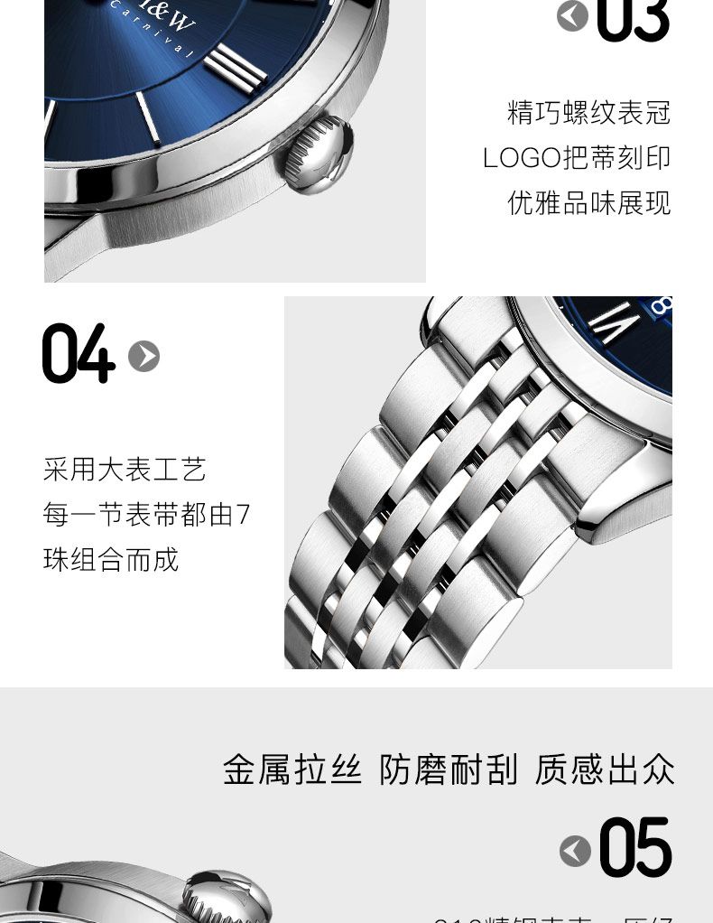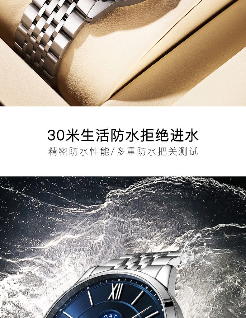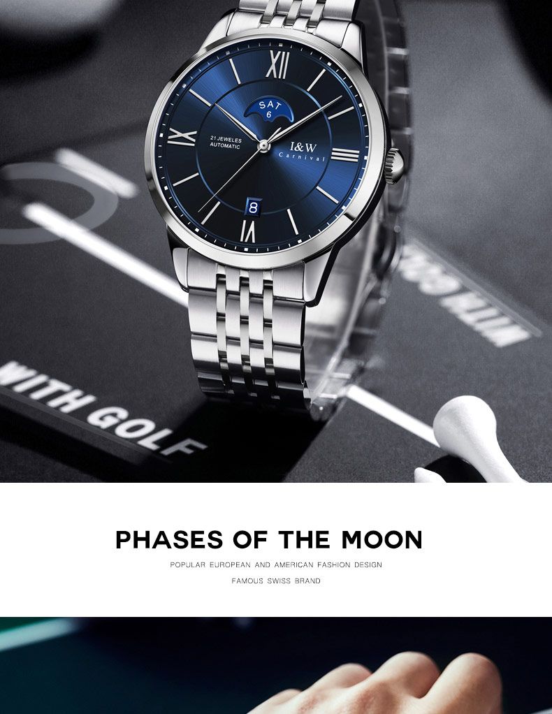 商品名称:I&W品牌手表男机械表休闲时尚钢带男表间金防水机械表男士528G