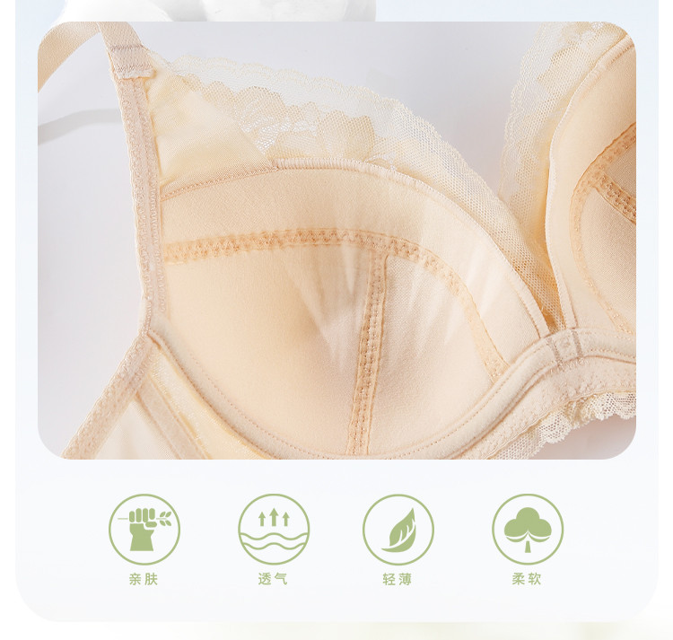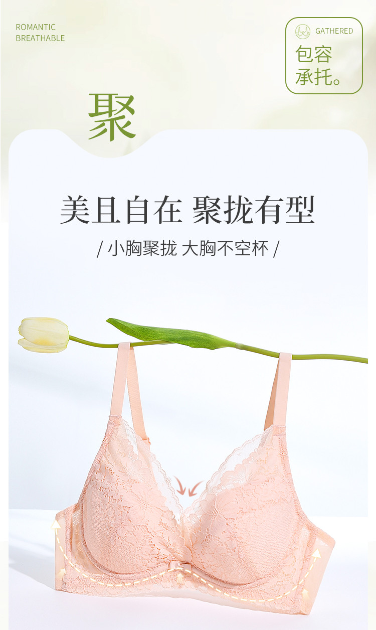 商品名称:【大胸全包】100%纯棉里杯软支撑内衣女士蕾丝花瓣聚拢文胸女 747147