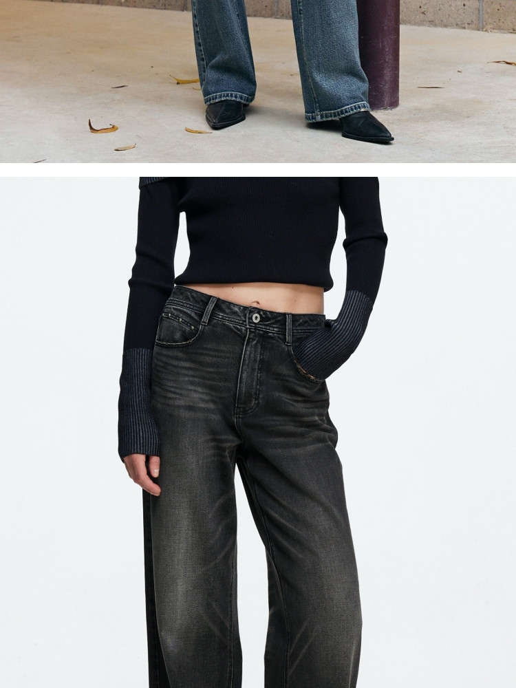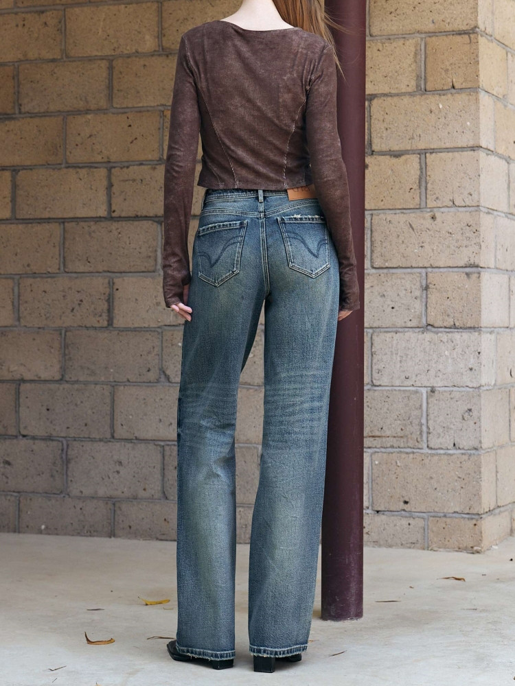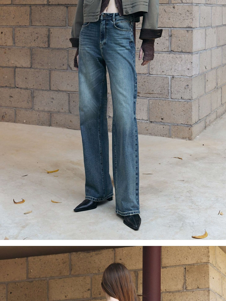 【直筒裤】夏季显瘦通勤磨白精致长裤牛仔裤女 096090