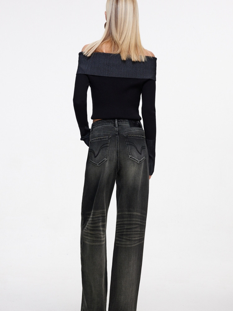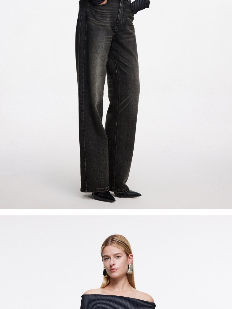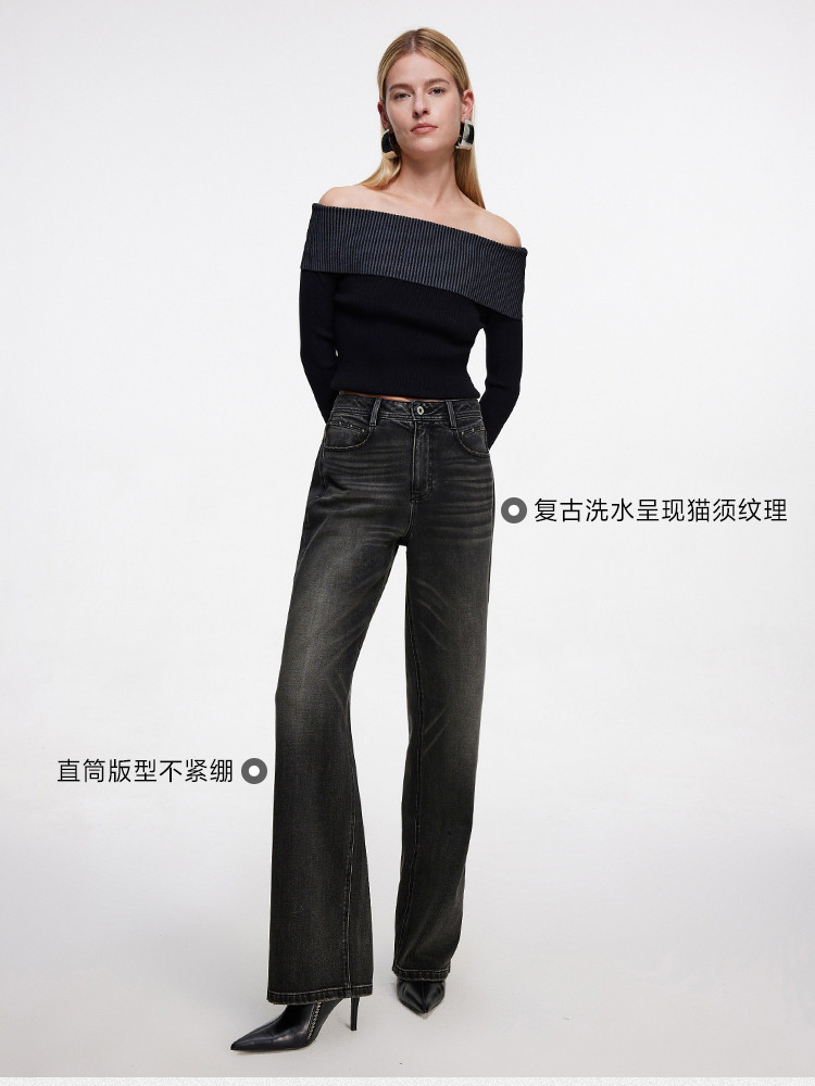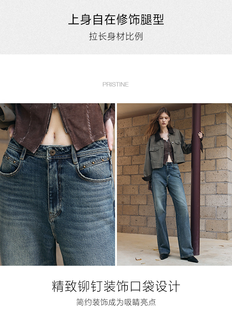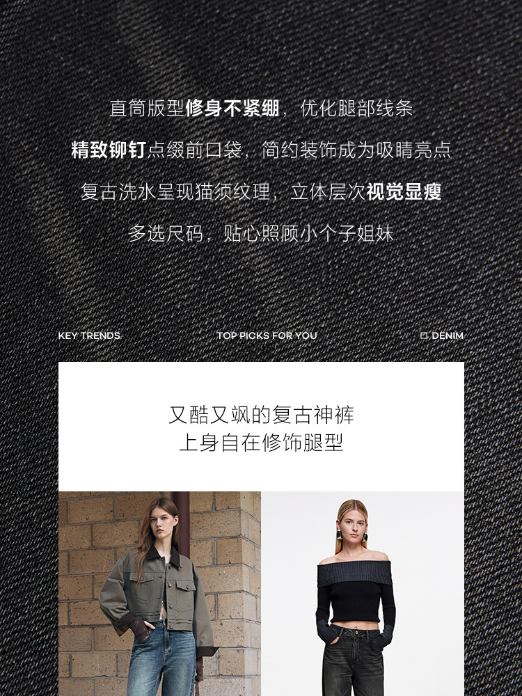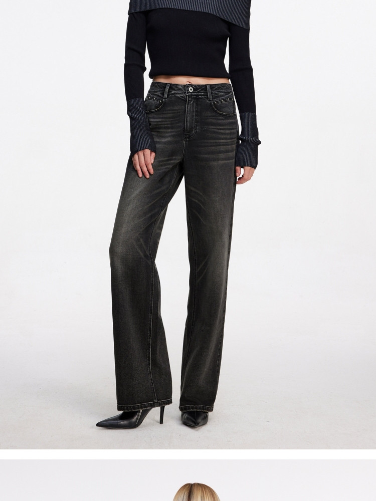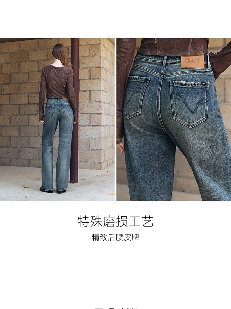 商品名称:【直筒裤】夏季显瘦通勤磨白精致长裤牛仔裤女 096090