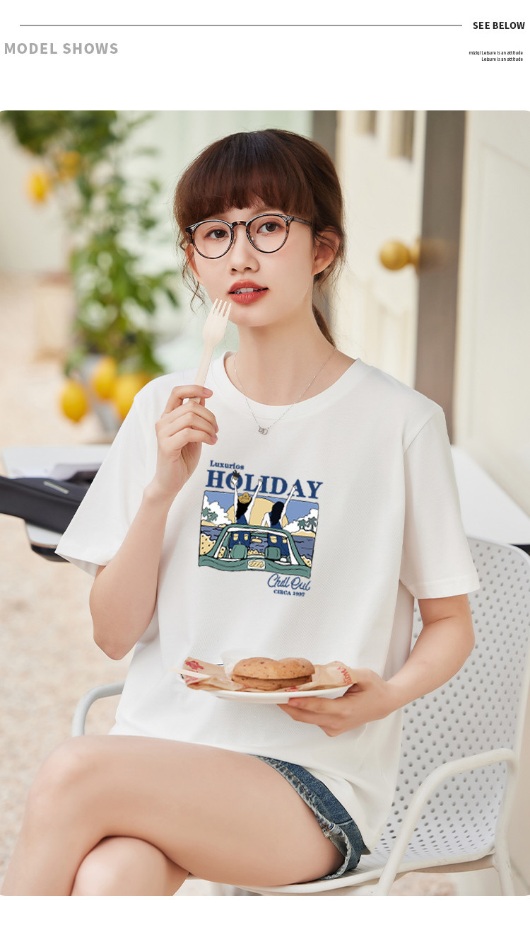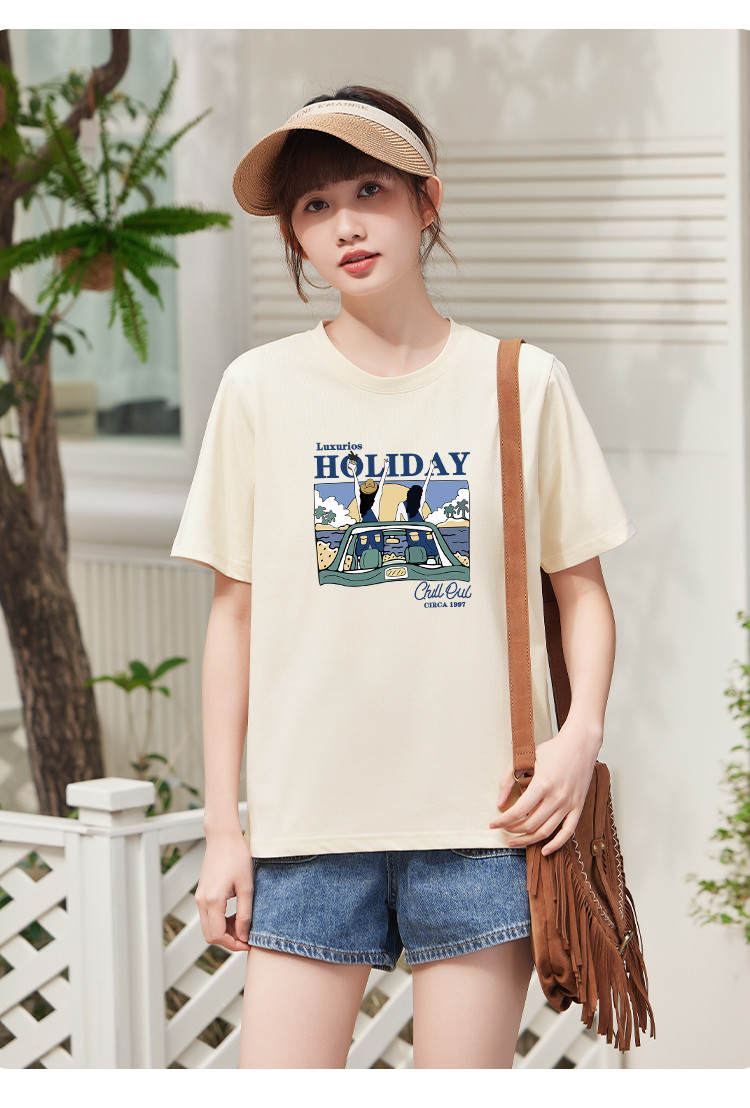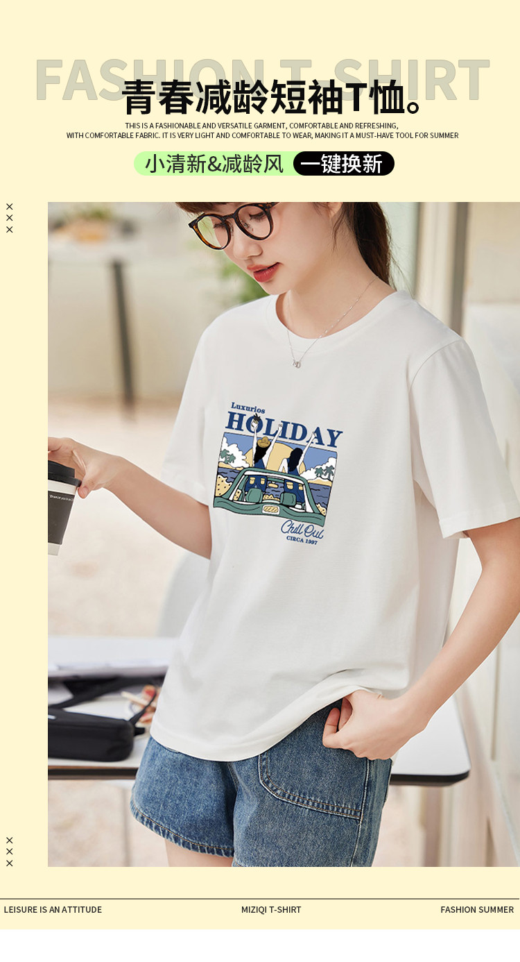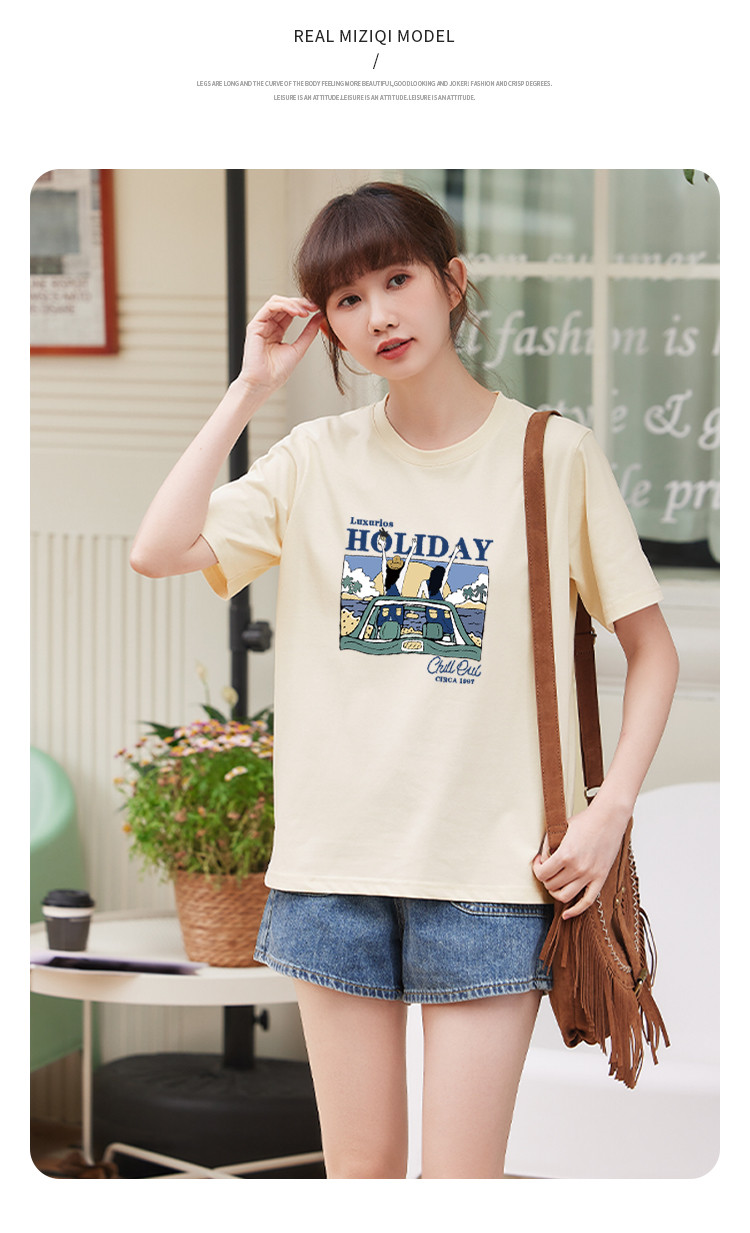 商品名称:米子旗夏季圆领创意图案女式T恤宽松版休闲短袖上衣 752218