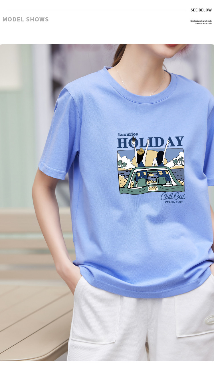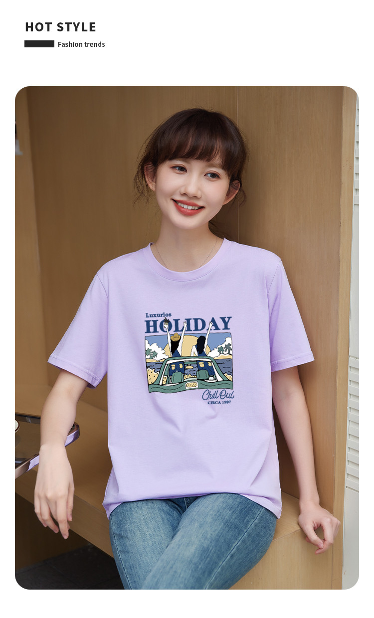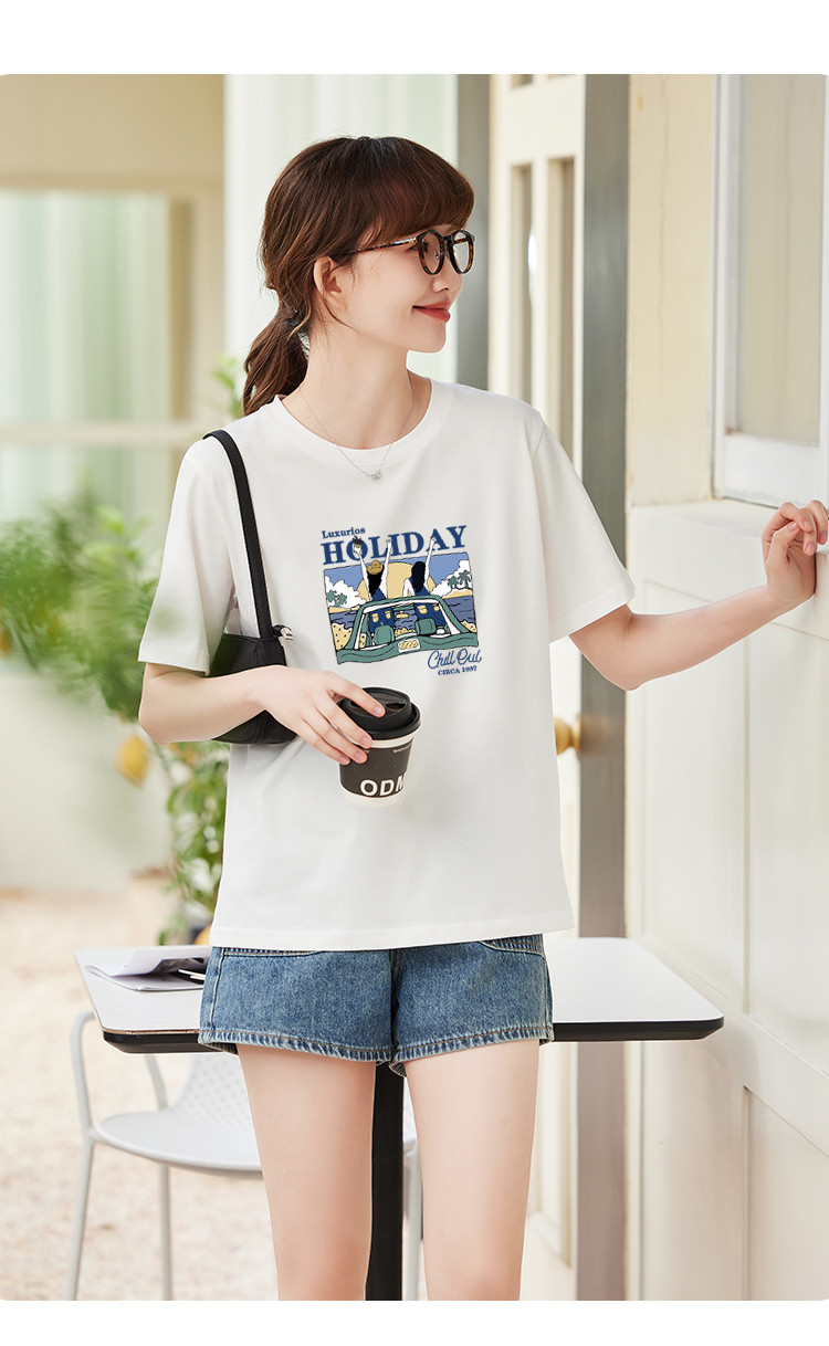 商品名称:米子旗夏季圆领创意图案女式T恤宽松版休闲短袖上衣 752218