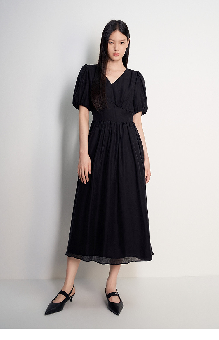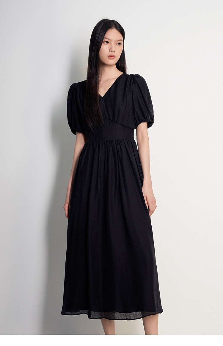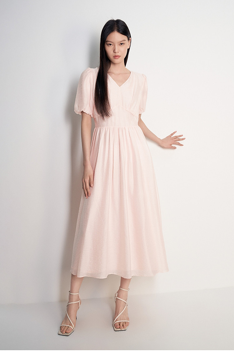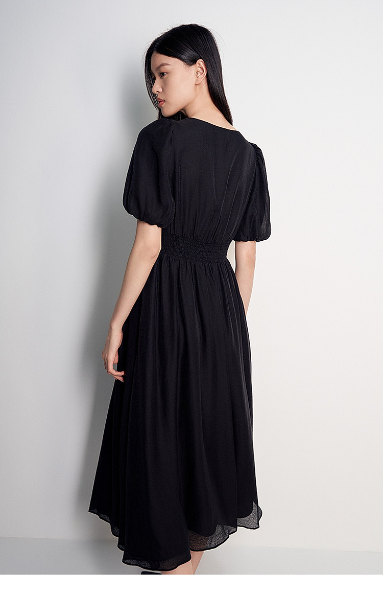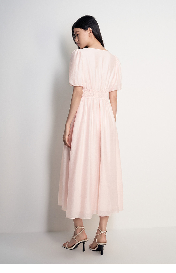 商品名称:夏装 天丝薄提花法式桔梗裙连衣裙收腰气质 181007