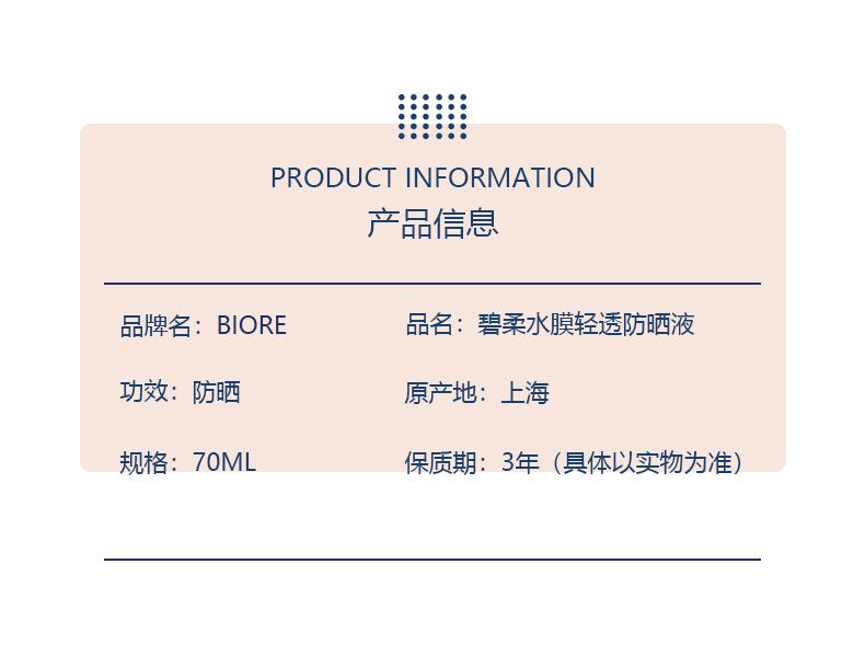 商品名称:Biore/碧柔水膜轻透防晒液70ml