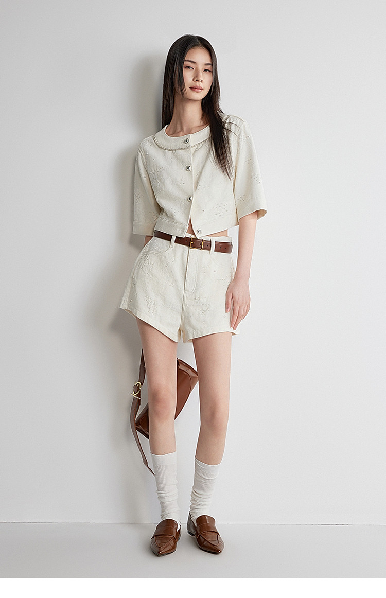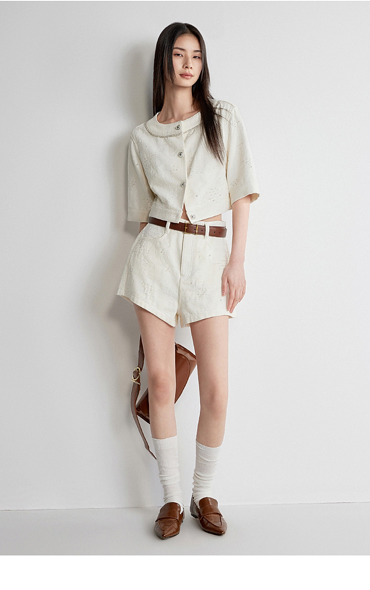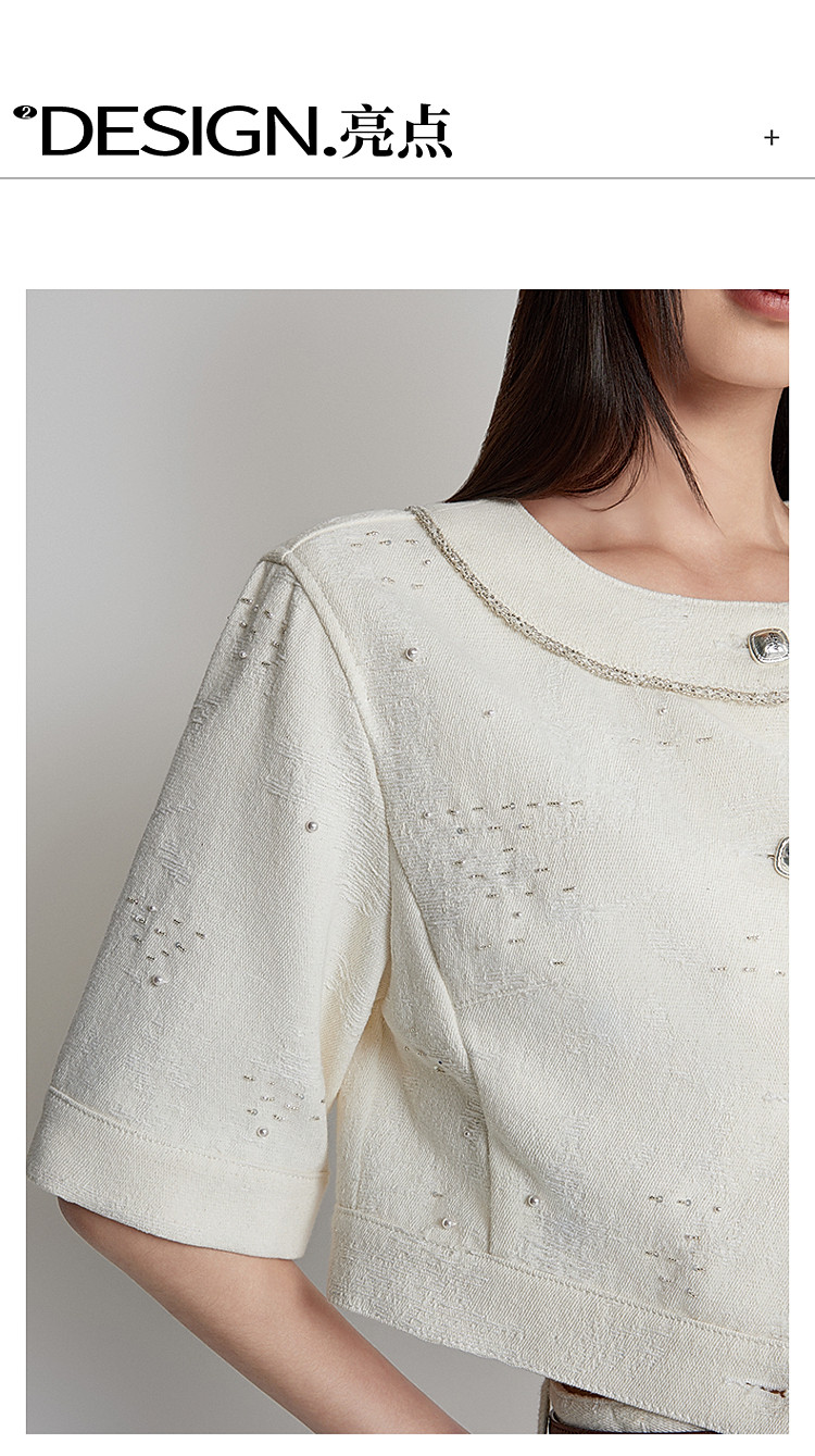 夏装 小香风短袖牛仔外套女短款钉珠法式 668303