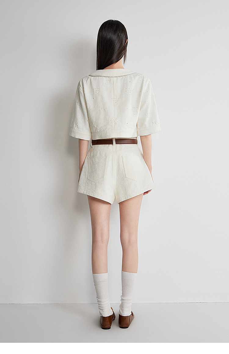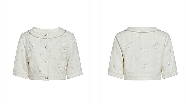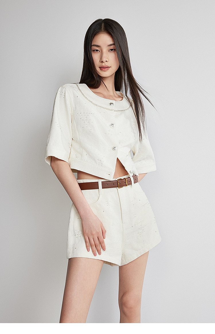商品名称:夏装 小香风短袖牛仔外套女短款钉珠法式 668303