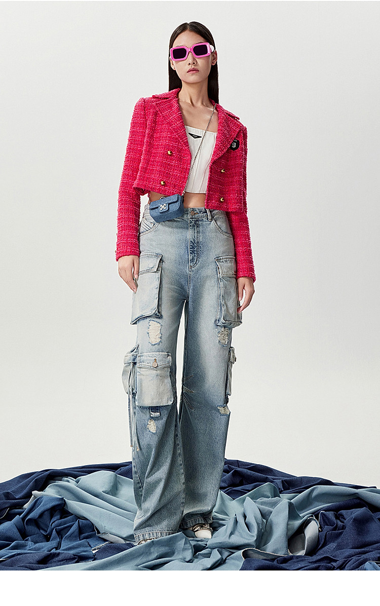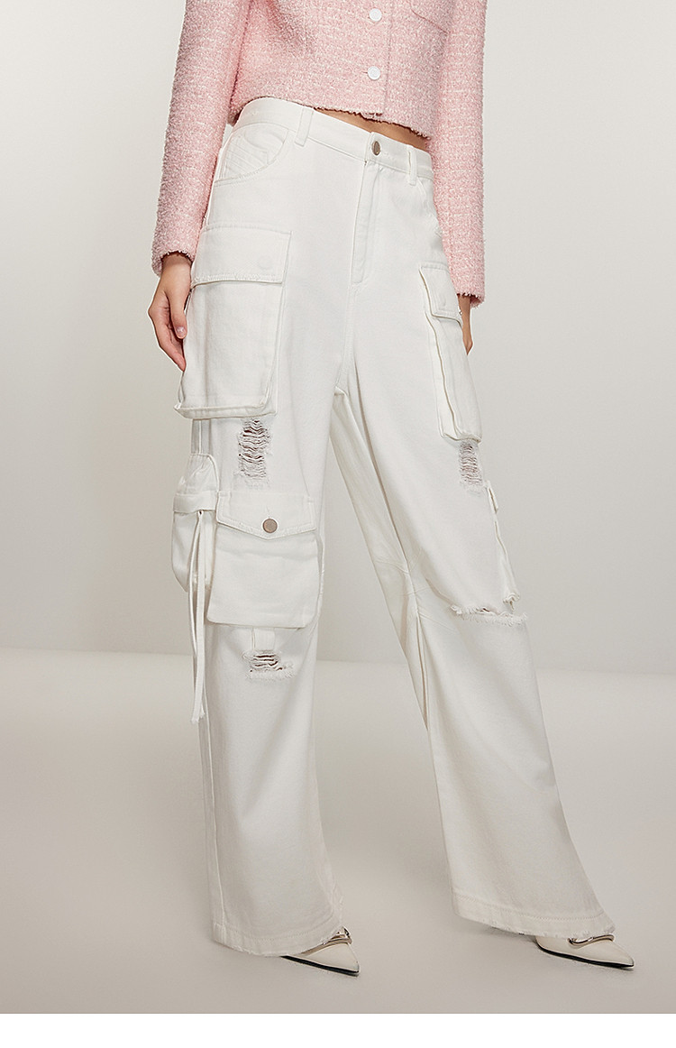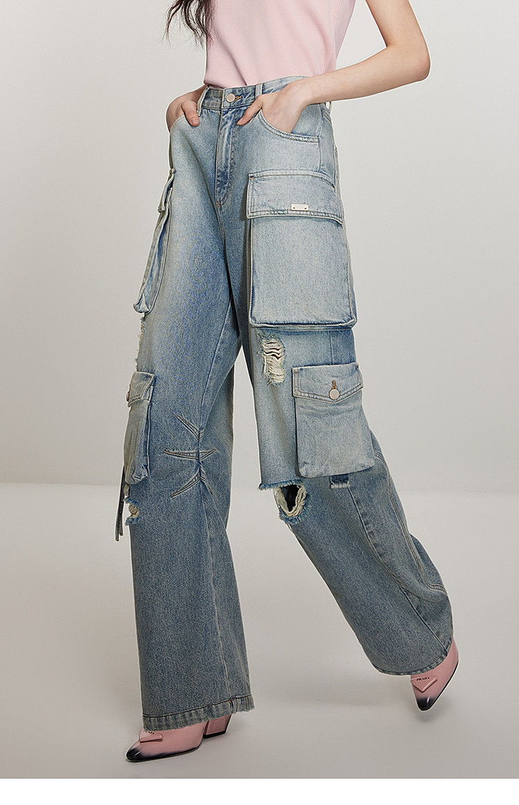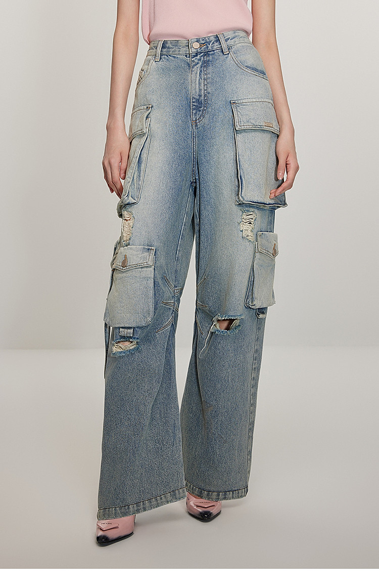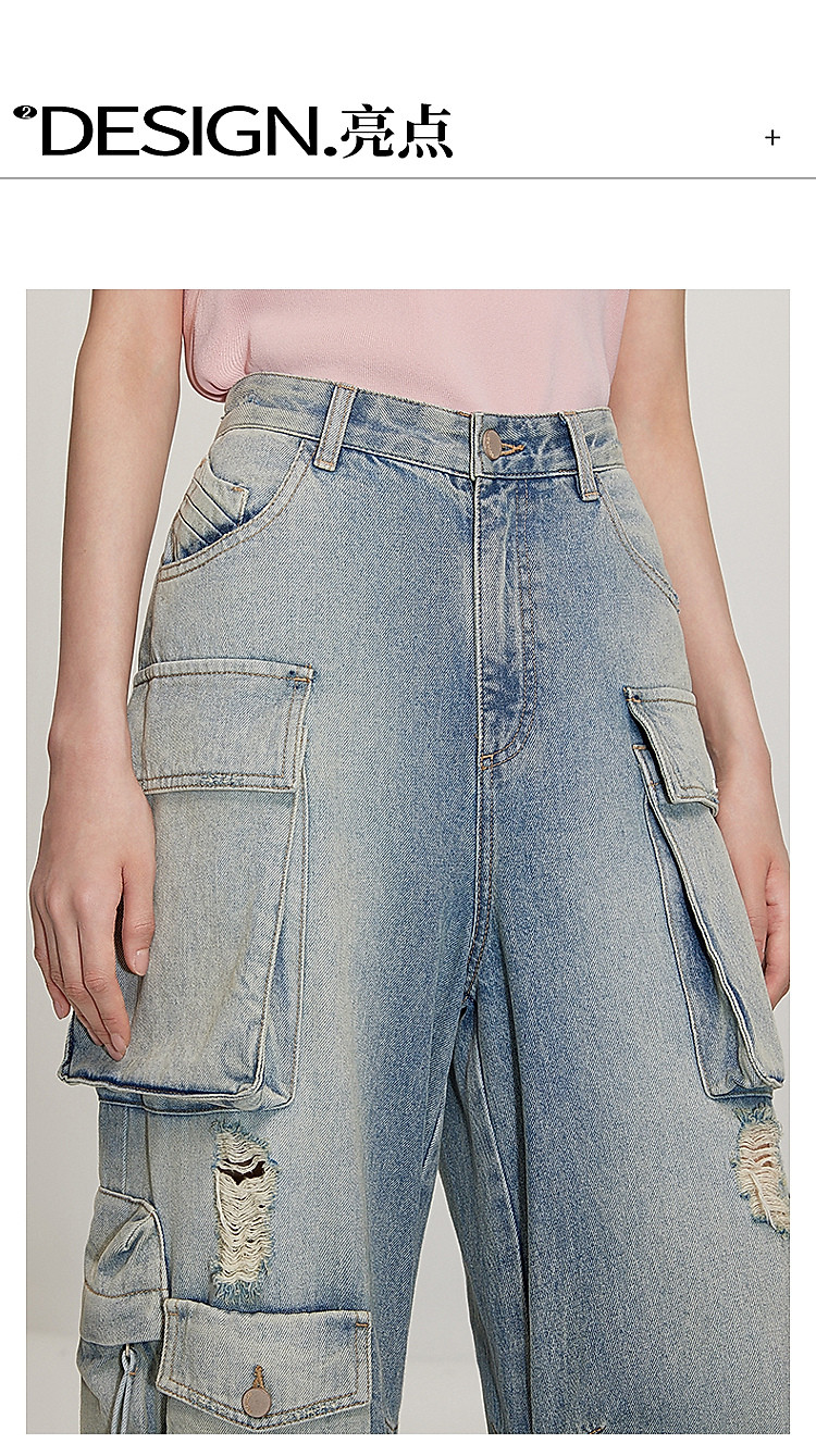商品名称:春装 工装裤阔腿牛仔裤女初破洞直筒宽松显瘦 940815