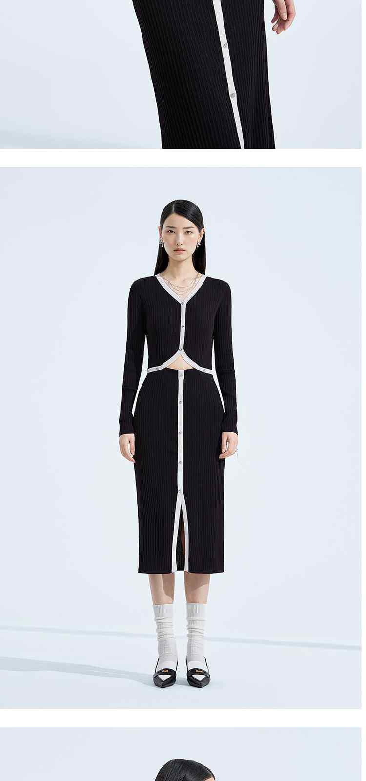 商品名称:春装 显瘦坑条撞边小香风假两件针织连衣裙 509519