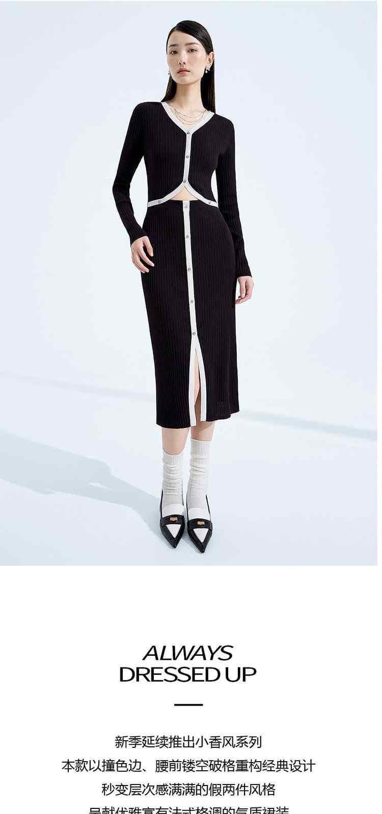 春装 显瘦坑条撞边小香风假两件针织连衣裙 509519