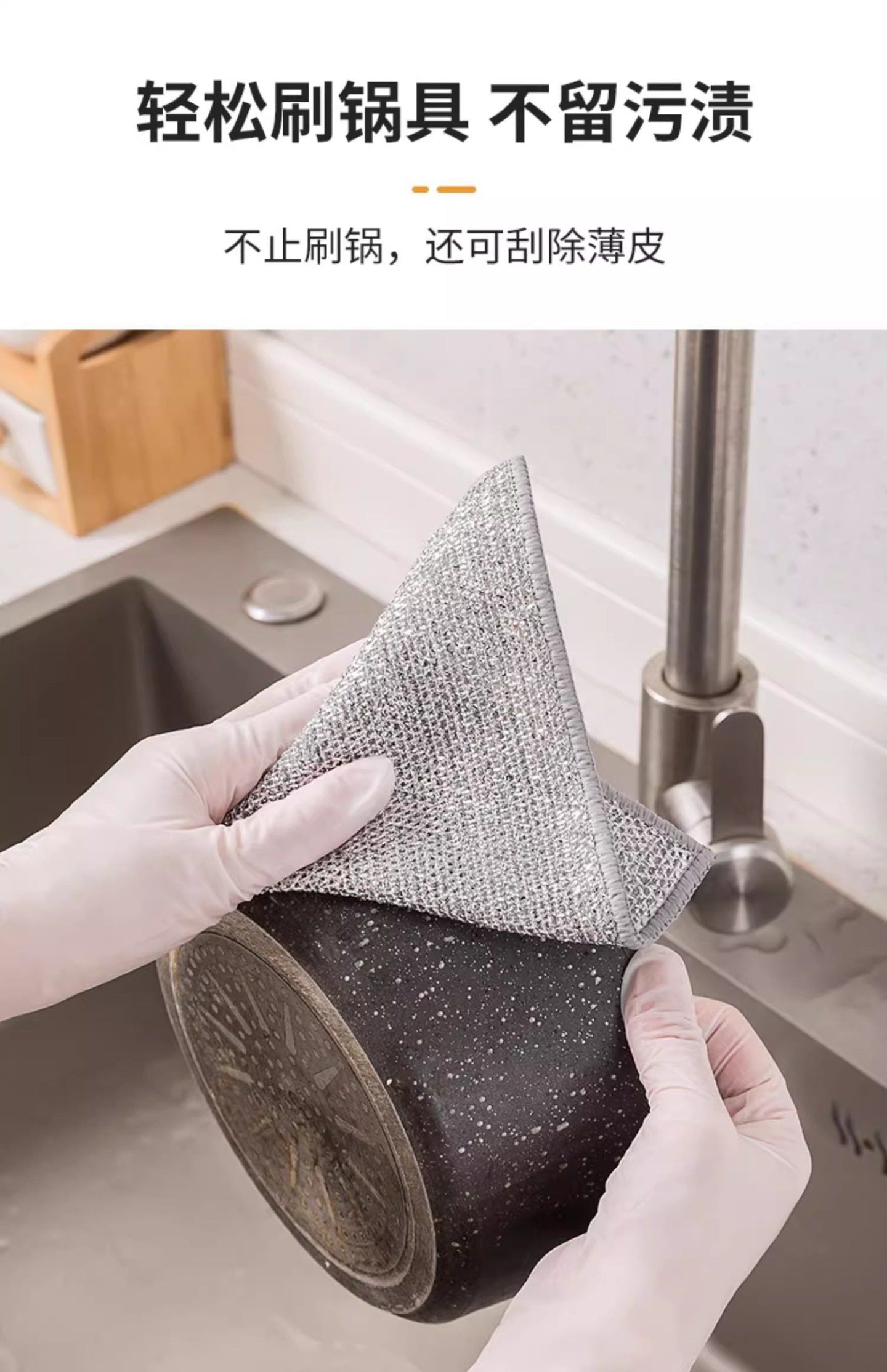 商品名称:钢丝洗碗布加厚不沾油钢丝球抹布厨房用洗碗灶台清洁布刷锅