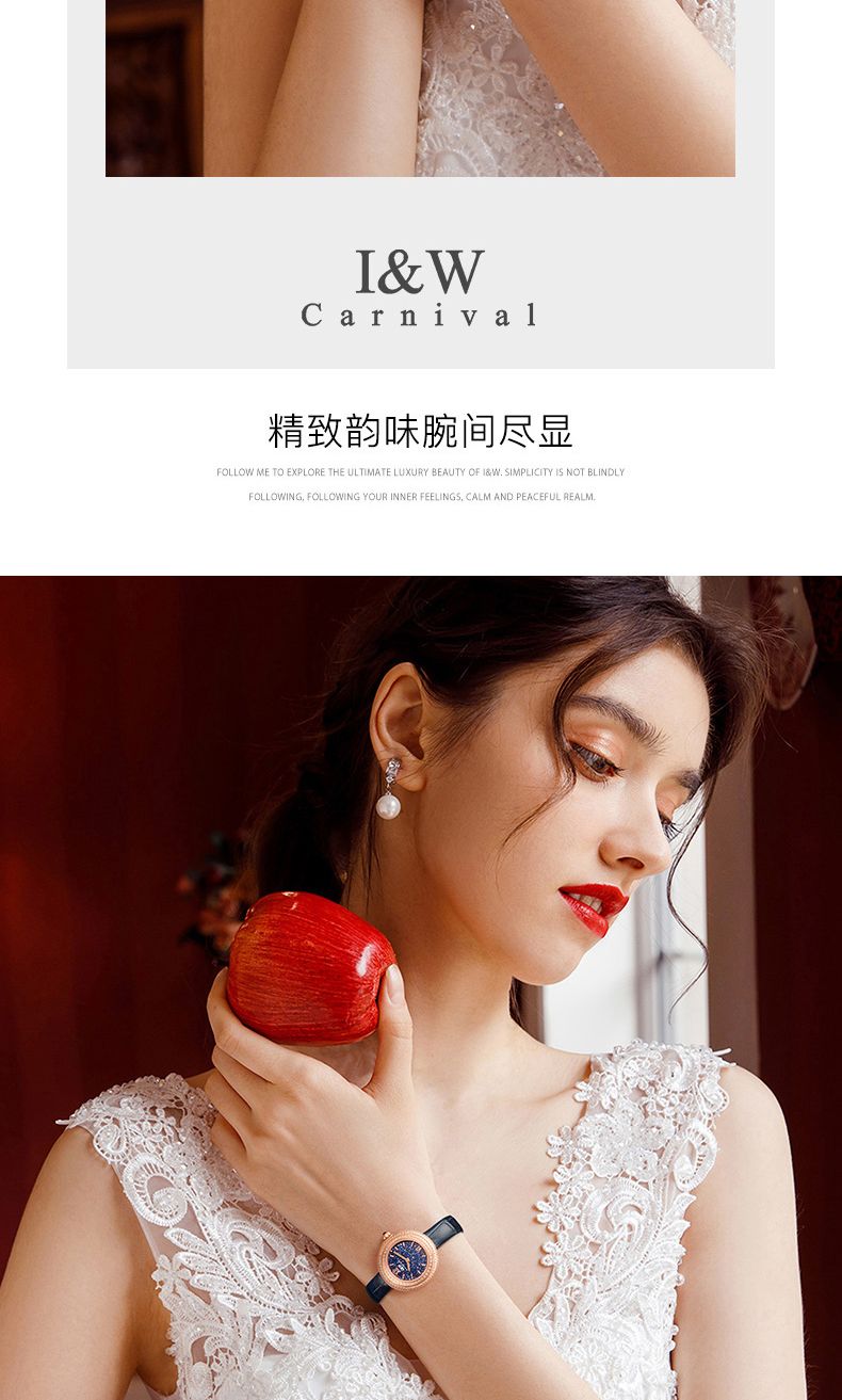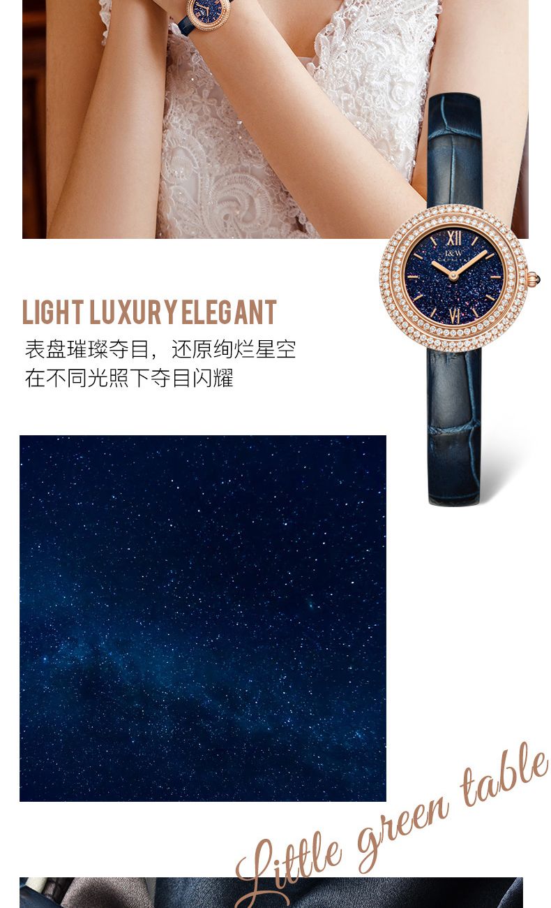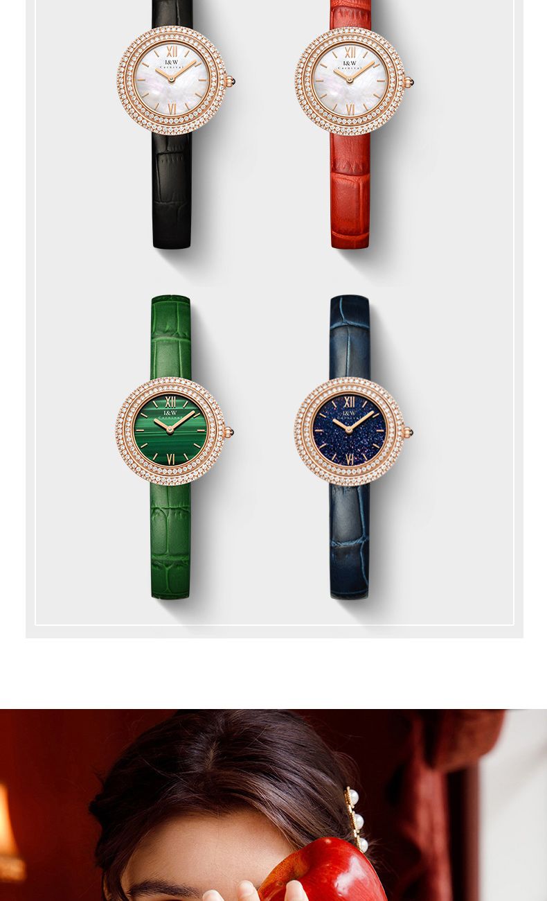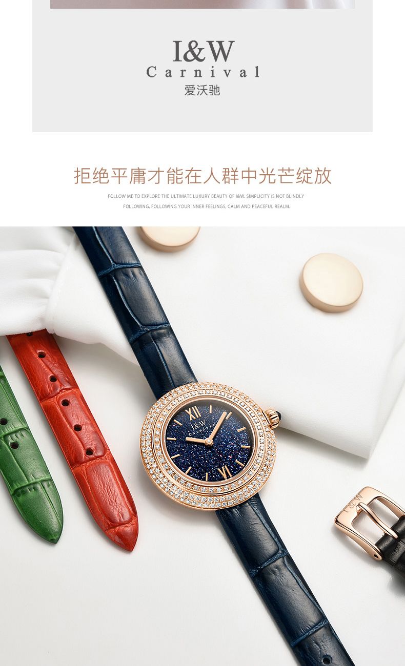 商品名称:瑞士I&W爱沃驰手表女轻奢小众女表时尚气质女手表IW3008L黑皮绿面、绿皮绿面、蓝皮星空面、黑皮白面、红皮白面