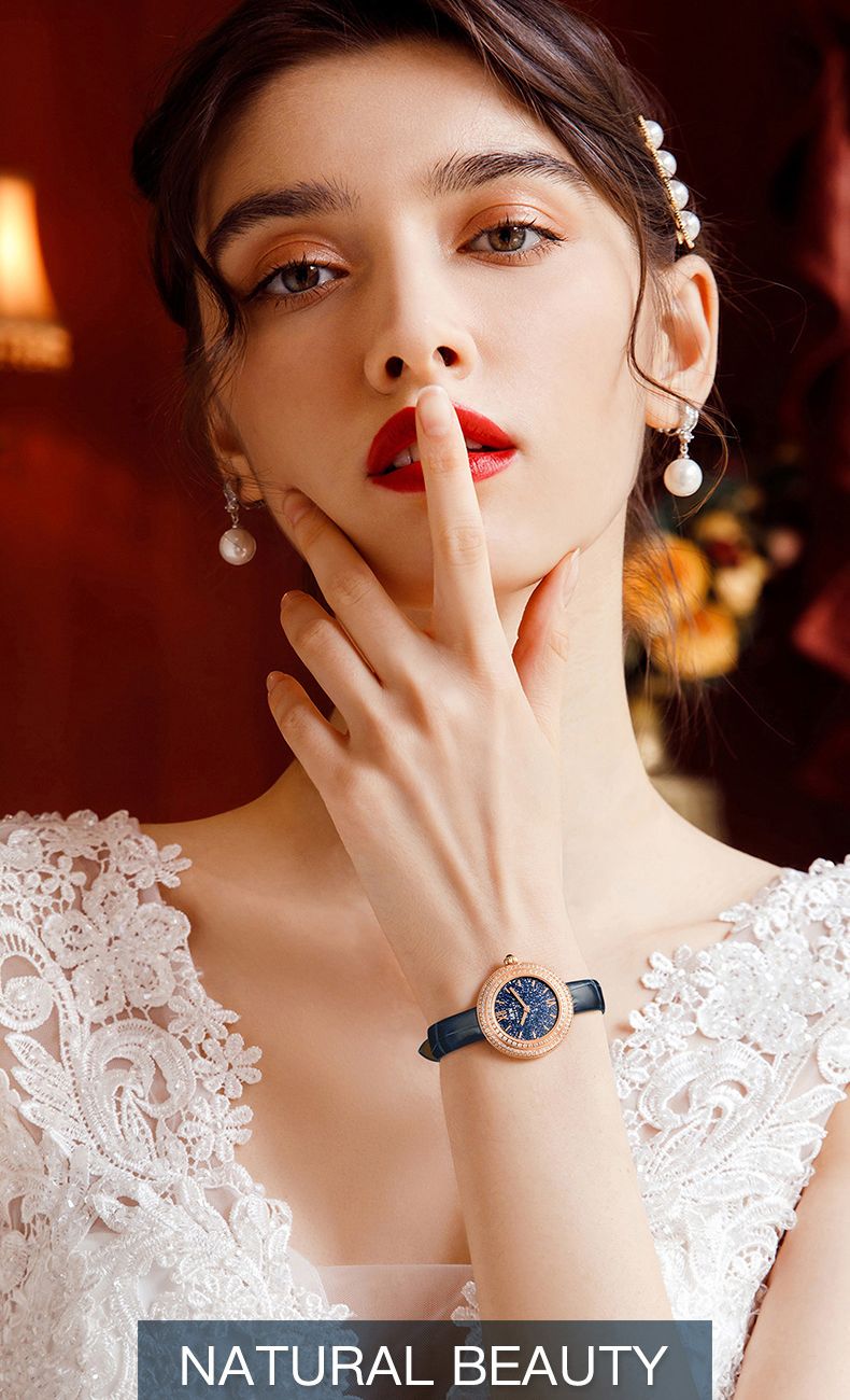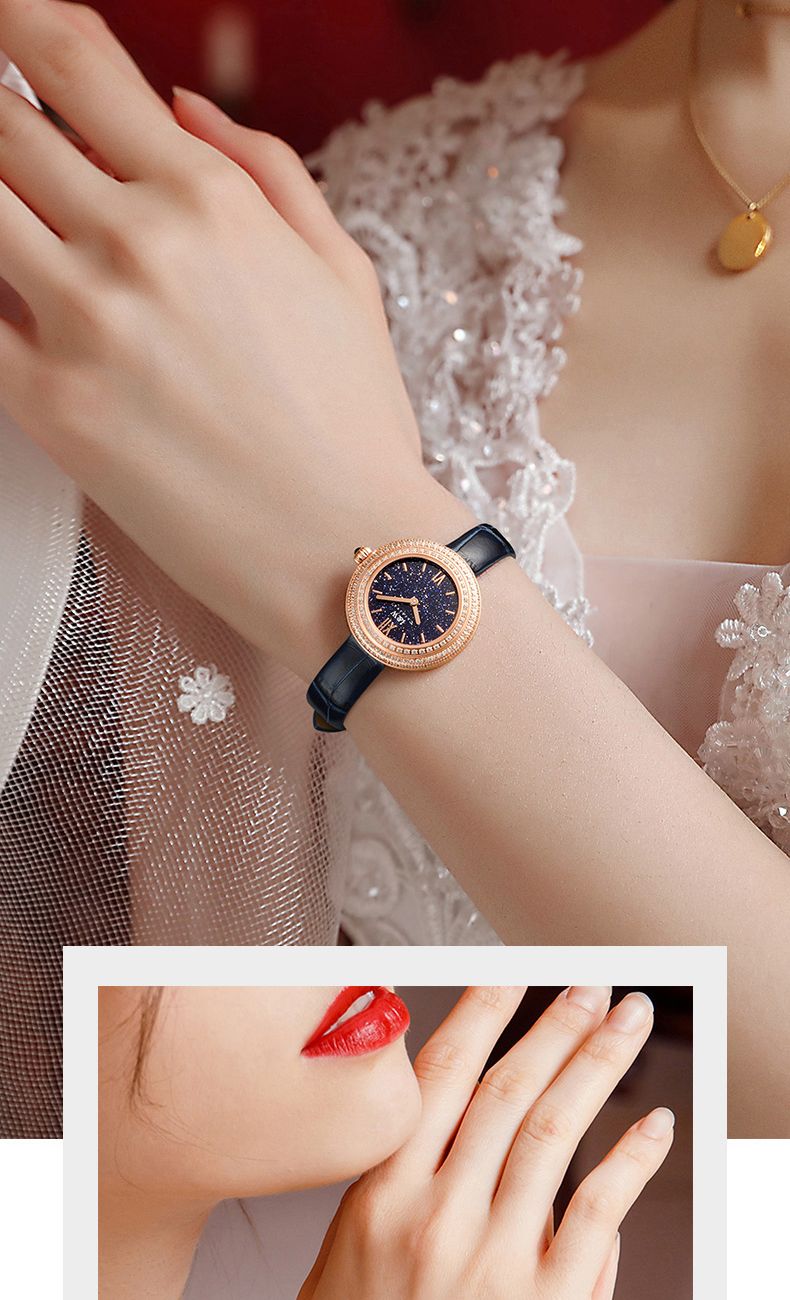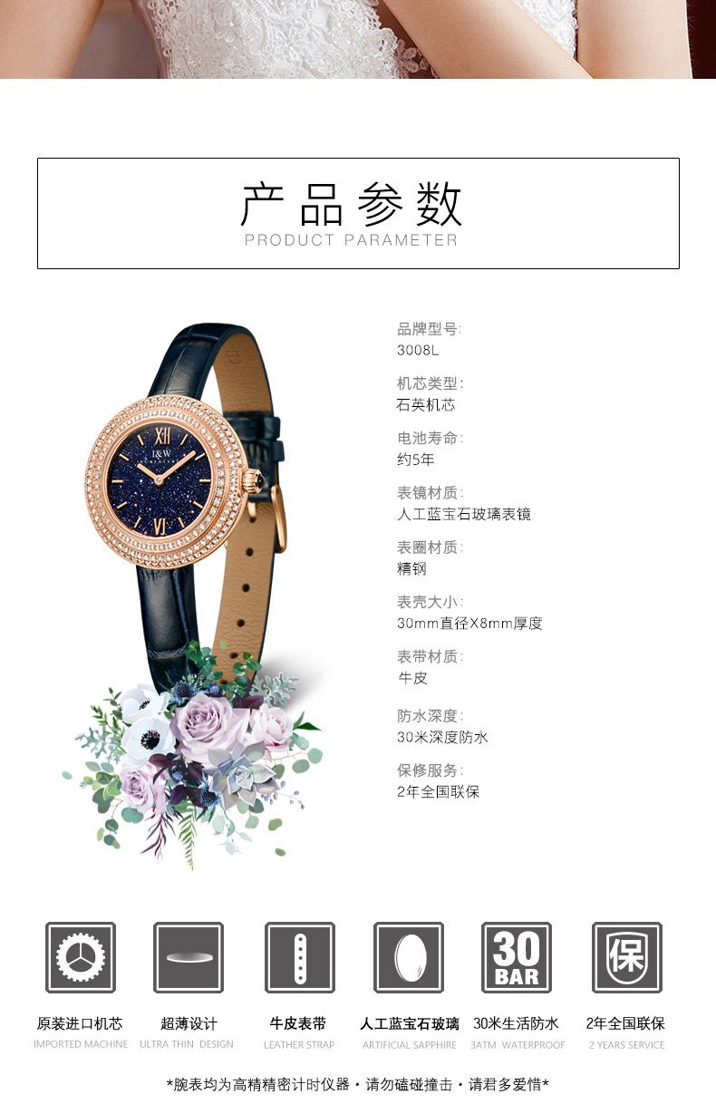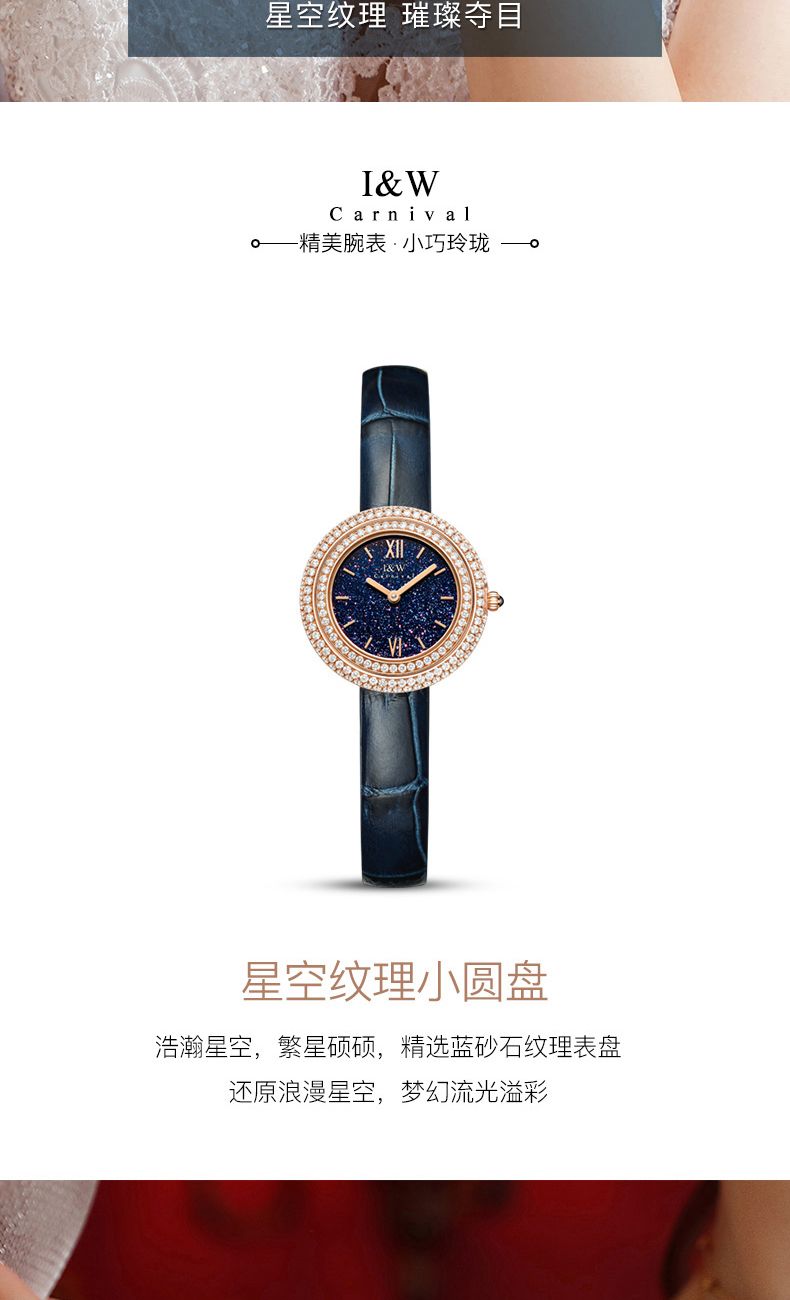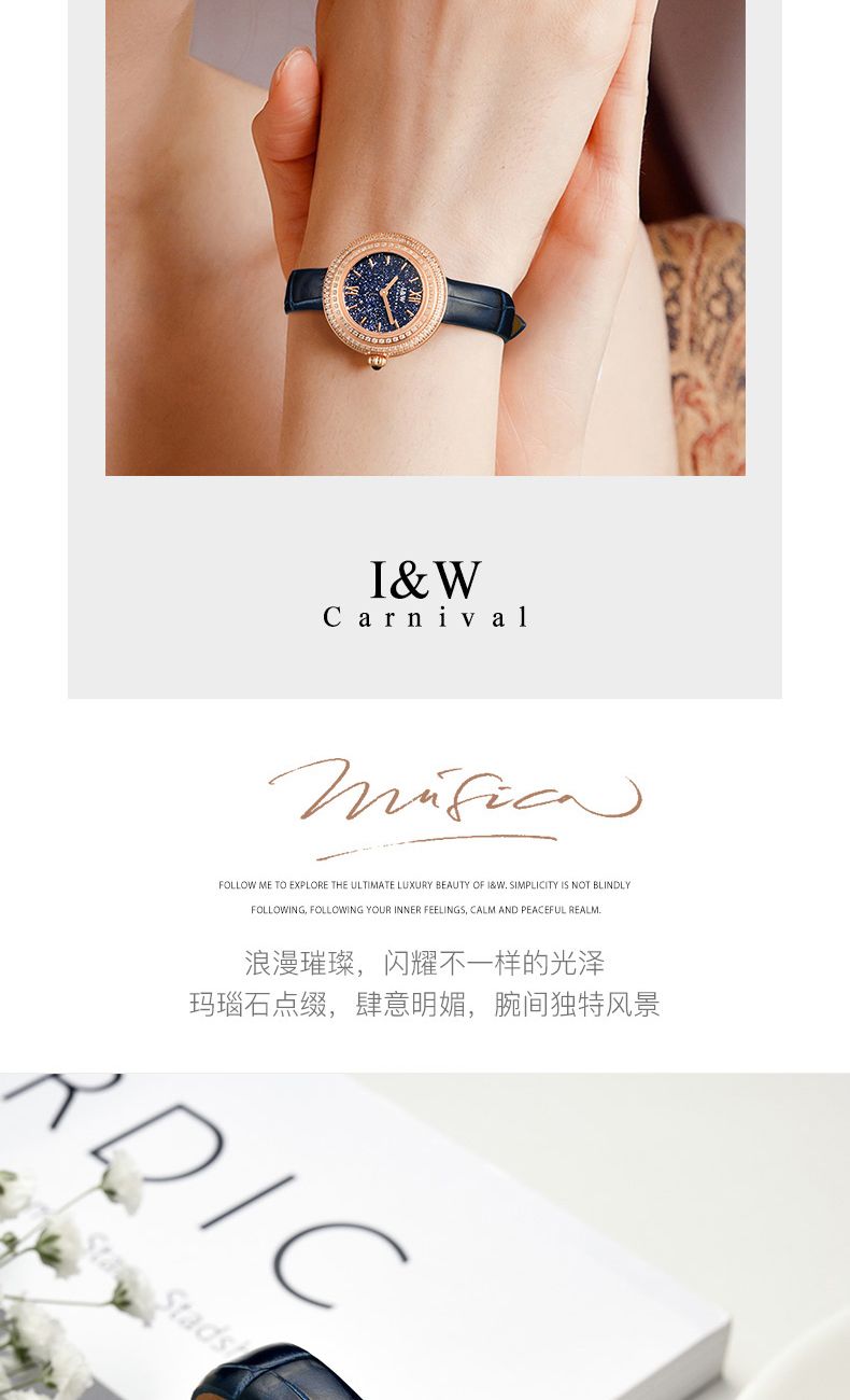 商品名称:瑞士I&W爱沃驰手表女轻奢小众女表时尚气质女手表IW3008L黑皮绿面、绿皮绿面、蓝皮星空面、黑皮白面、红皮白面