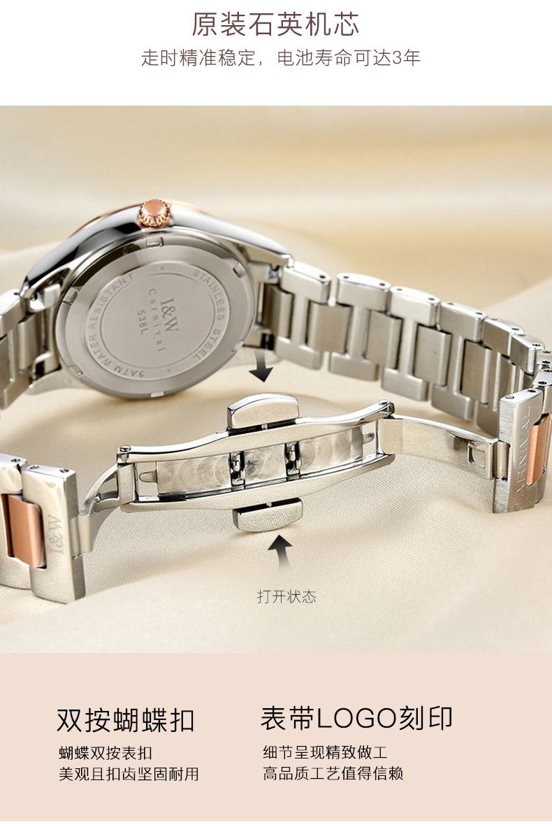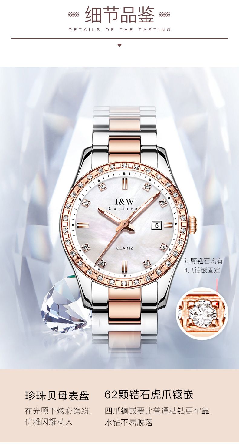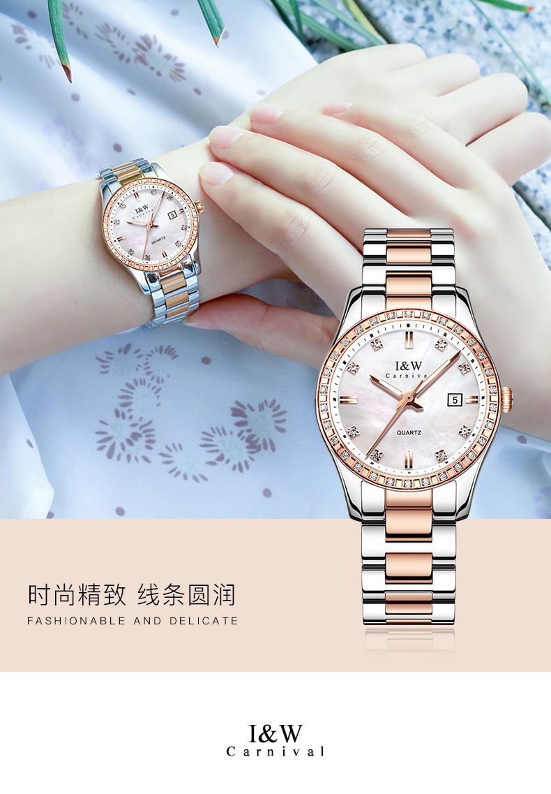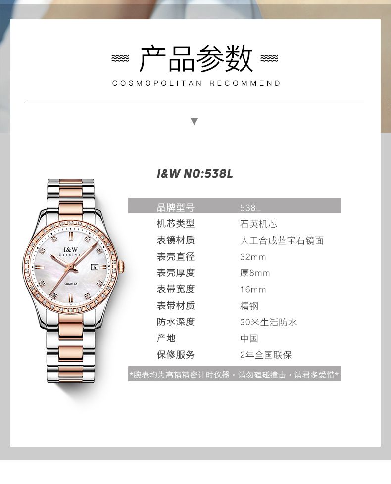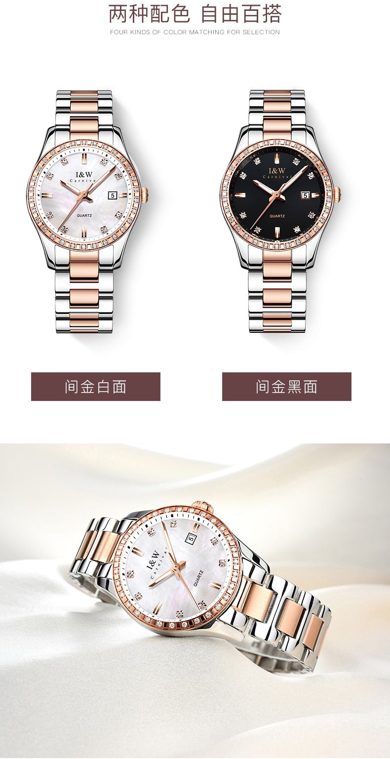 瑞士I&W爱沃驰华丽倾心系列石英表手表女款时尚腕表IW536L间玫钢带白面、间玫钢带黑面