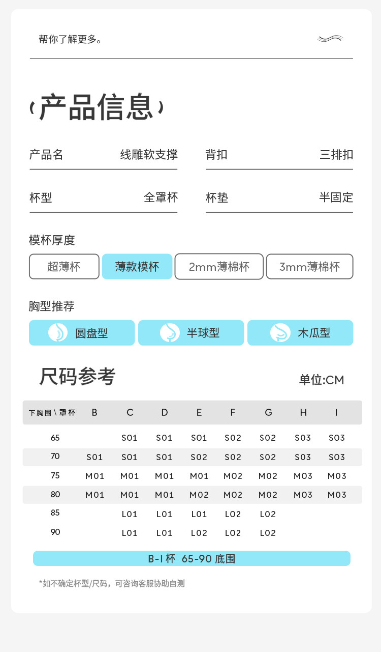 | 尺码 | 上胸围(cm) | 下胸围(cm) | 号型 |