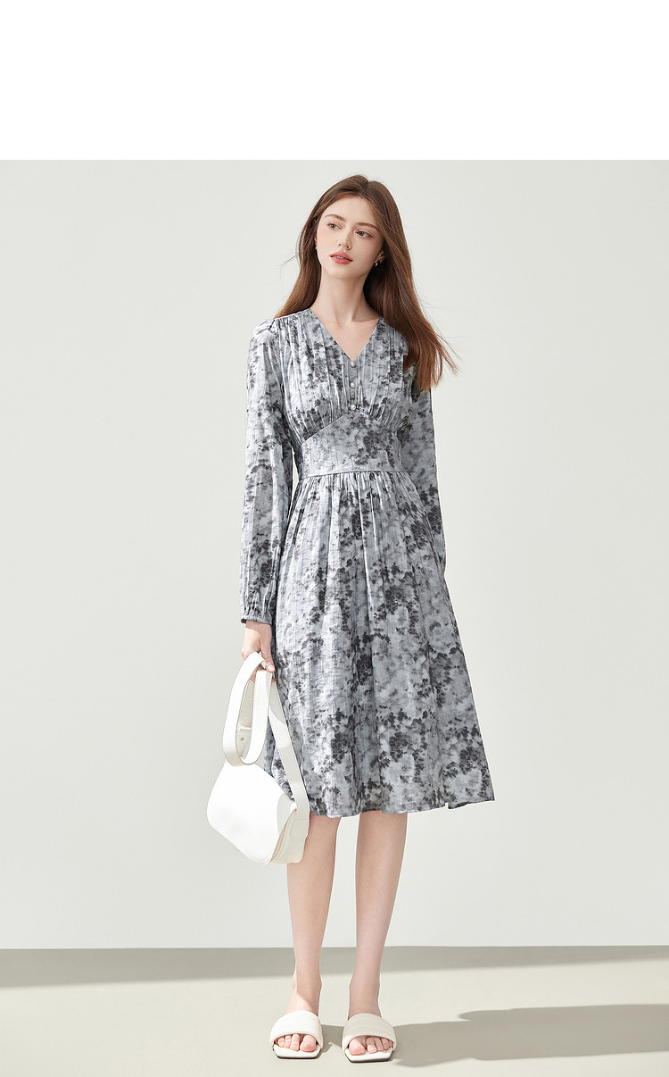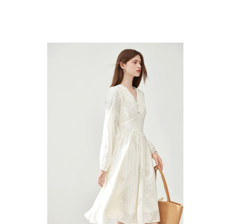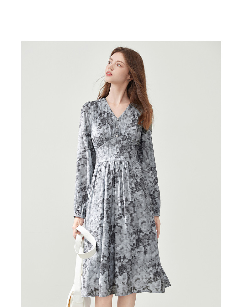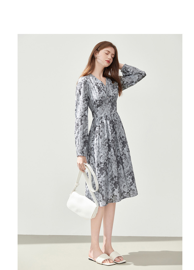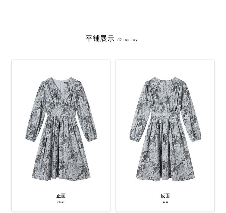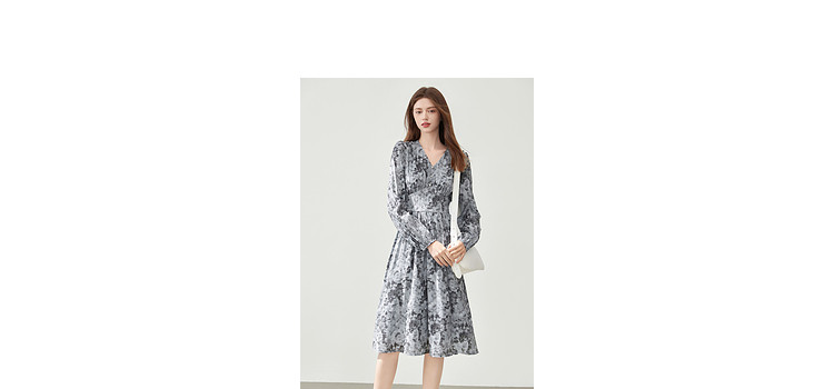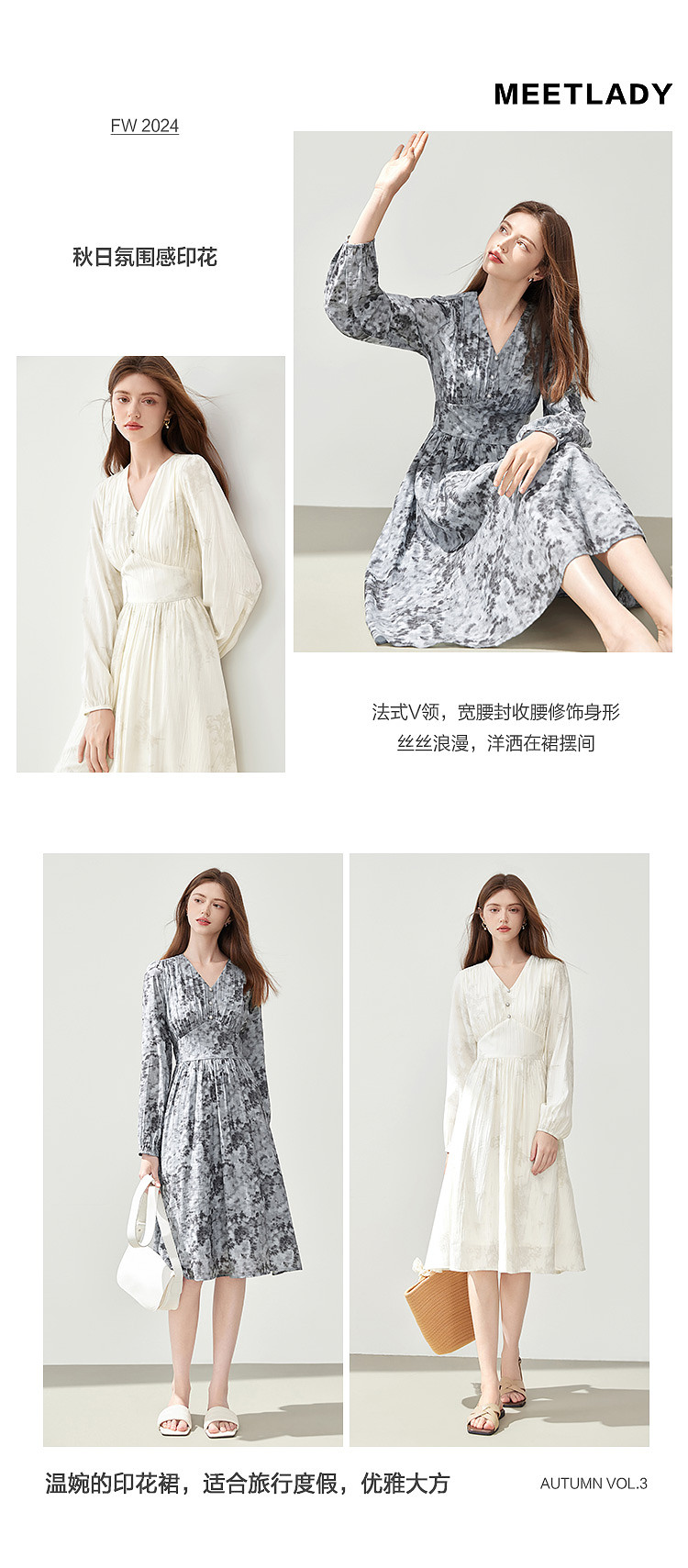 商品名称:【2024秋装】法式碎花V领长袖连衣裙女收腰修身气质长裙 849812