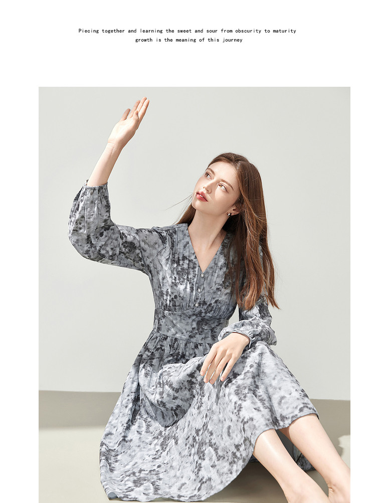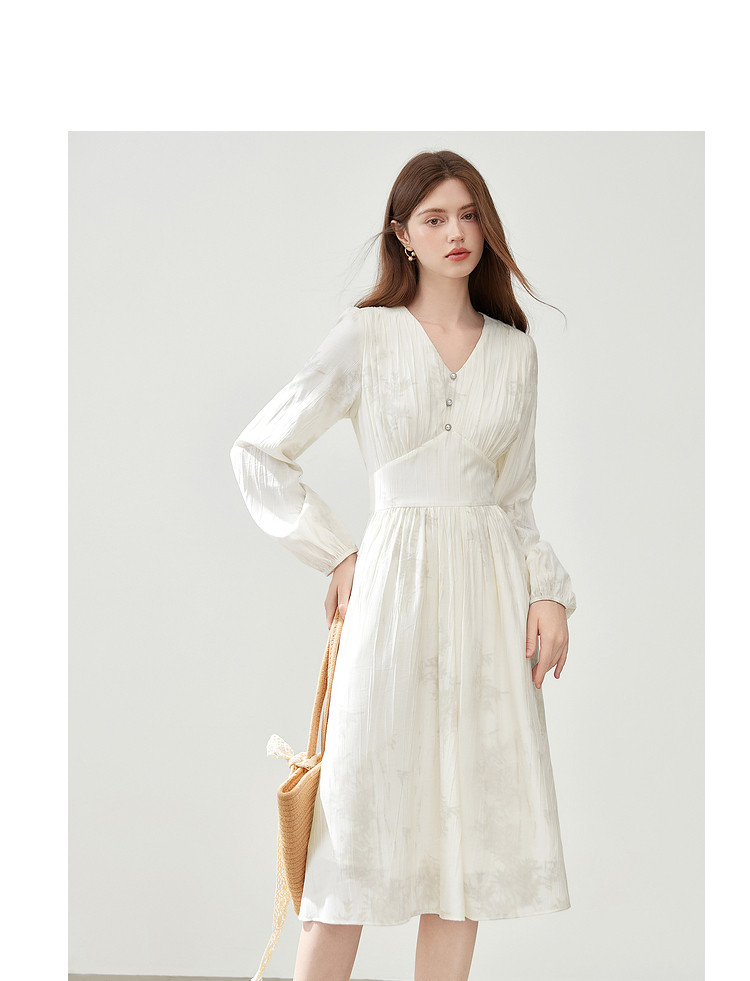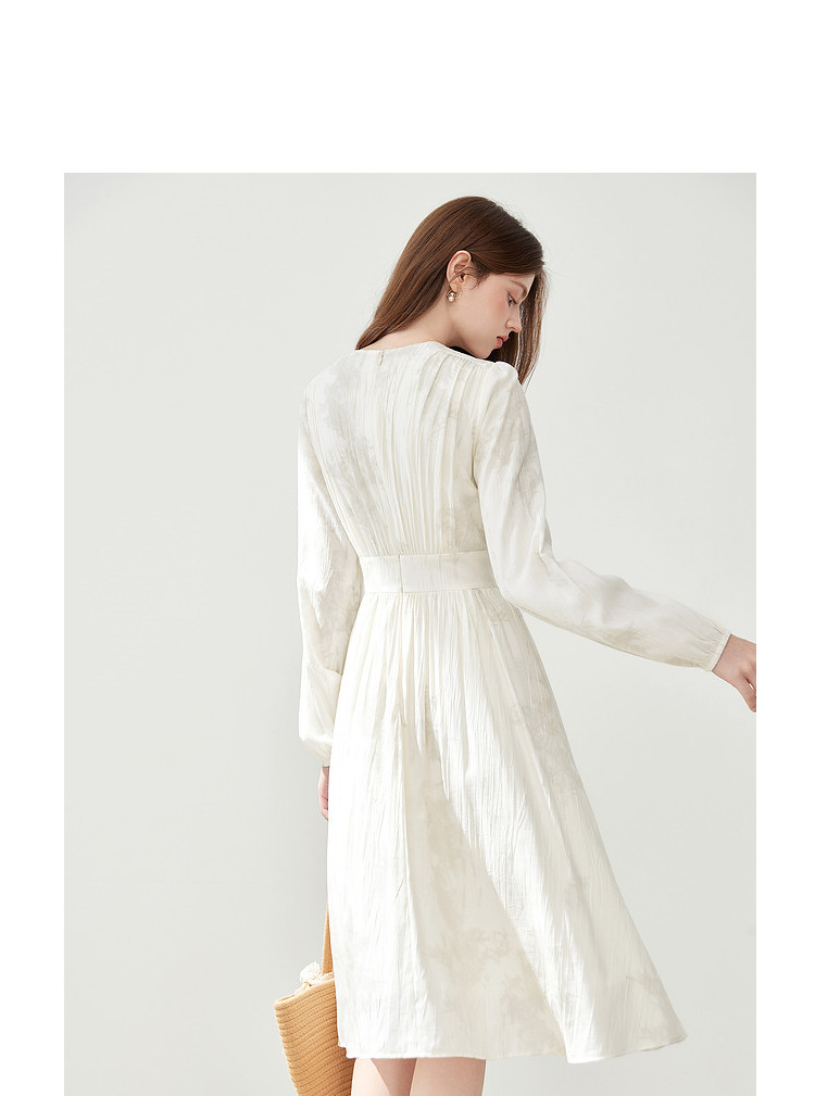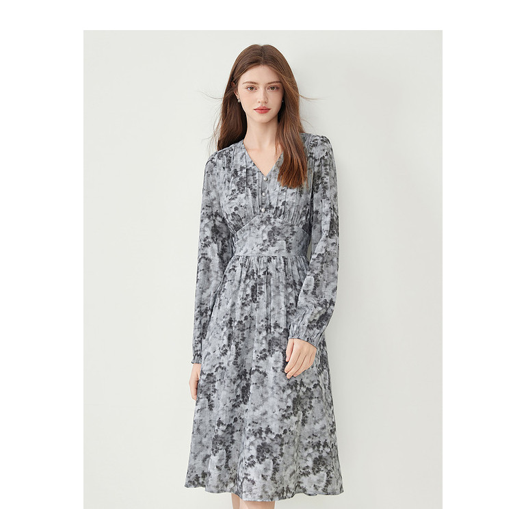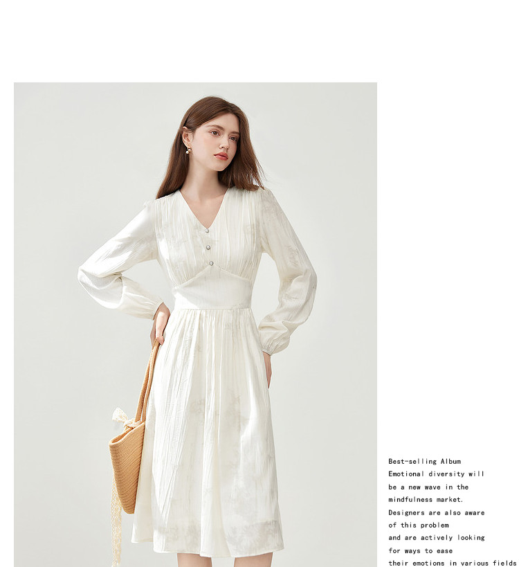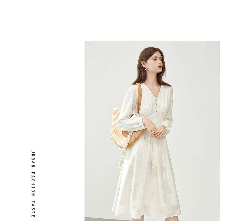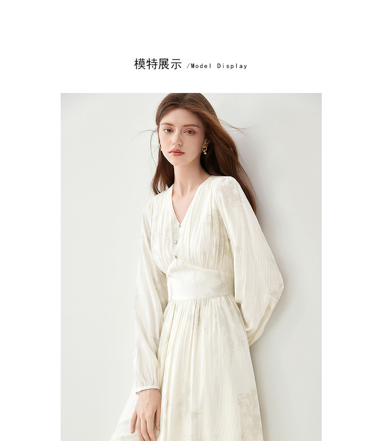 商品名称:【2024秋装】法式碎花V领长袖连衣裙女收腰修身气质长裙 849812