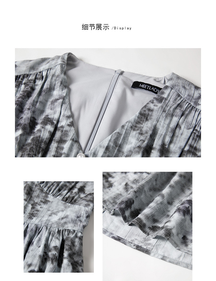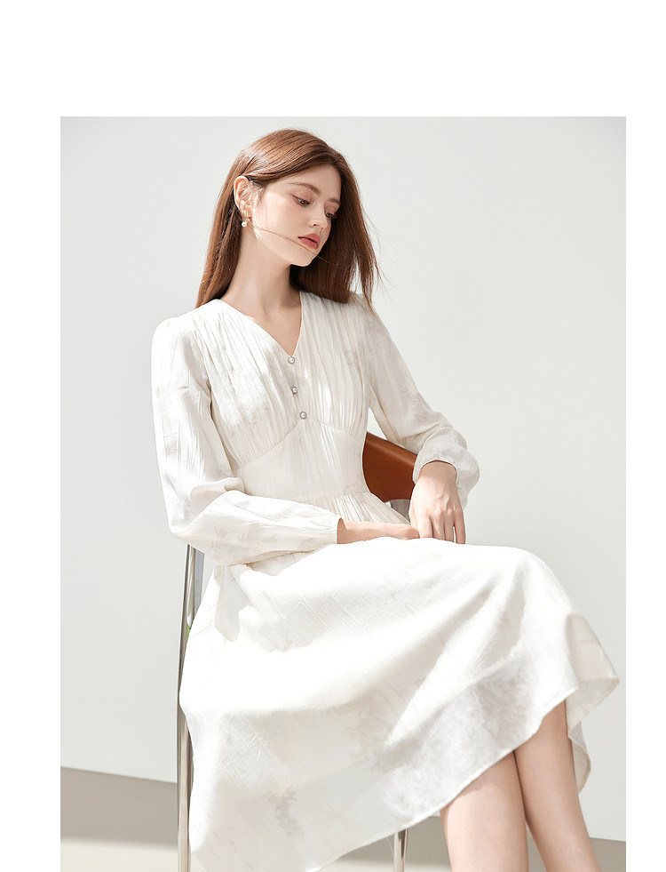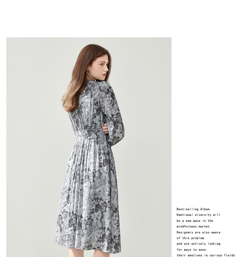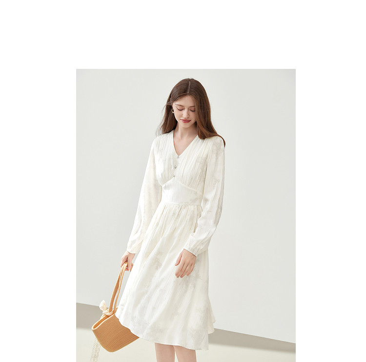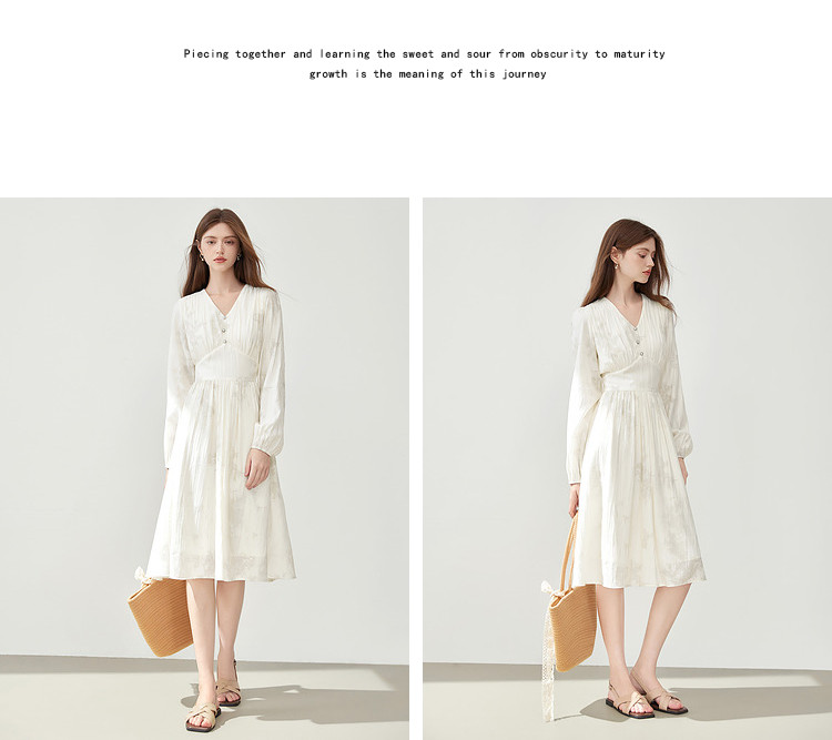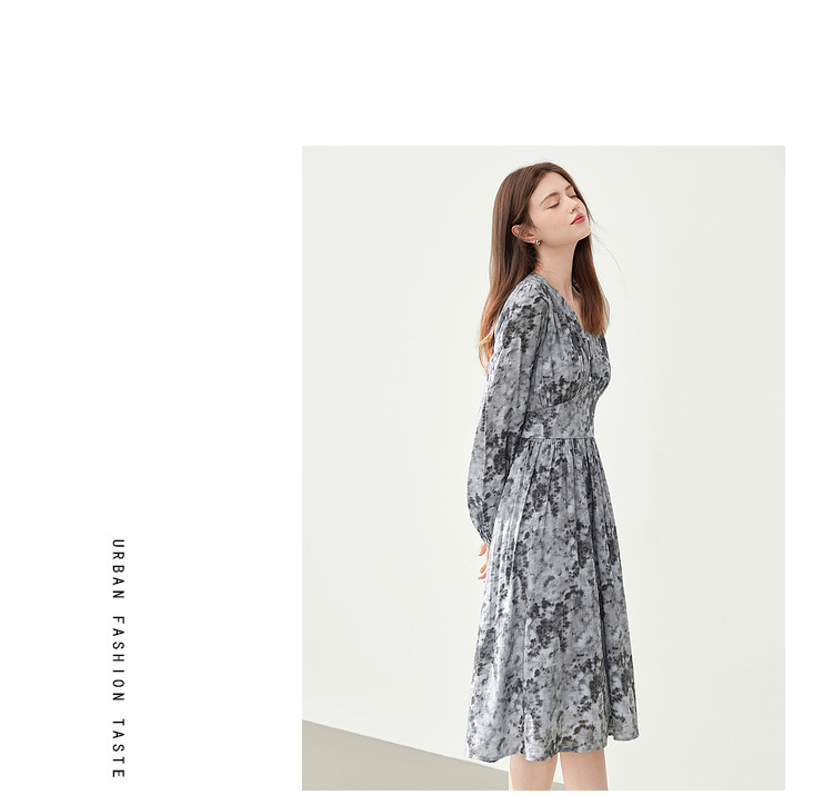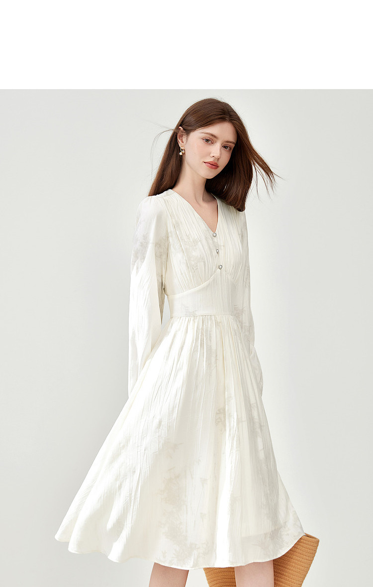 商品名称:【2024秋装】法式碎花V领长袖连衣裙女收腰修身气质长裙 849812