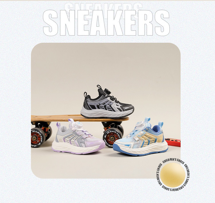 【春季热卖】潮流旋钮扣运动鞋男女童鞋舒适透气拼色休闲鞋网面鞋 642461