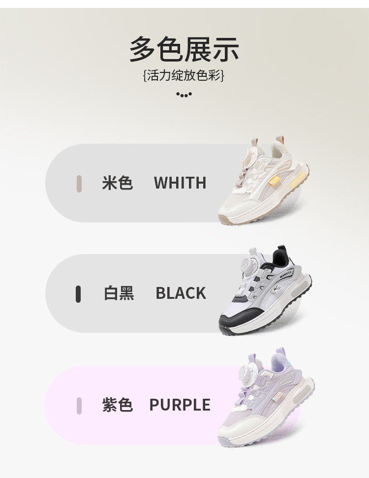 商品名称:【春季爆款】旋转纽扣儿童运动鞋舒适网面透气跑步鞋时尚童鞋 427805