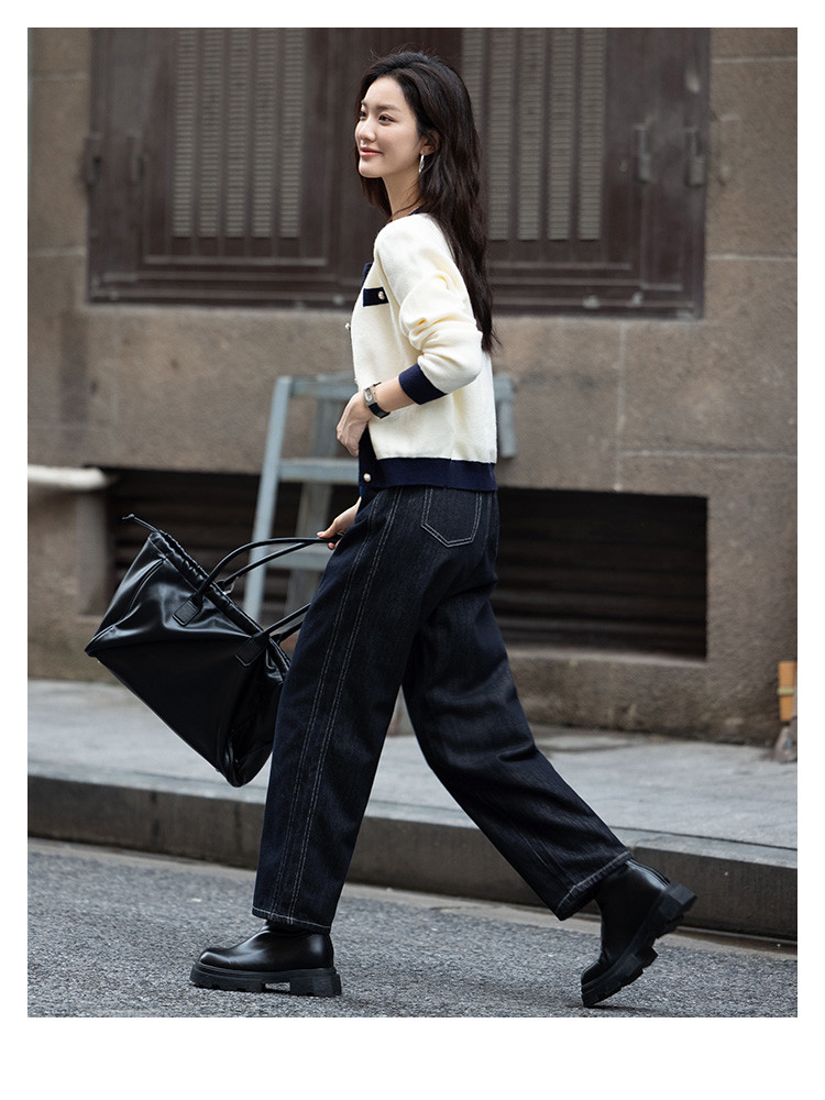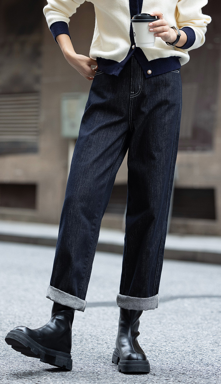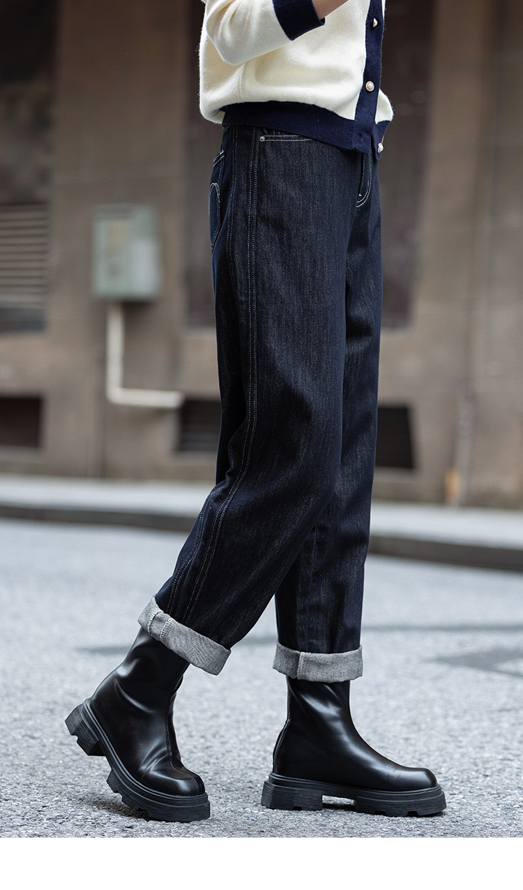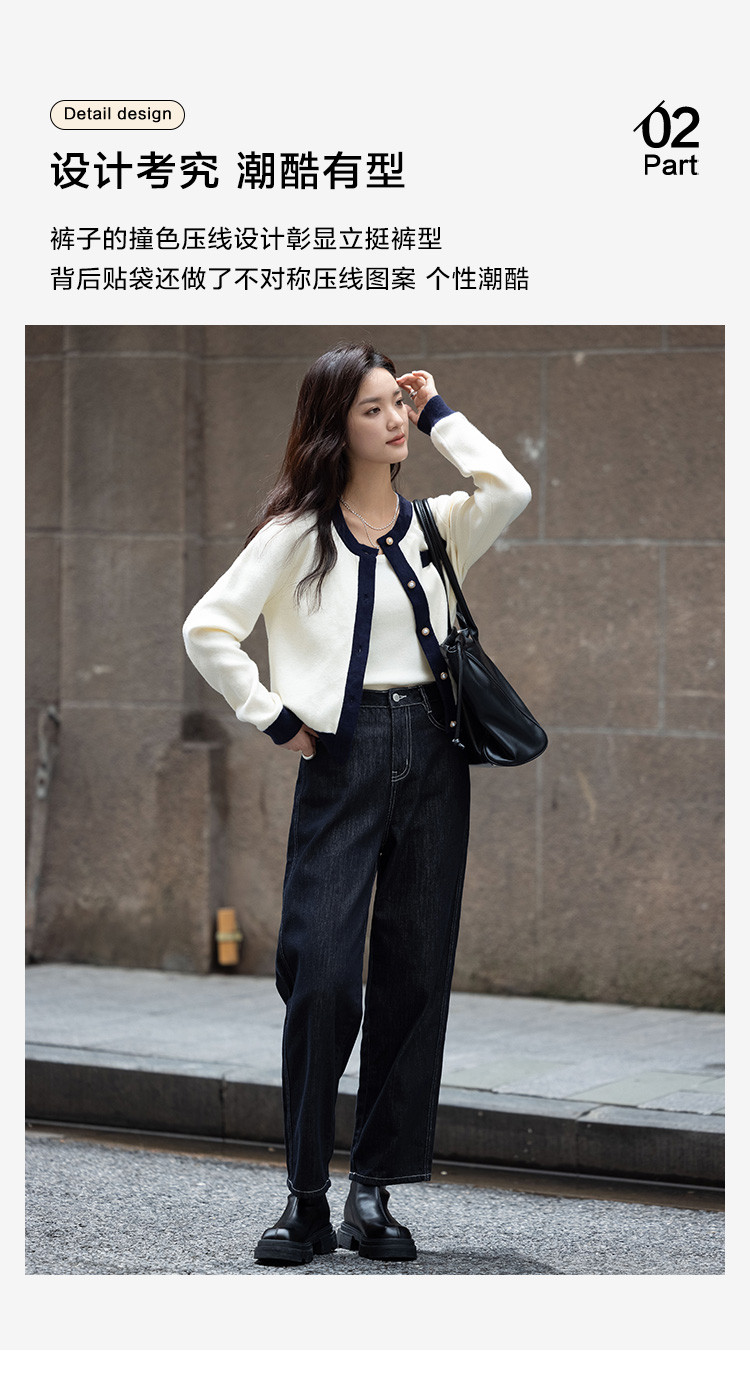 【烟管裤版型牛仔裤】秋利落舒适挺括显瘦显腿直休闲风 071298
