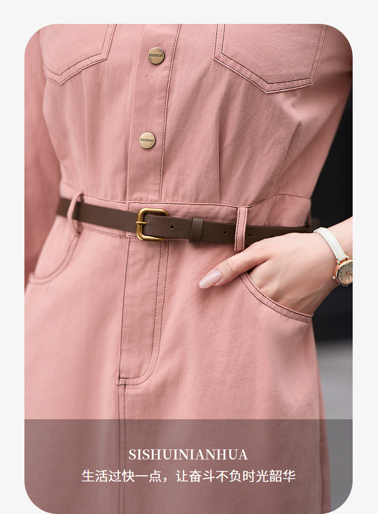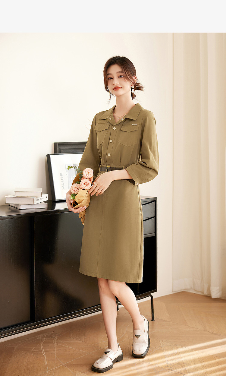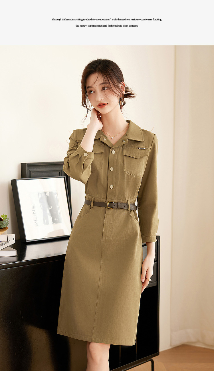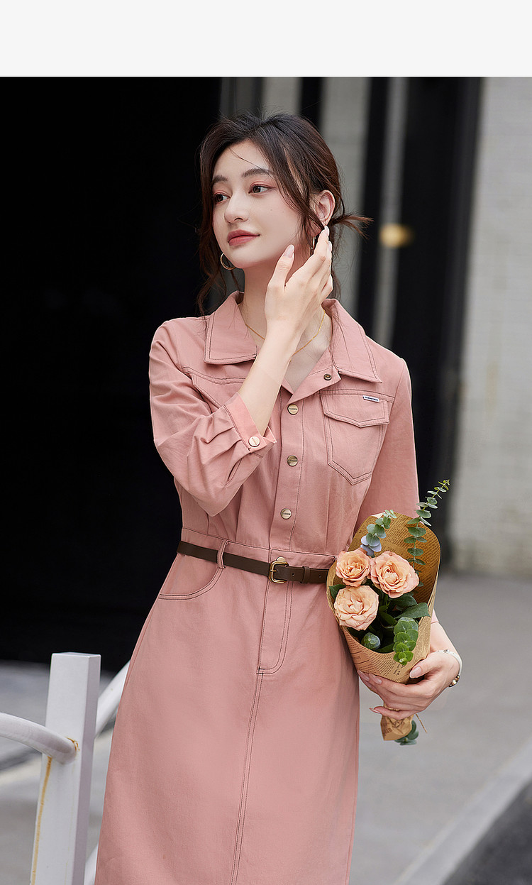 商品名称:修身气质高级感衬衫领高腰显瘦设计感中长款连衣裙 916952