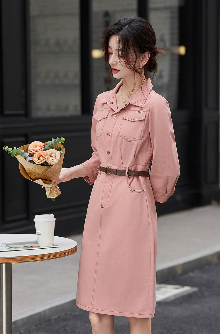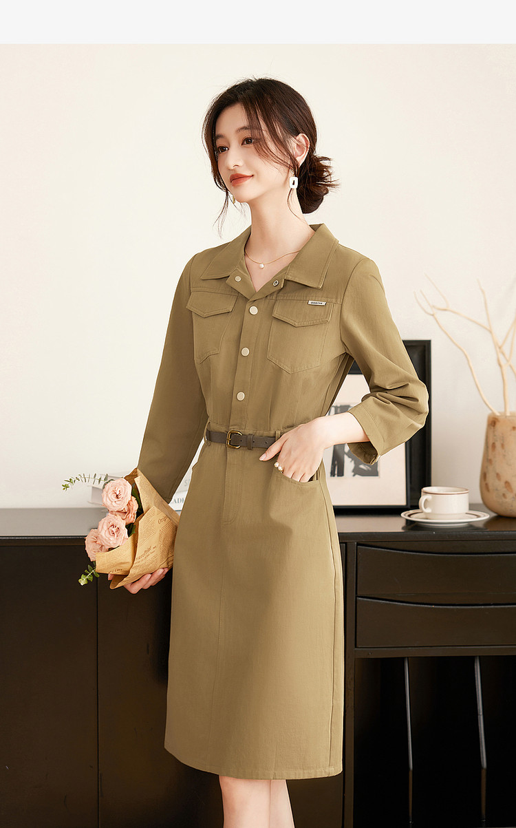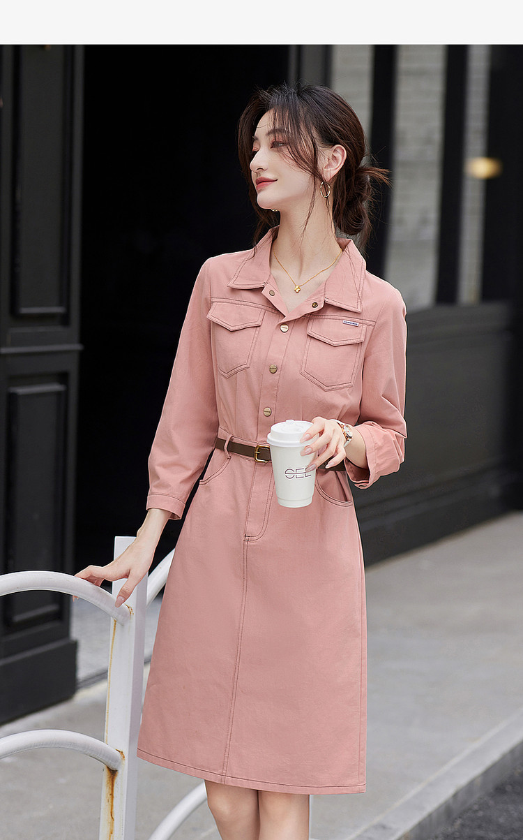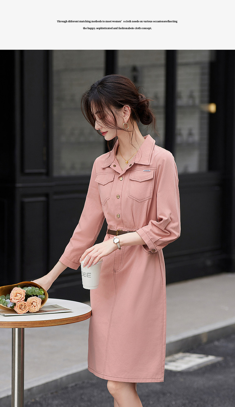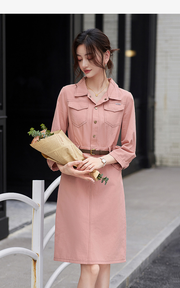 商品名称:修身气质高级感衬衫领高腰显瘦设计感中长款连衣裙 916952