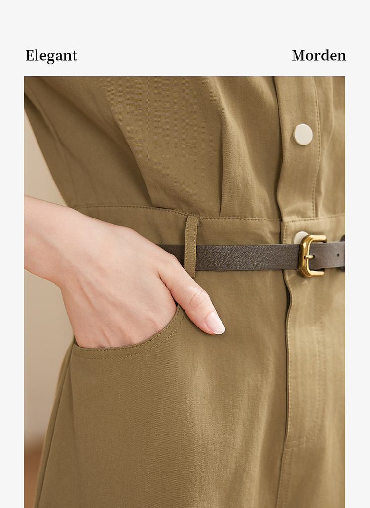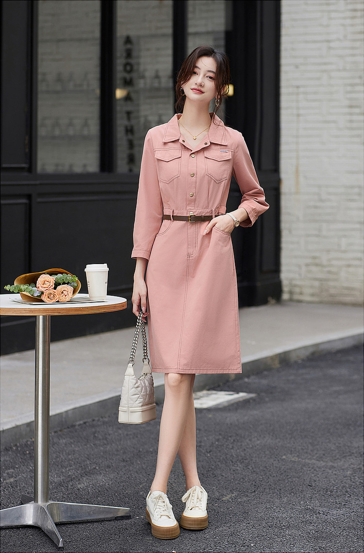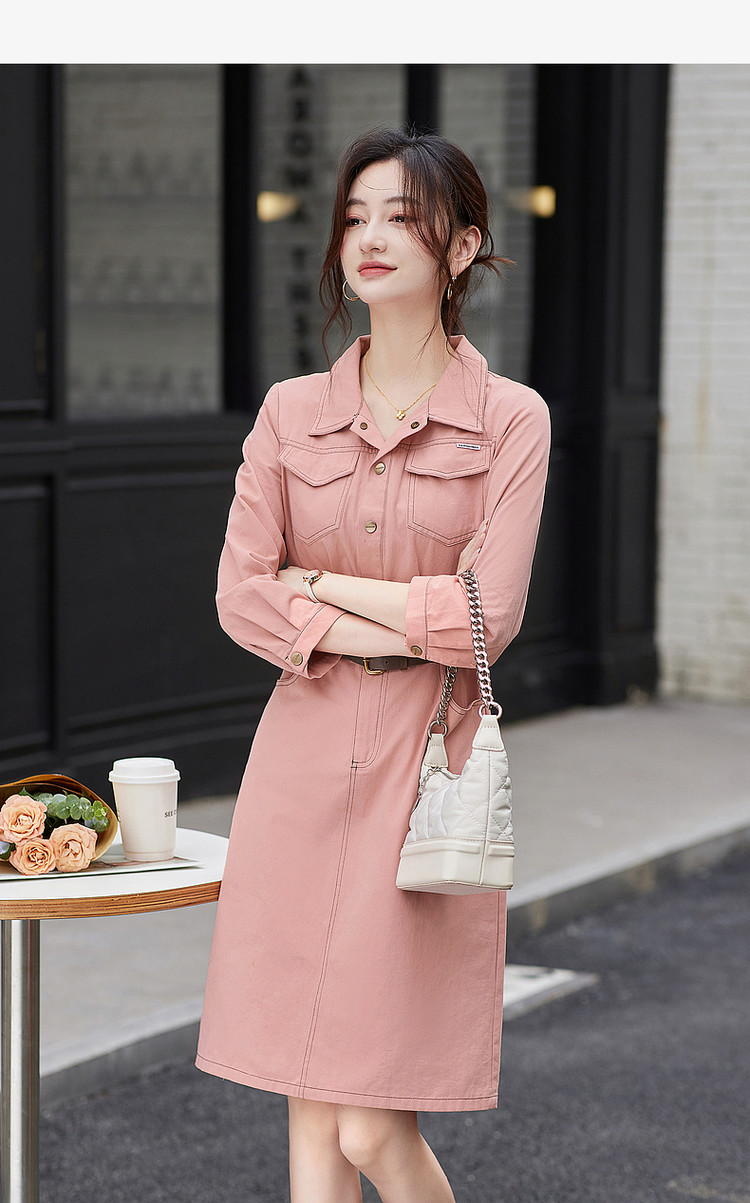 修身气质高级感衬衫领高腰显瘦设计感中长款连衣裙 916952