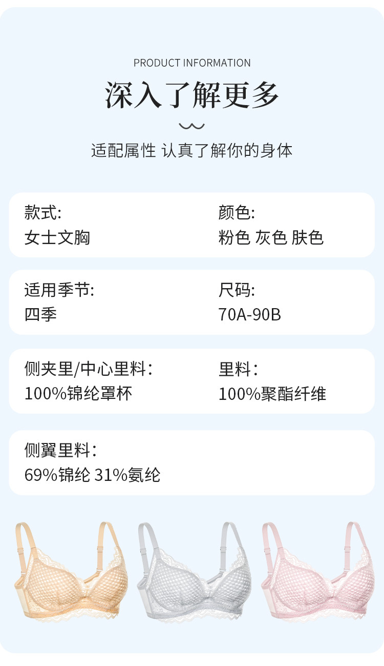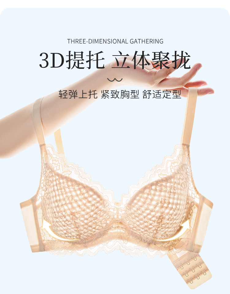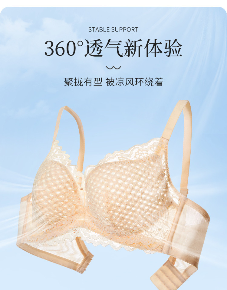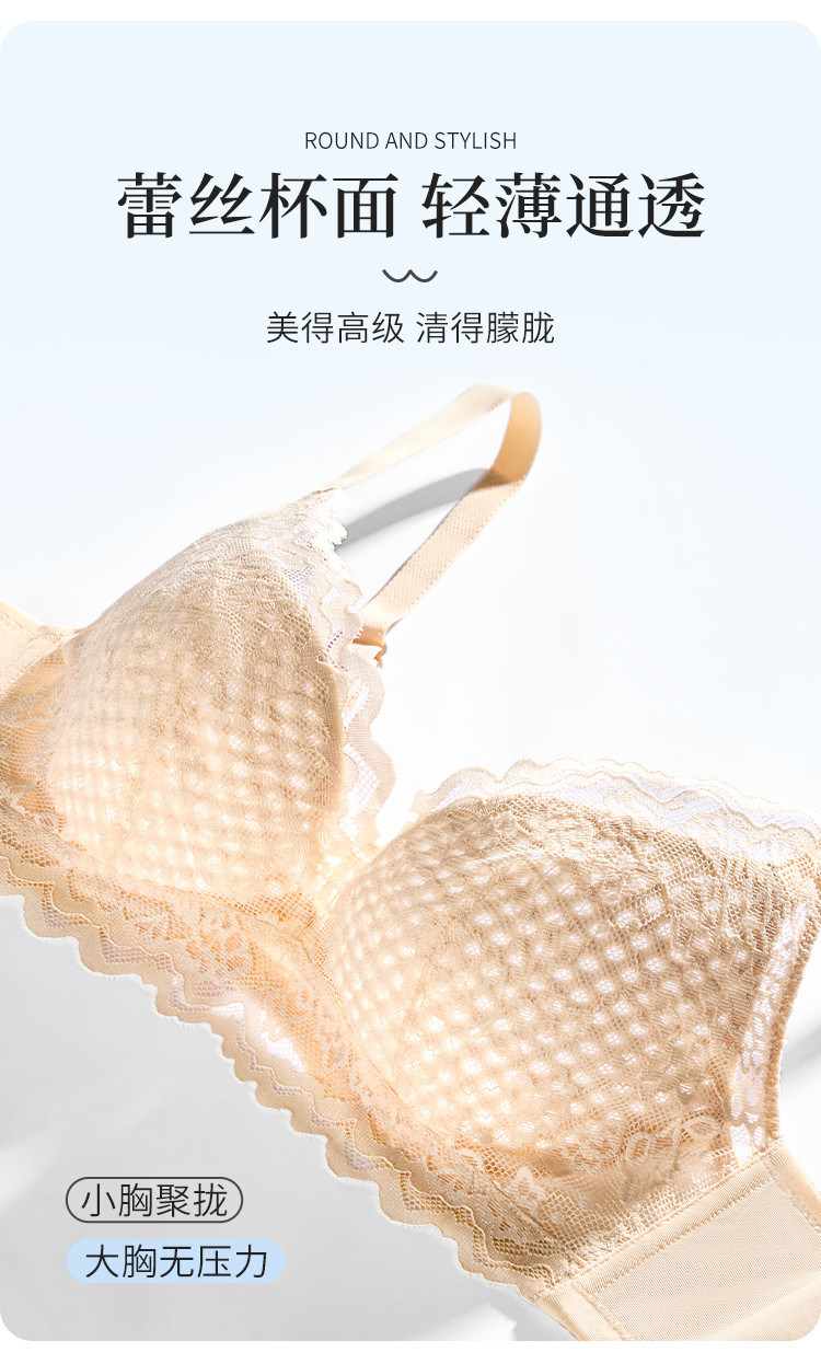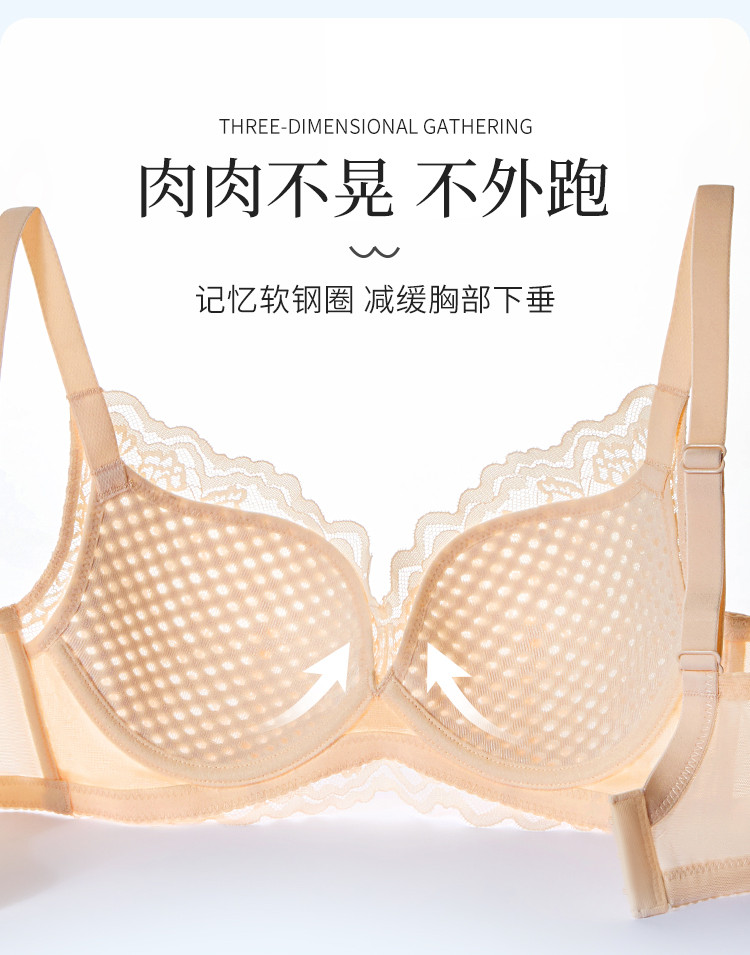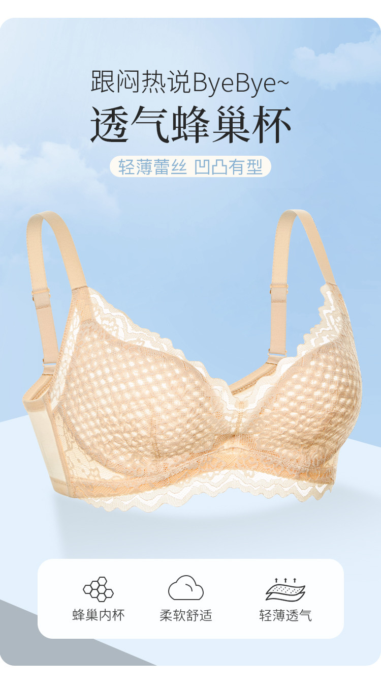 商品名称:【轻薄蜂巢杯 清爽舒适】大胸性感蕾丝聚拢文胸女舒适透气内衣女 598411