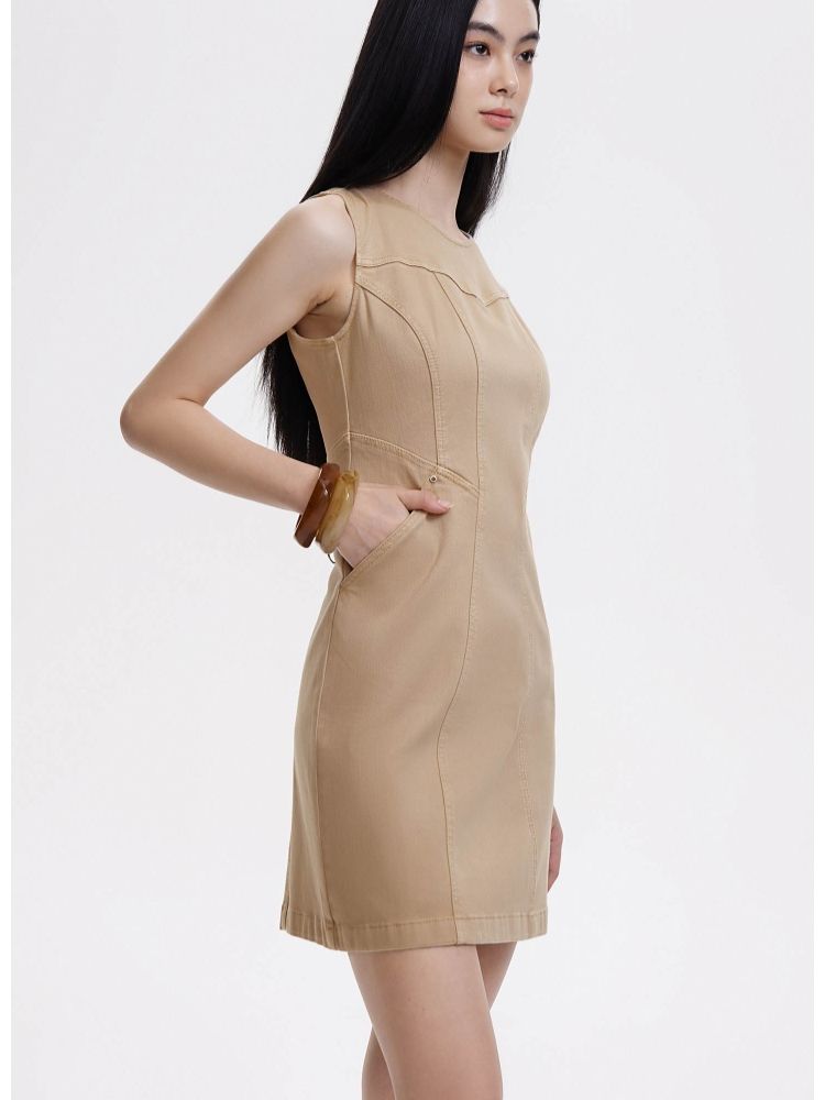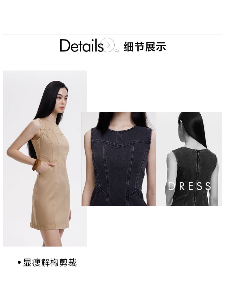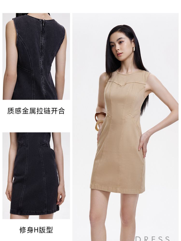 【显瘦解构裁剪】春季通勤气质圆领显瘦短裙牛仔连衣裙女 142490