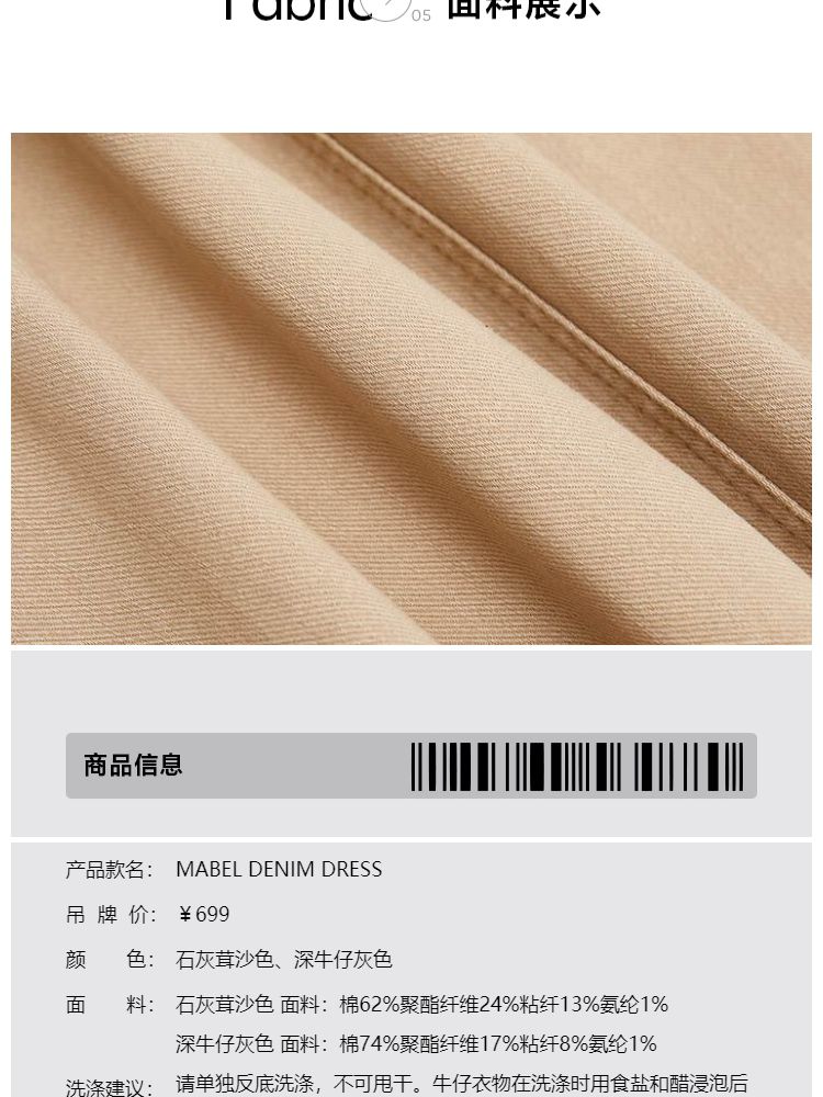商品名称:【显瘦解构裁剪】春季通勤气质圆领显瘦短裙牛仔连衣裙女 142490