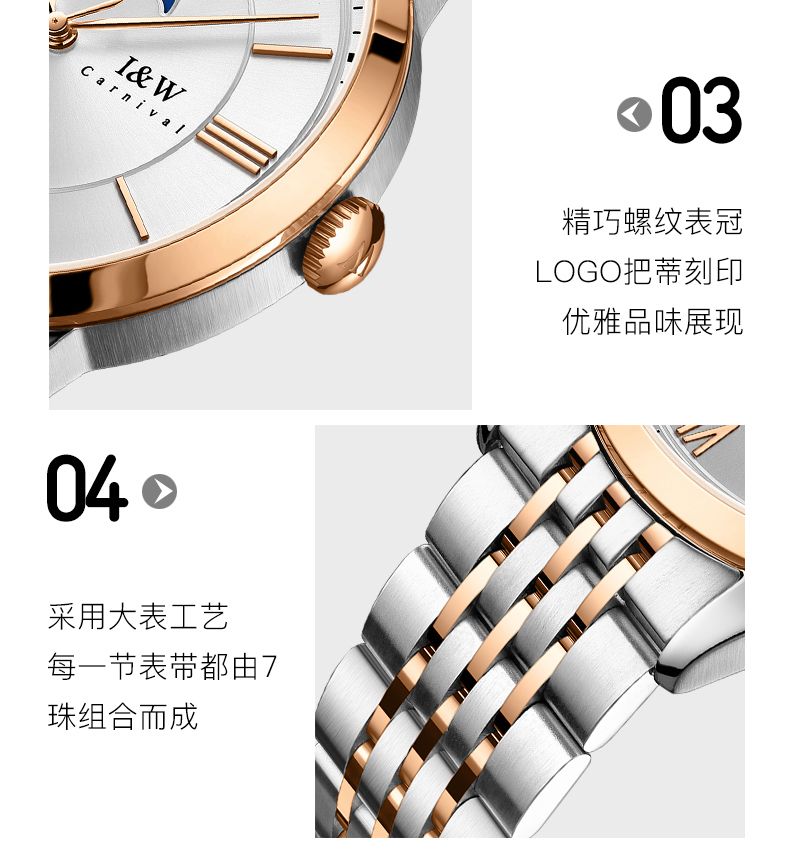 IW528G玫瑰金钢带白面