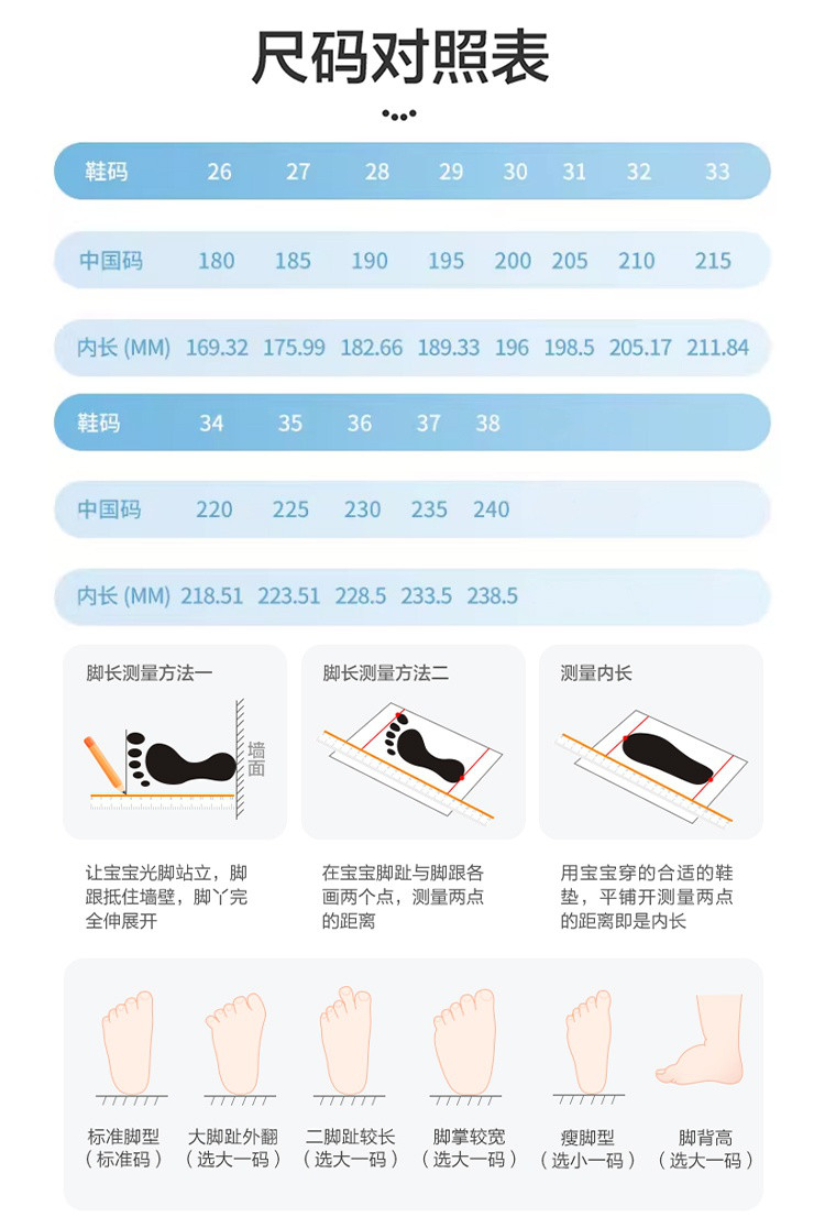 尺码 中国码 脚长(mm) 鞋内长(mm)