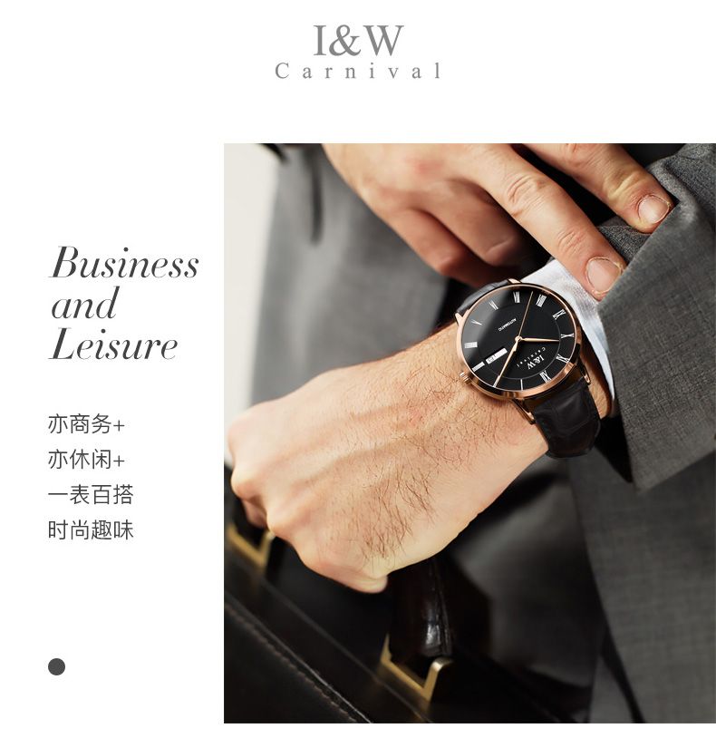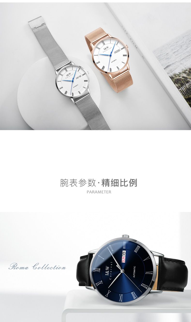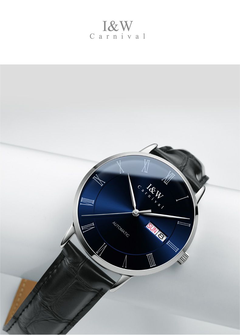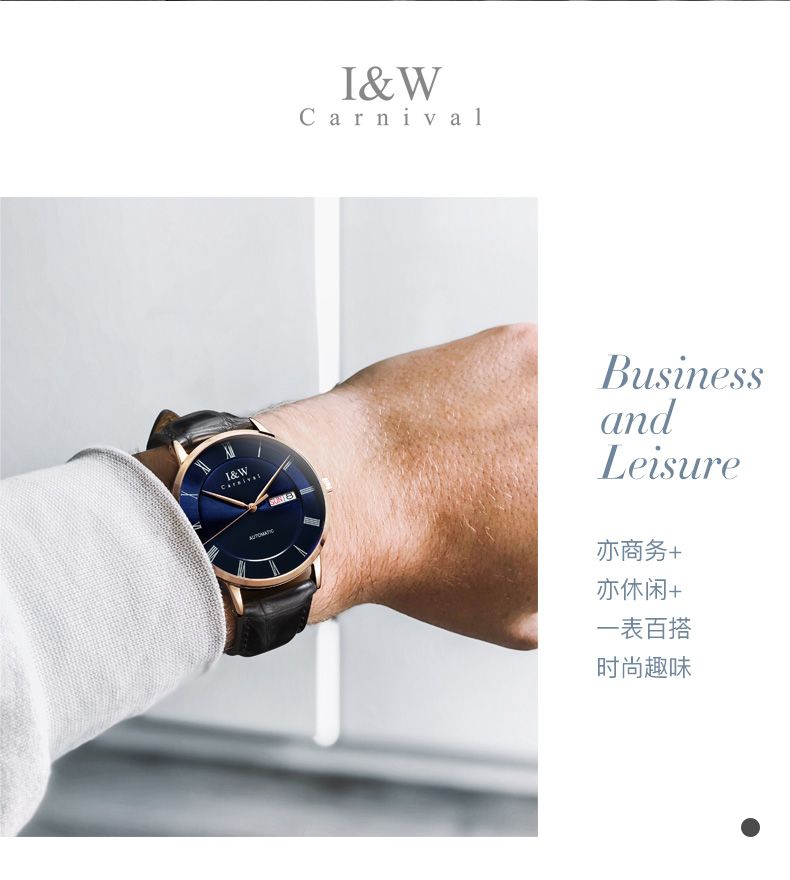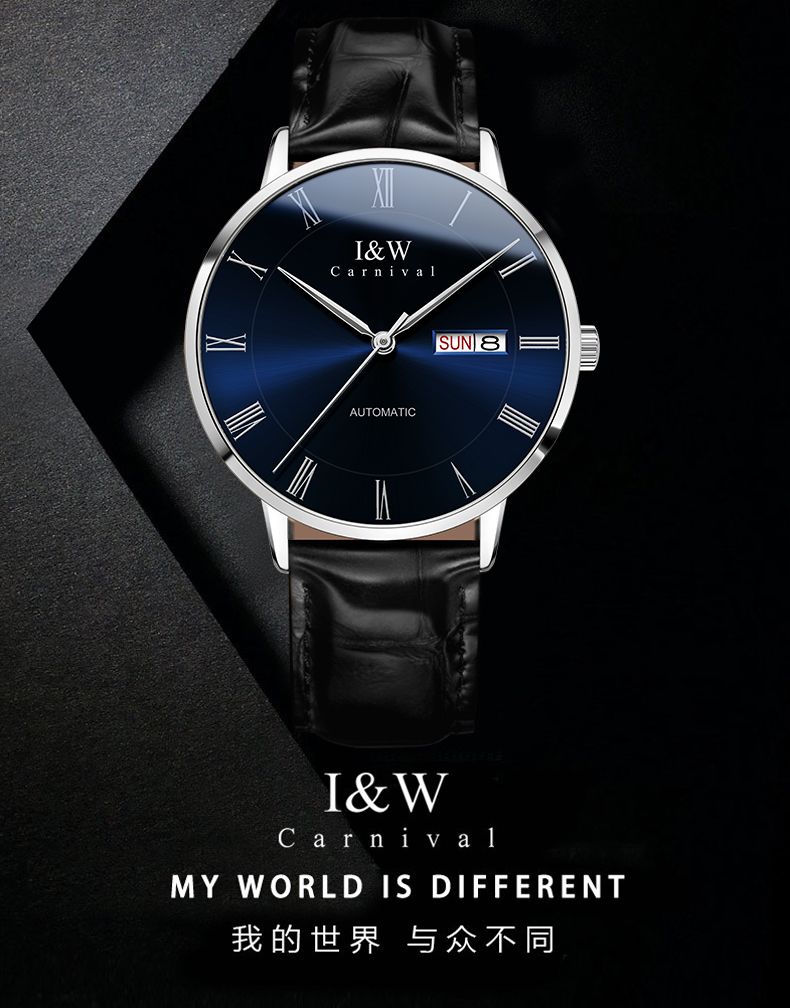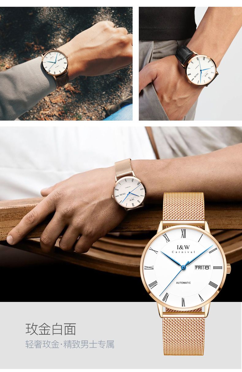 商品名称:I&W手表男士机械表全自动超薄进口机芯时尚简约商务罗马蓝宝石玻璃防水腕表IW8861G