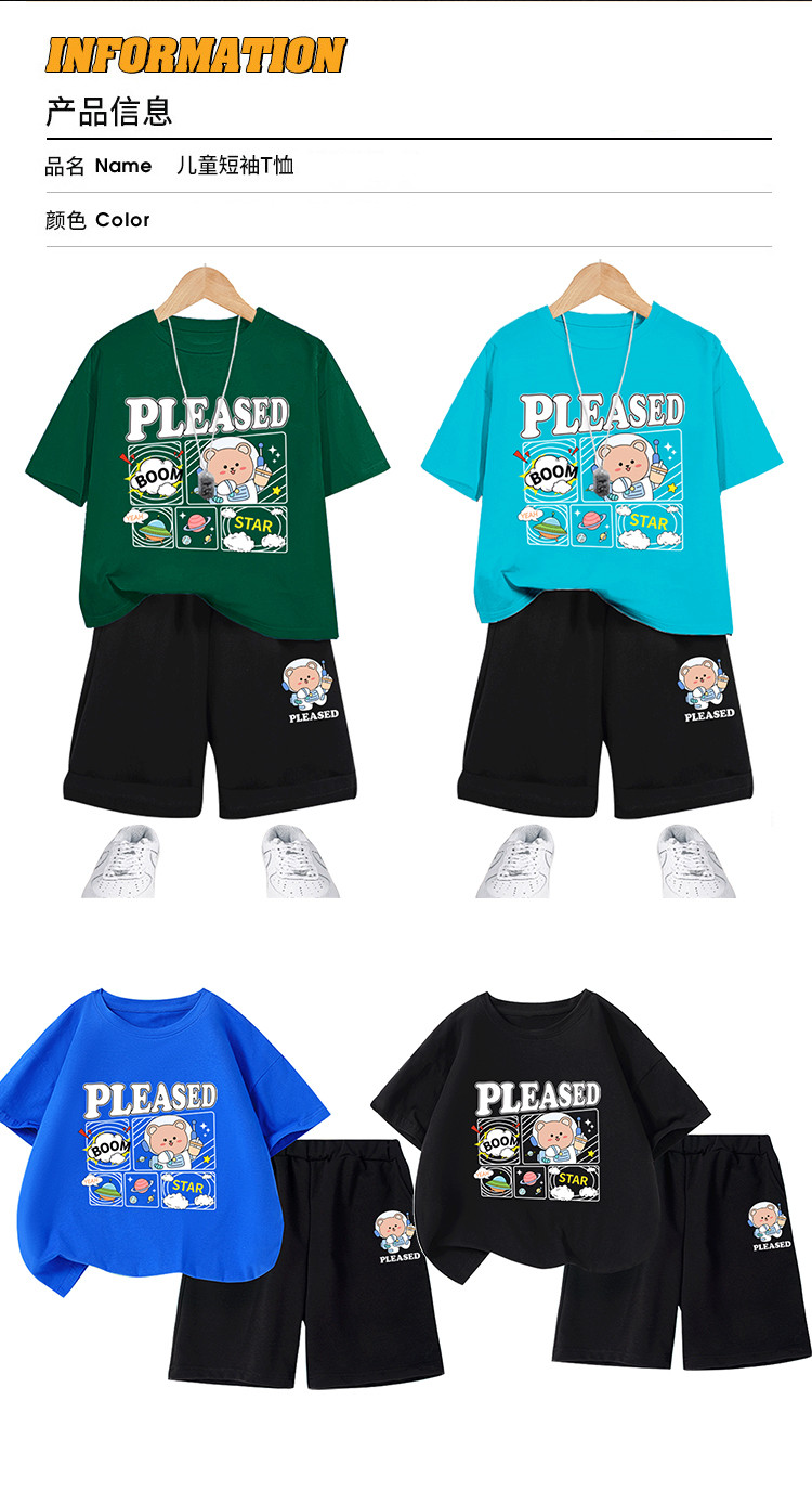 商品名称:儿童套装夏季男童潮流帅气透气百搭短袖短裤中大童两件套装 565135