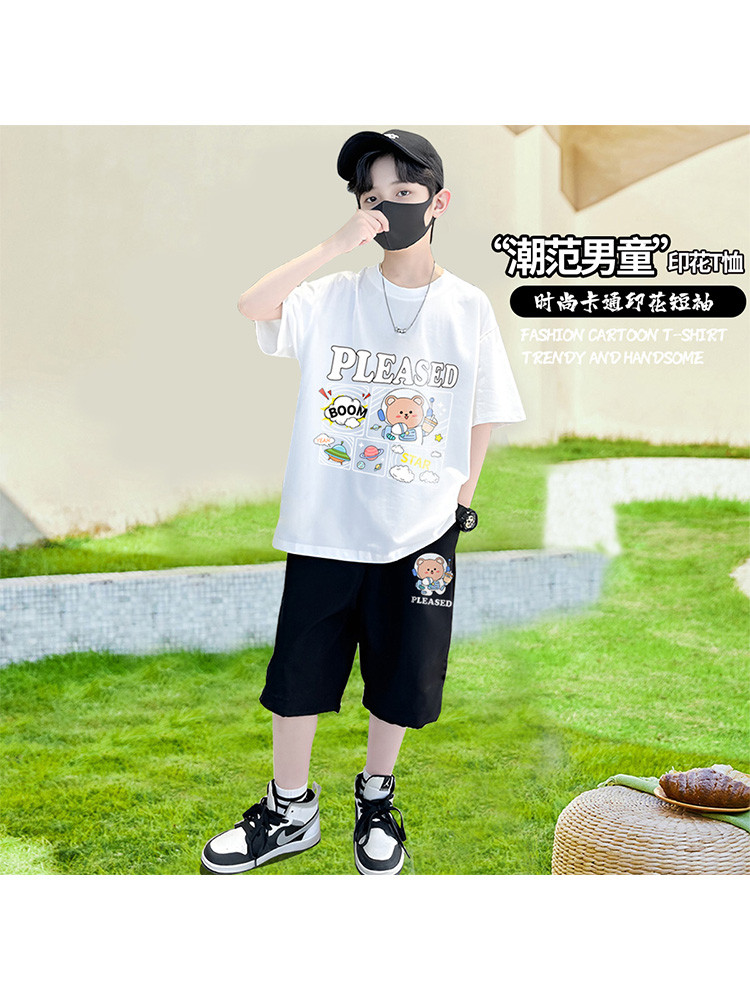 儿童套装夏季男童潮流帅气透气百搭短袖短裤中大童两件套装 565135