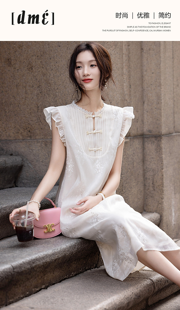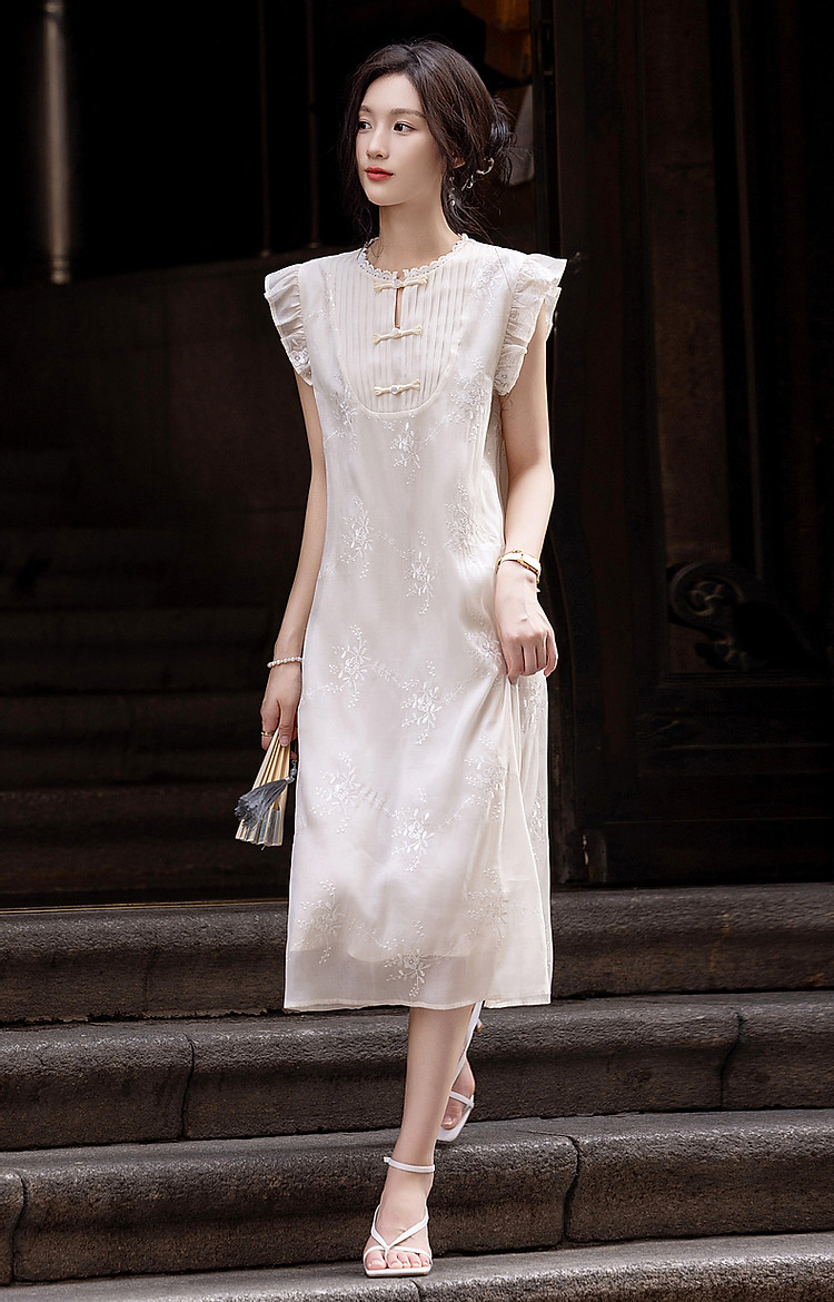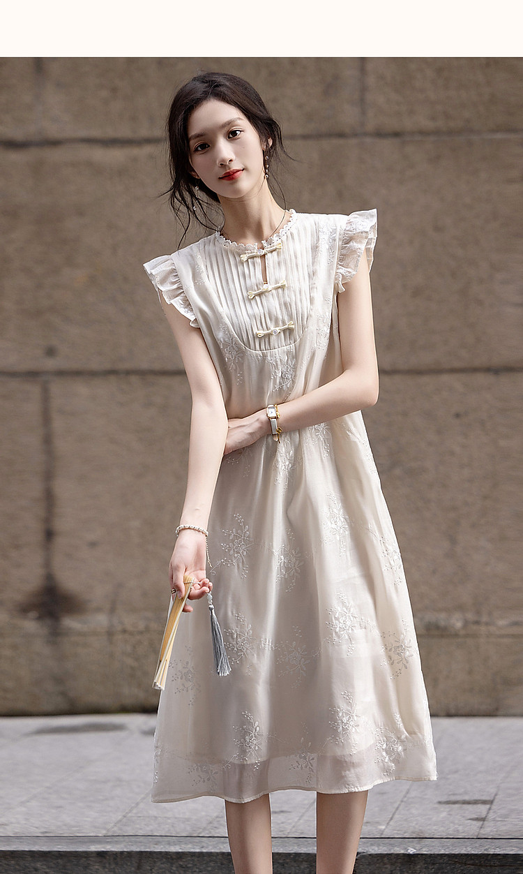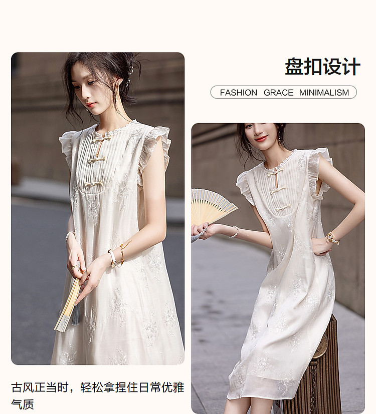 商品名称:【玉壶冰心】秋国风新中式刺绣盘扣水溶蕾丝花边小飞袖连衣裙女 902401