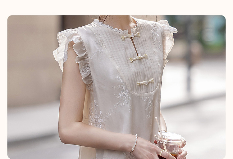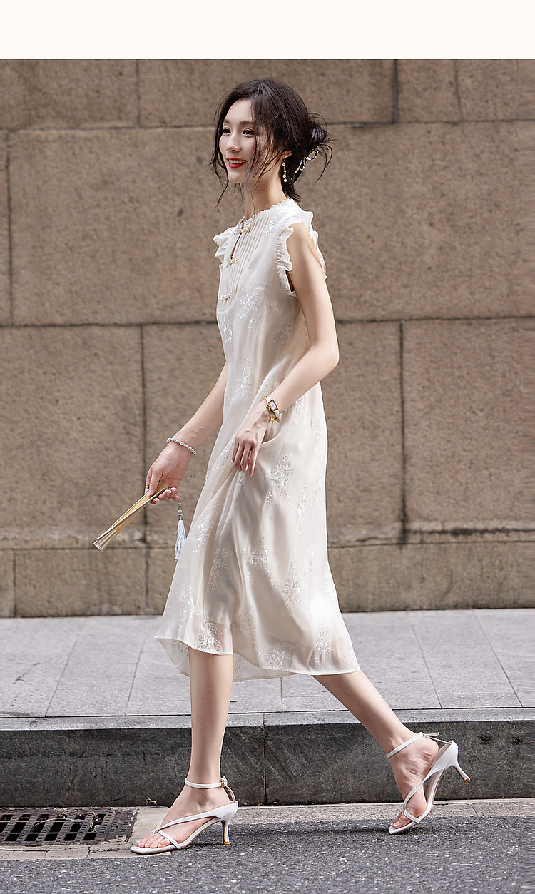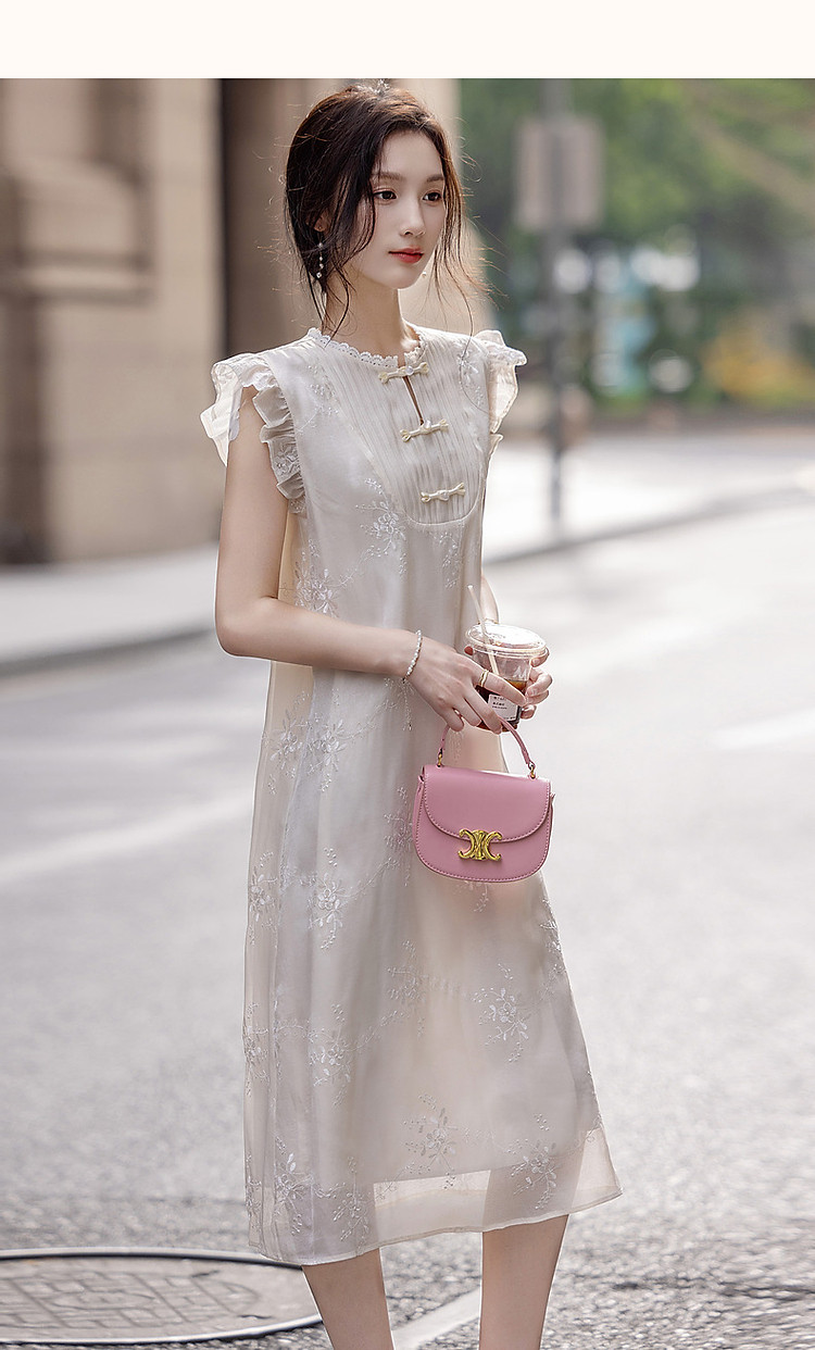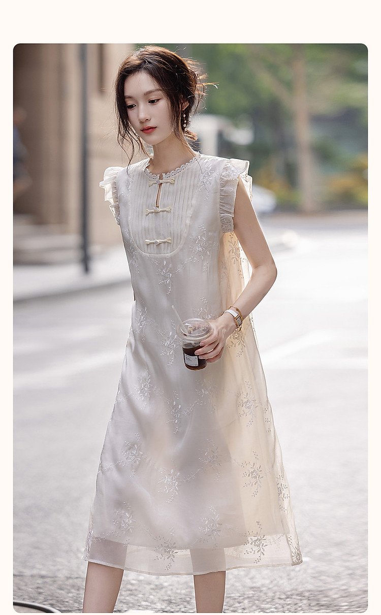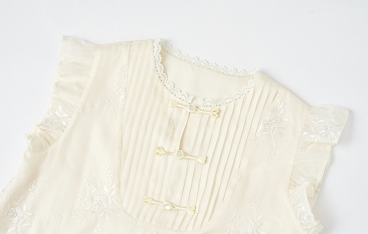 商品名称:【玉壶冰心】秋国风新中式刺绣盘扣水溶蕾丝花边小飞袖连衣裙女 902401