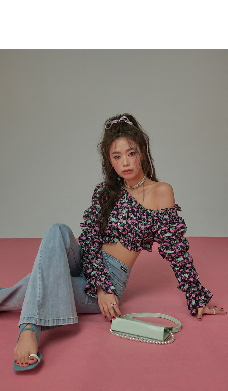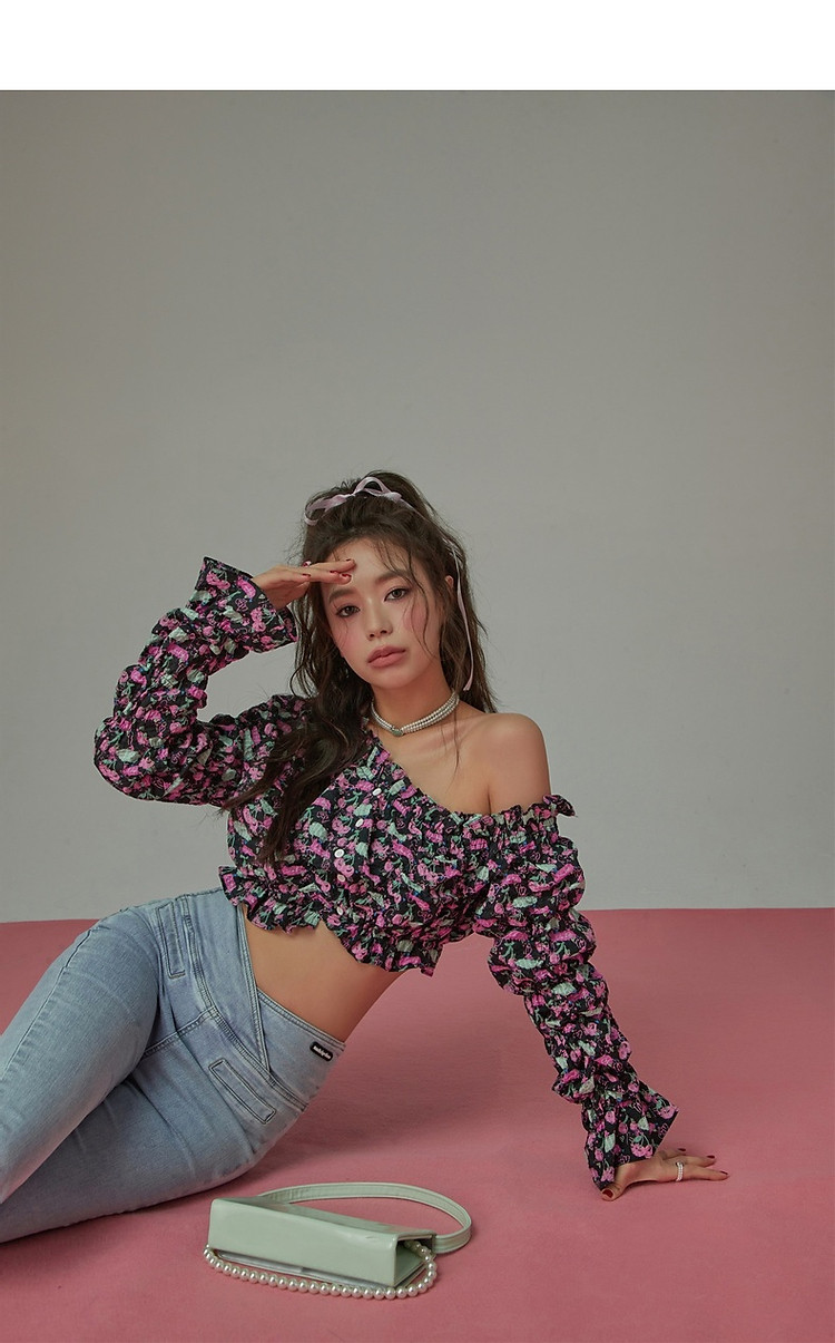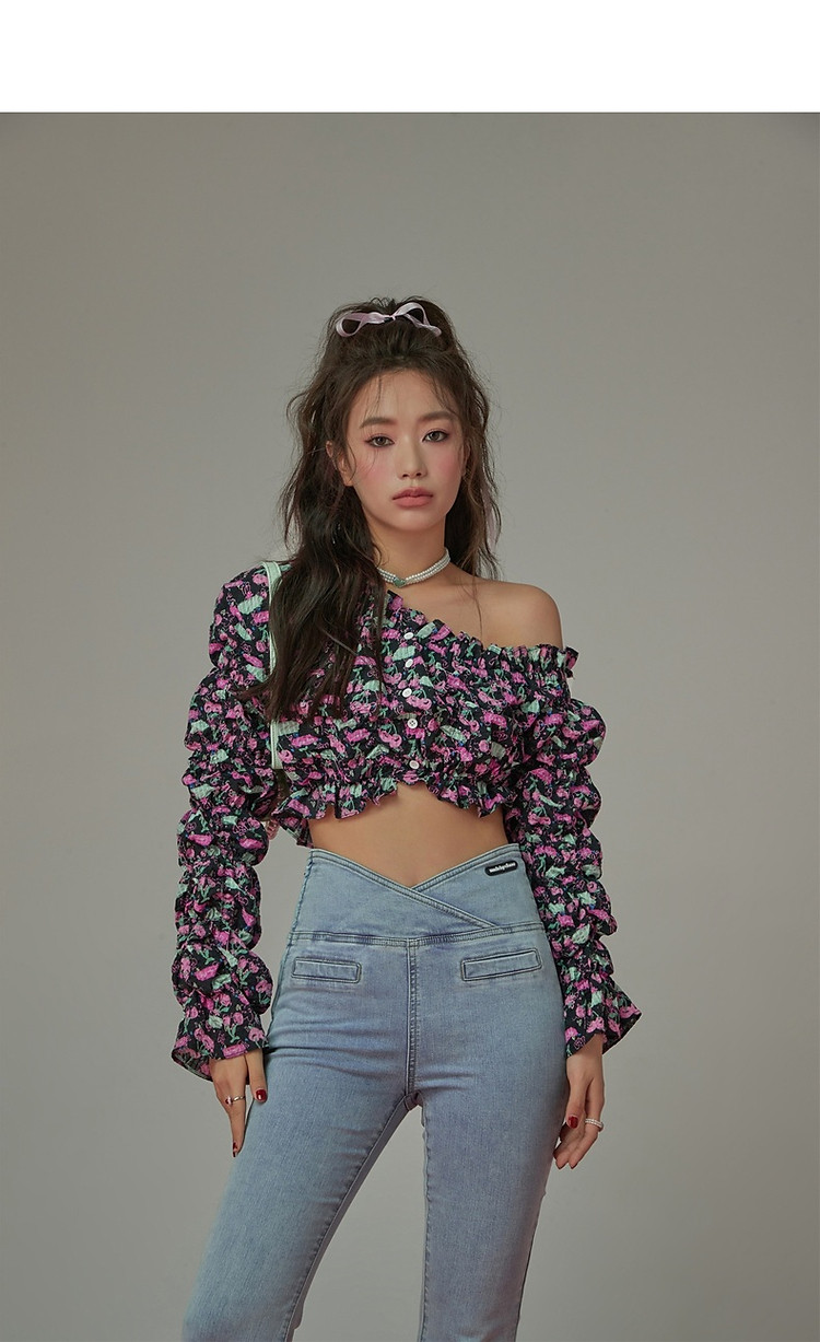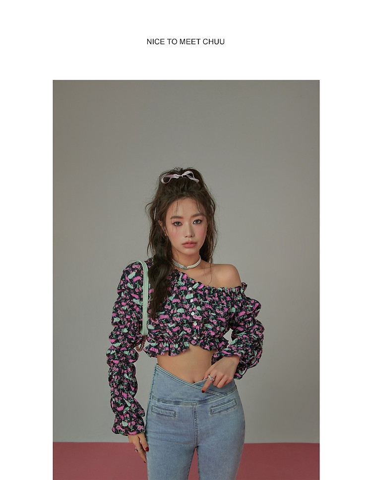CHUU碎花衬衫女秋不对称修身减龄个性别致上衣 943379