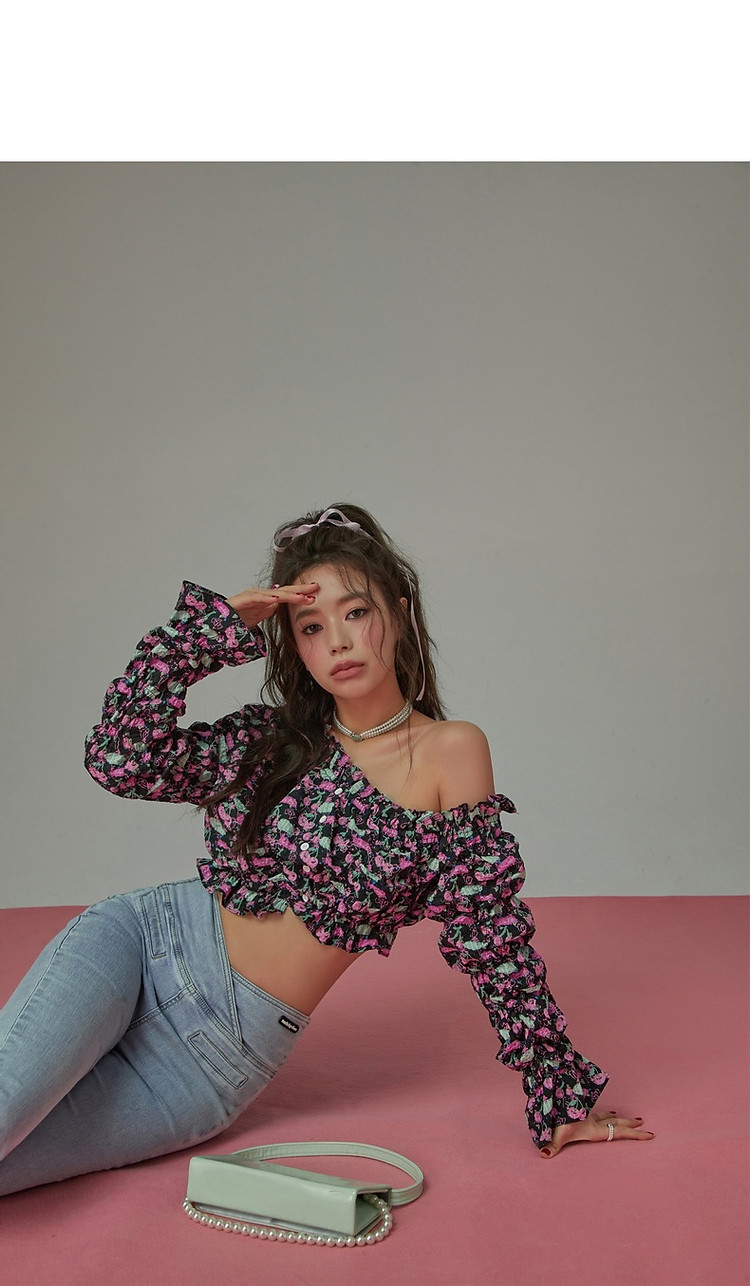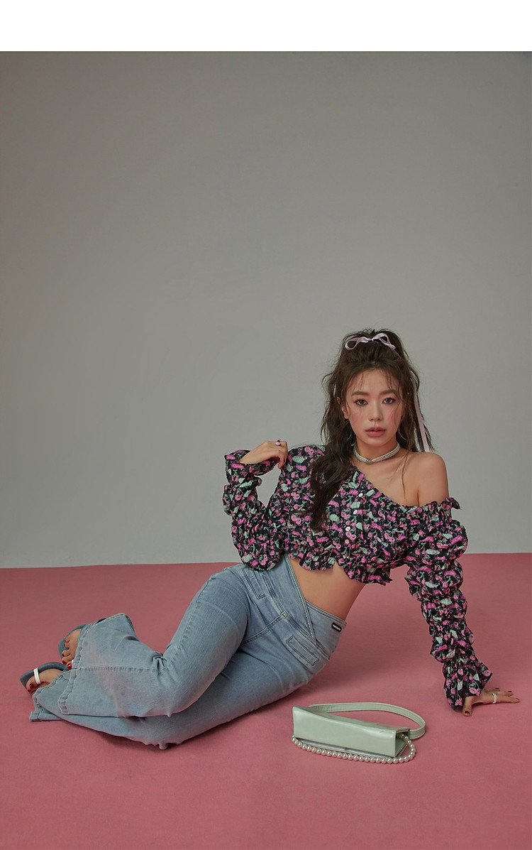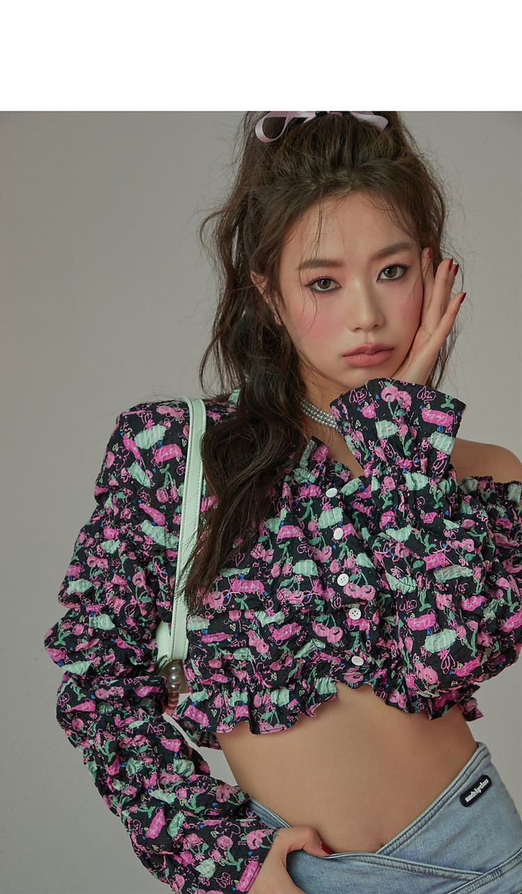 CHUU碎花衬衫女秋不对称修身减龄个性别致上衣 943379