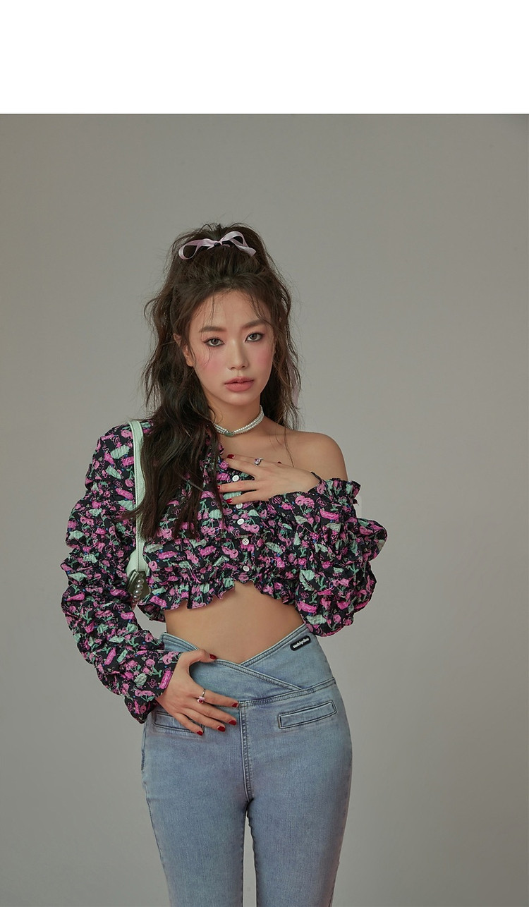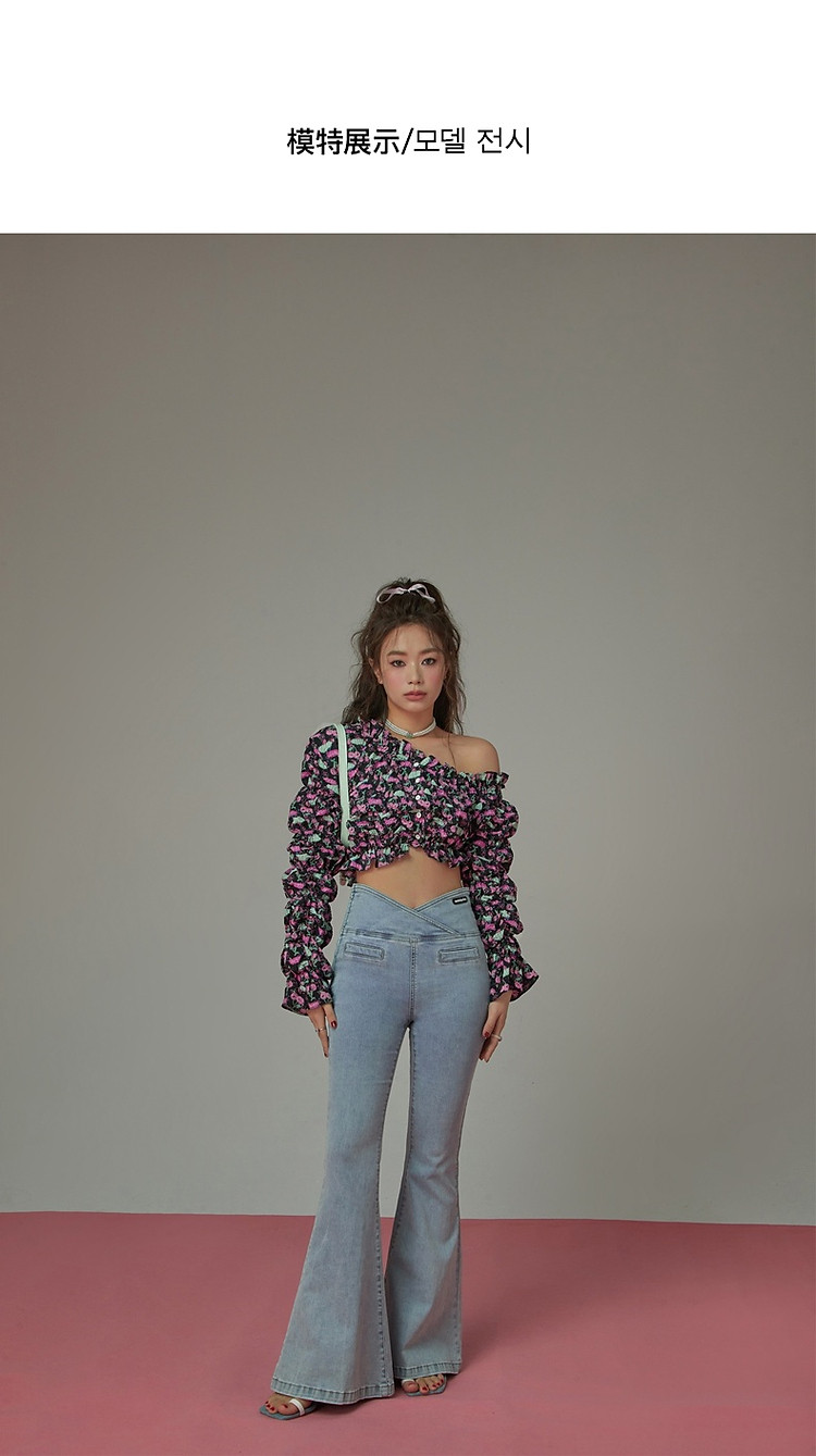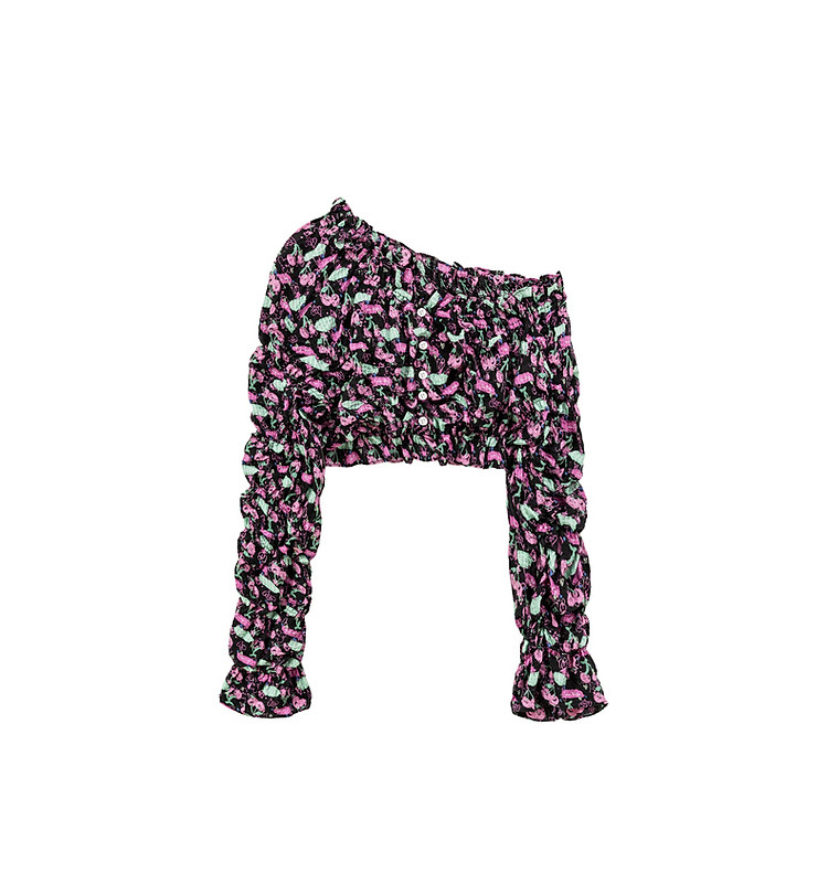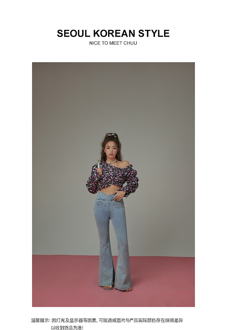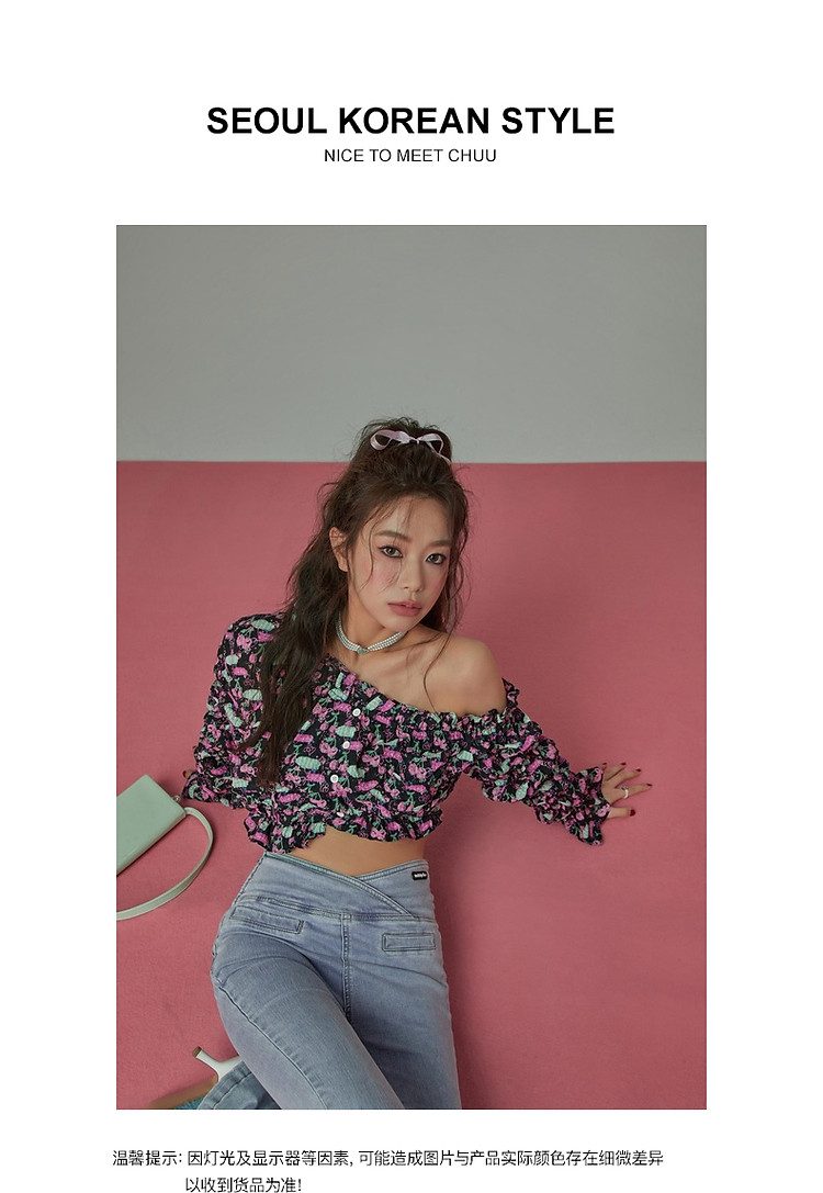 商品名称:CHUU碎花衬衫女秋不对称修身减龄个性别致上衣 943379