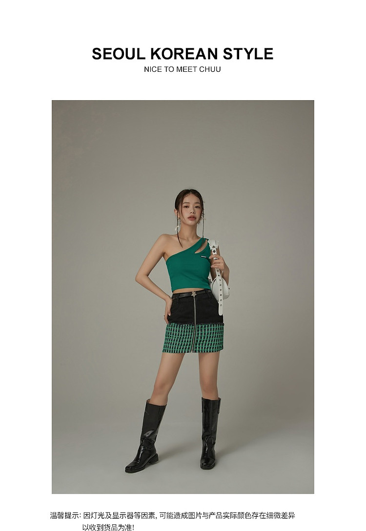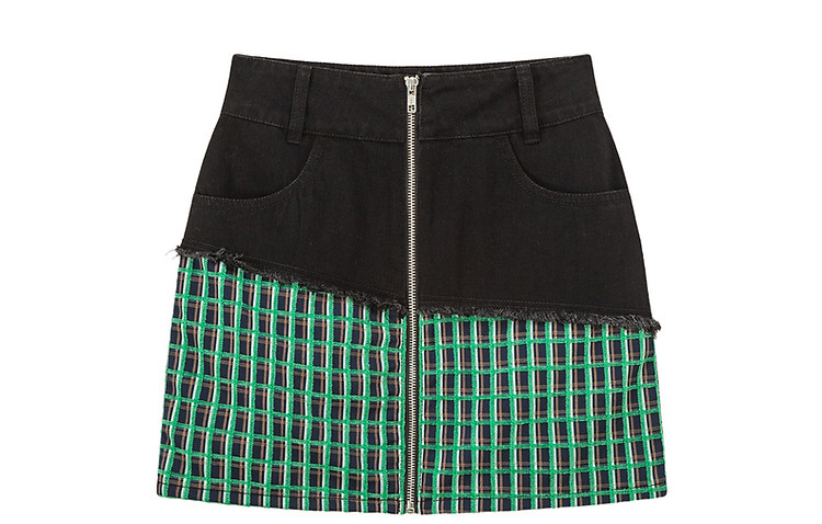 商品名称:拉链拼接半身裙女士秋季设计感毛边格纹撞色短裙子 834195