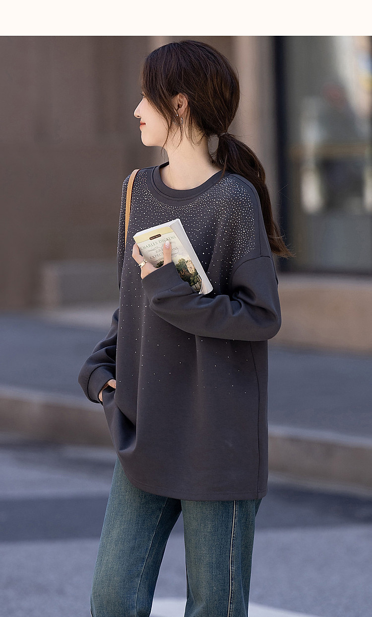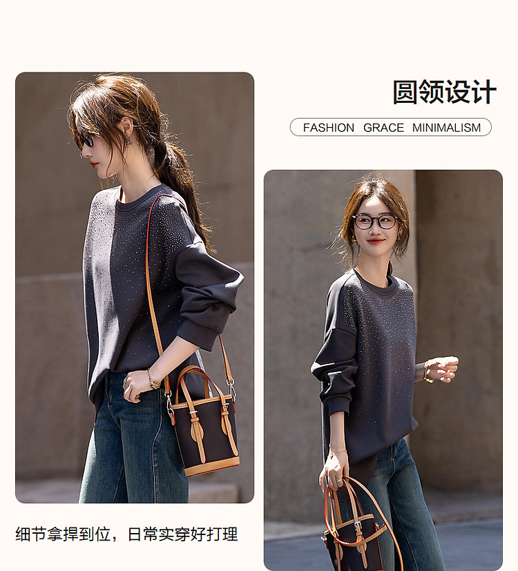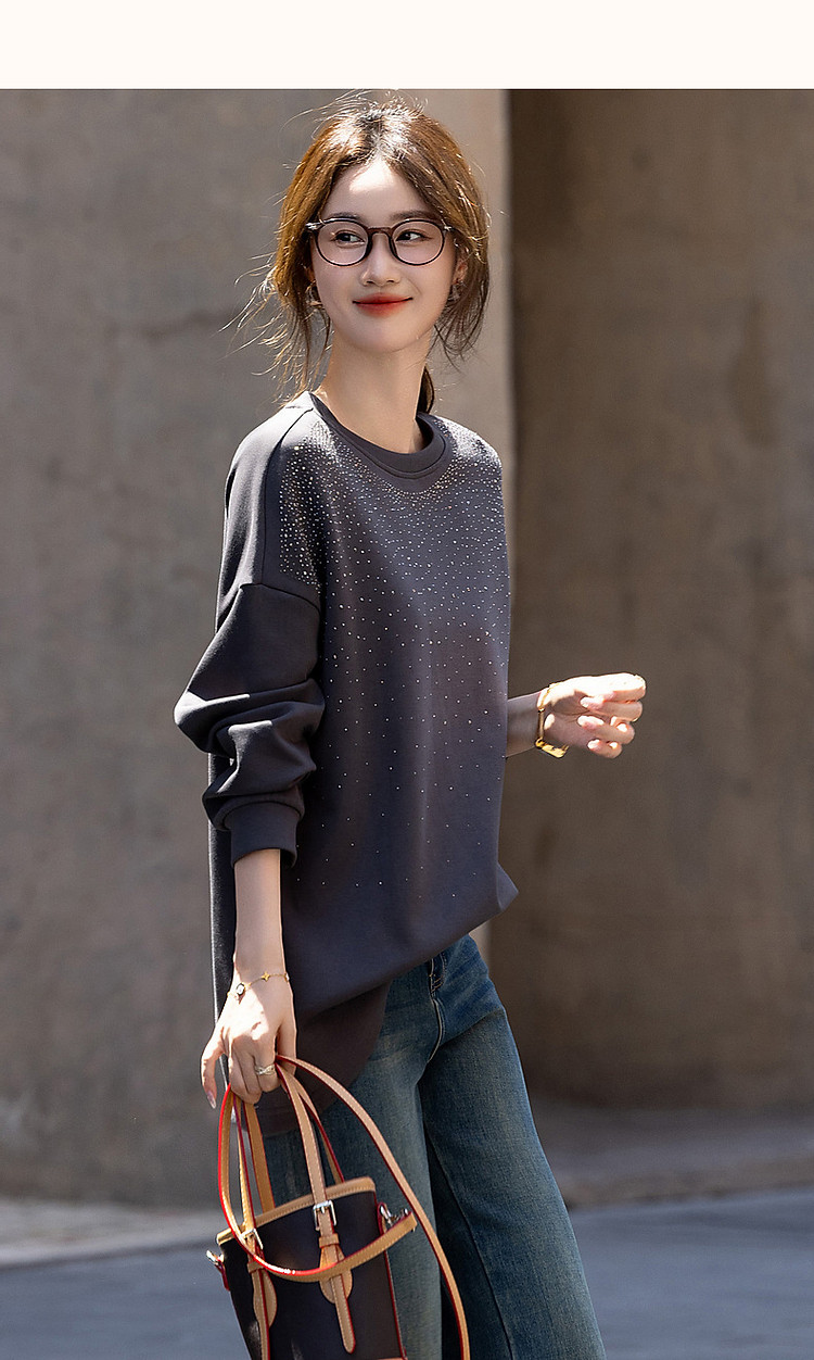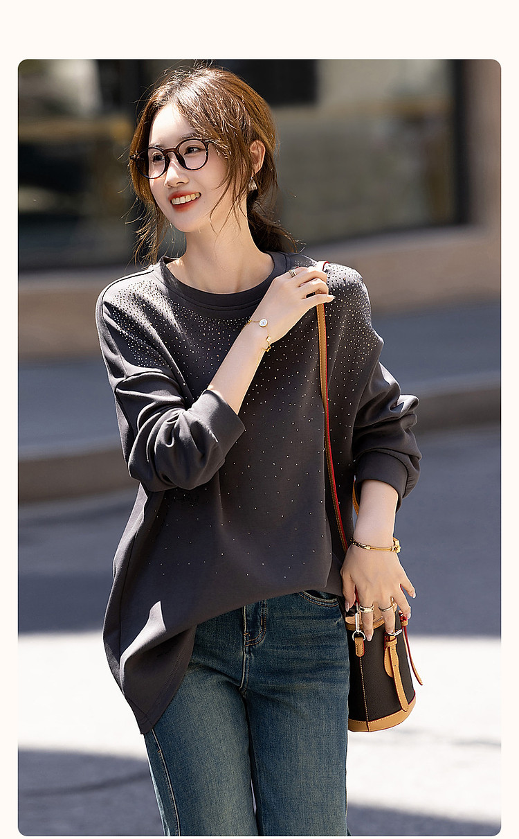 【好搭无压力】秋简约风舒适280G空气层时髦烫钻卫衣女上衣 400513